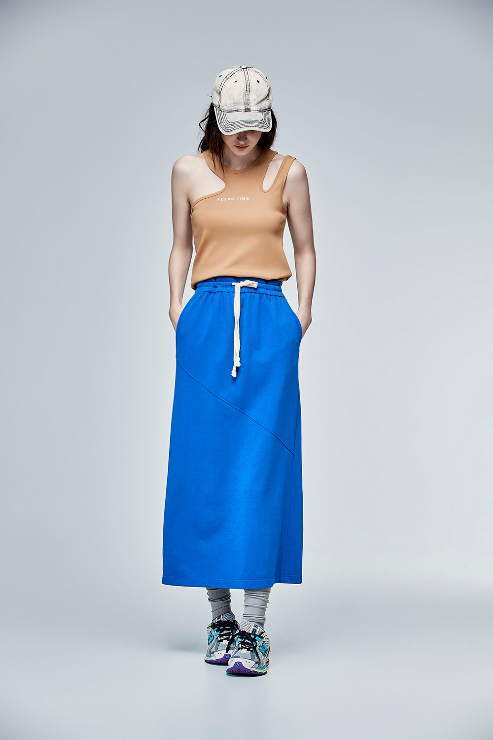 活力配色抽繩休閒裙 - 寧靜黛藍, 36