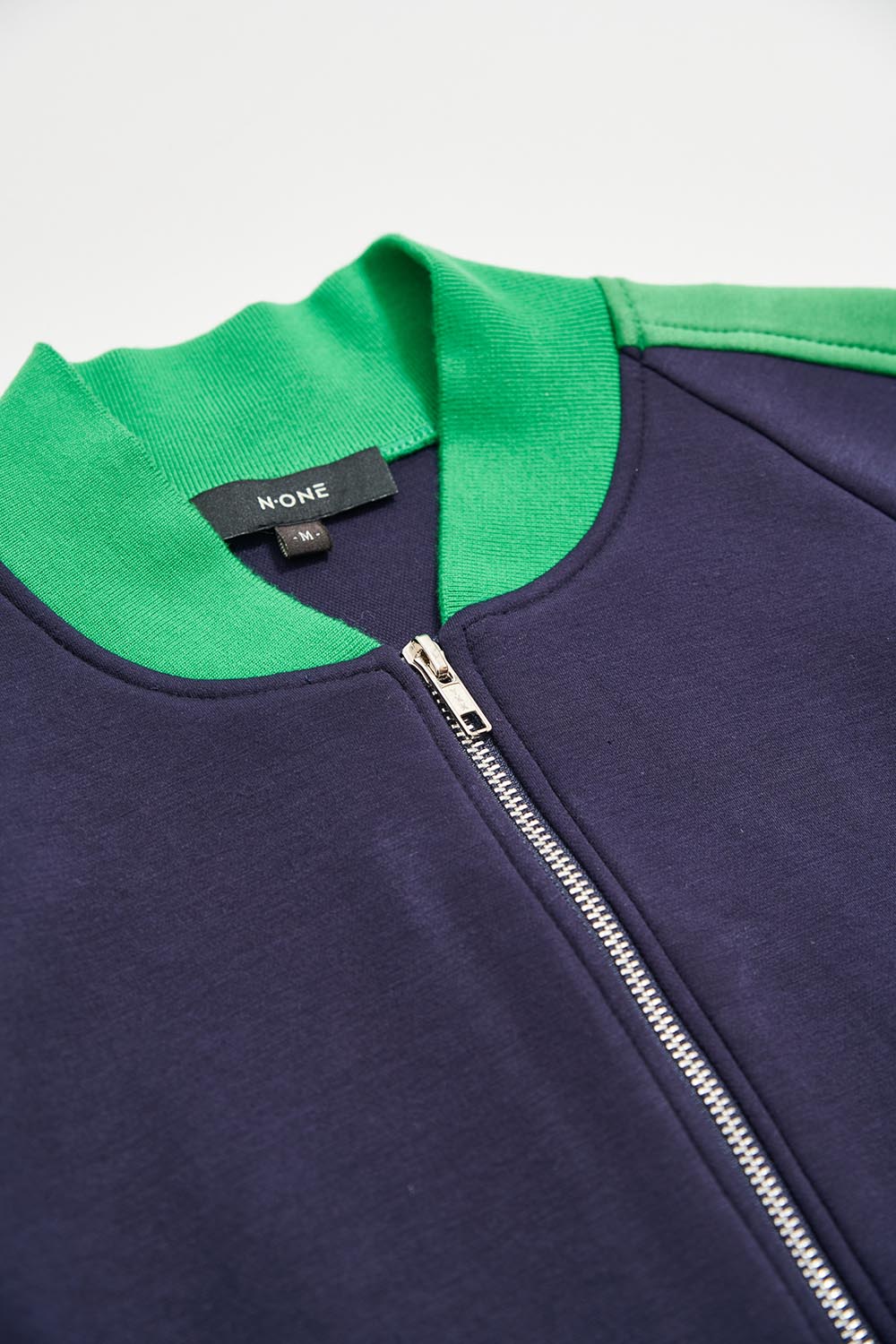 潮流配色剪接棒球外套 - 寧靜黛藍, 36
