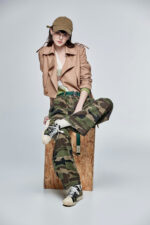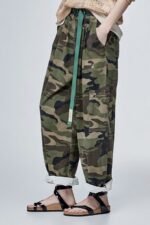 灑脫迷彩牛仔寬褲 - 霧柔墨綠, 38