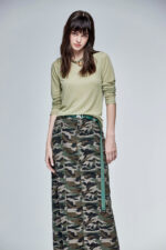 狂野迷彩後開叉牛仔裙 - 霧柔墨綠, 36
