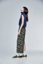 狂野迷彩後開叉牛仔裙 - 霧柔墨綠, 40