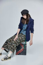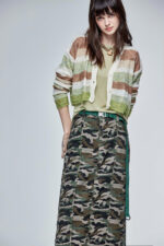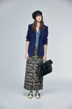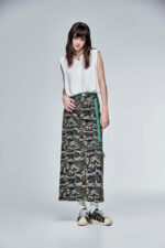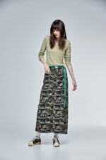 狂野迷彩後開叉牛仔裙 - 霧柔墨綠, 40