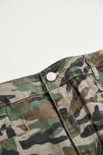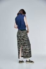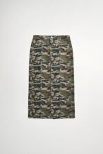 狂野迷彩後開叉牛仔裙 - 霧柔墨綠, 38