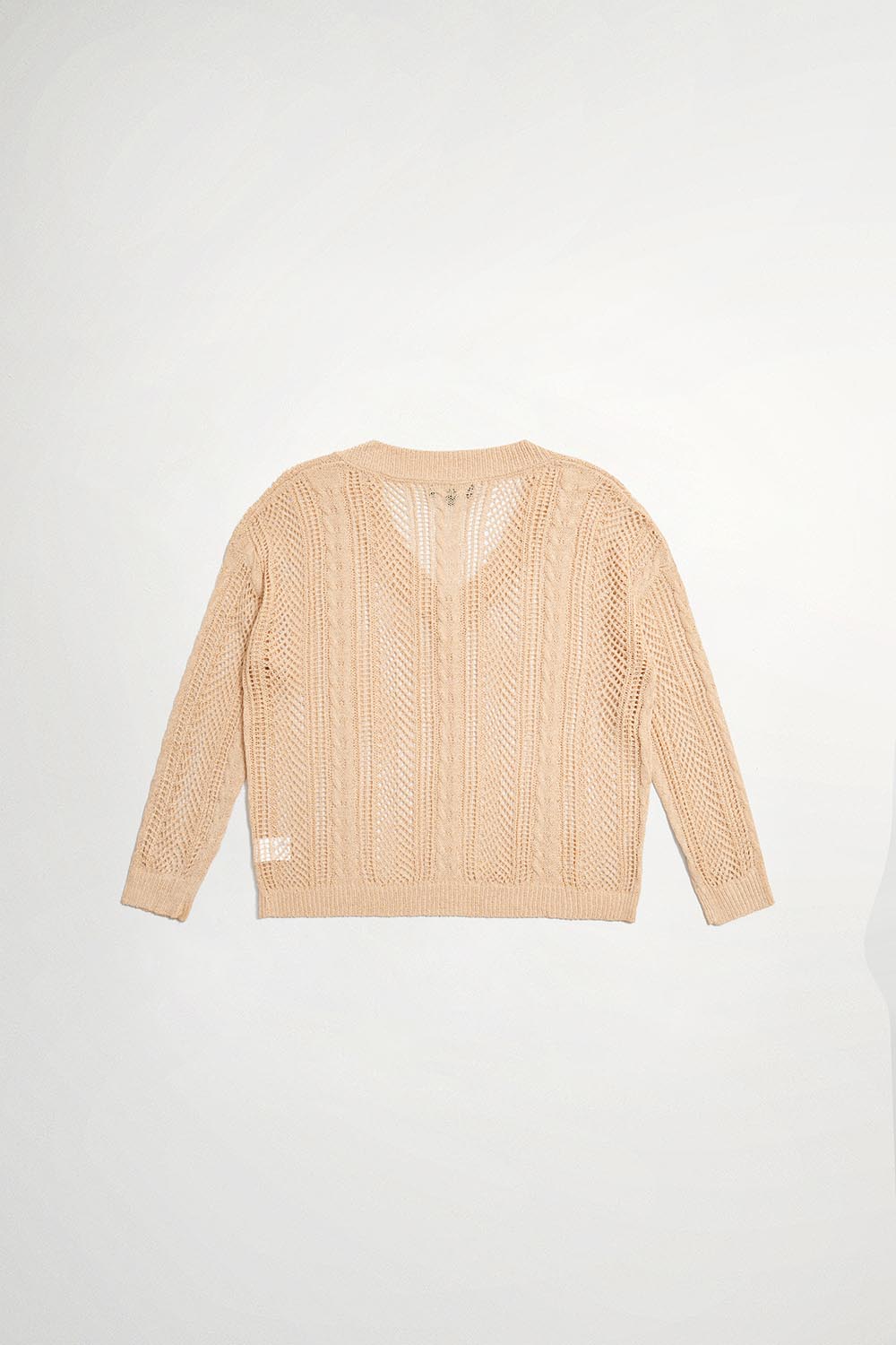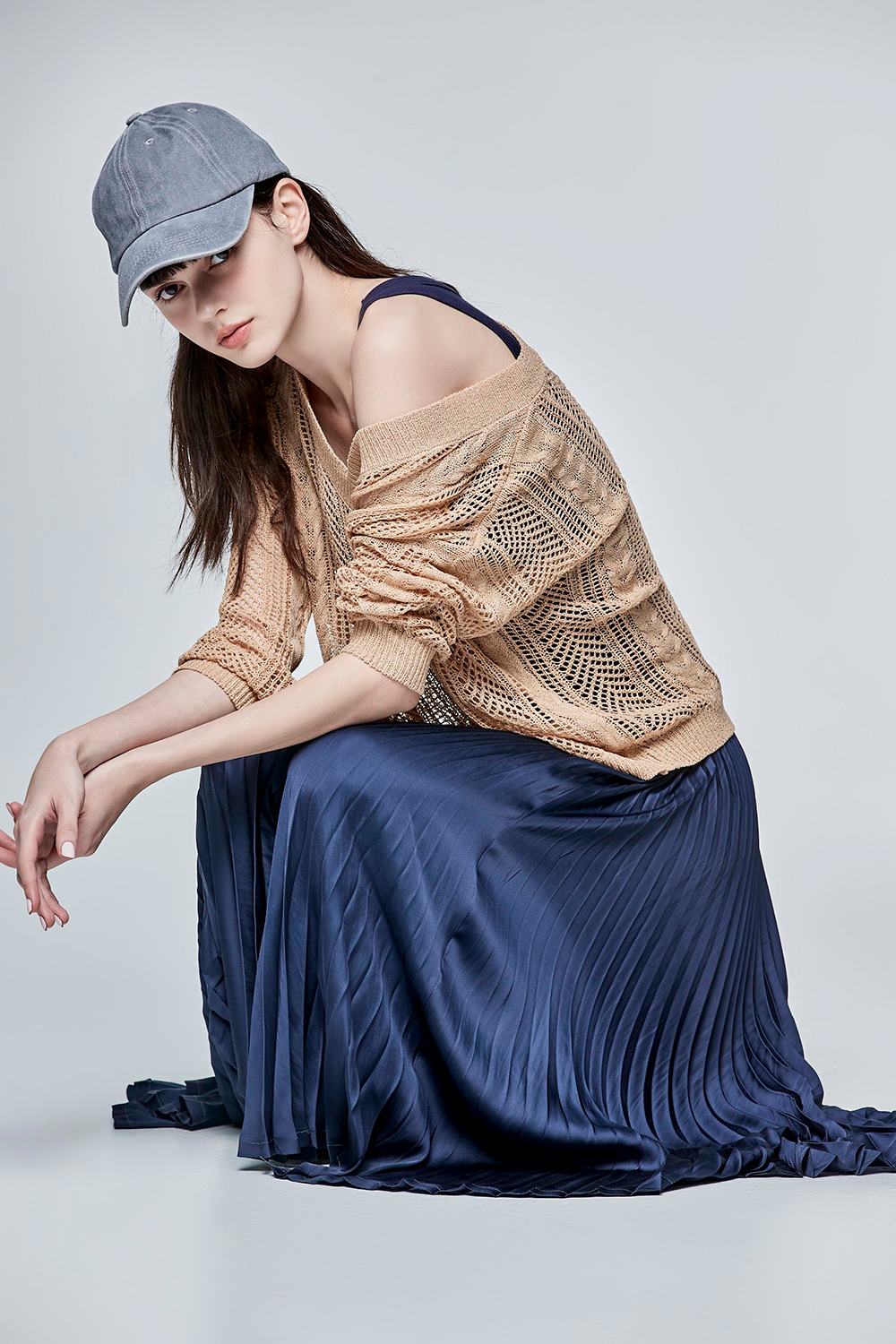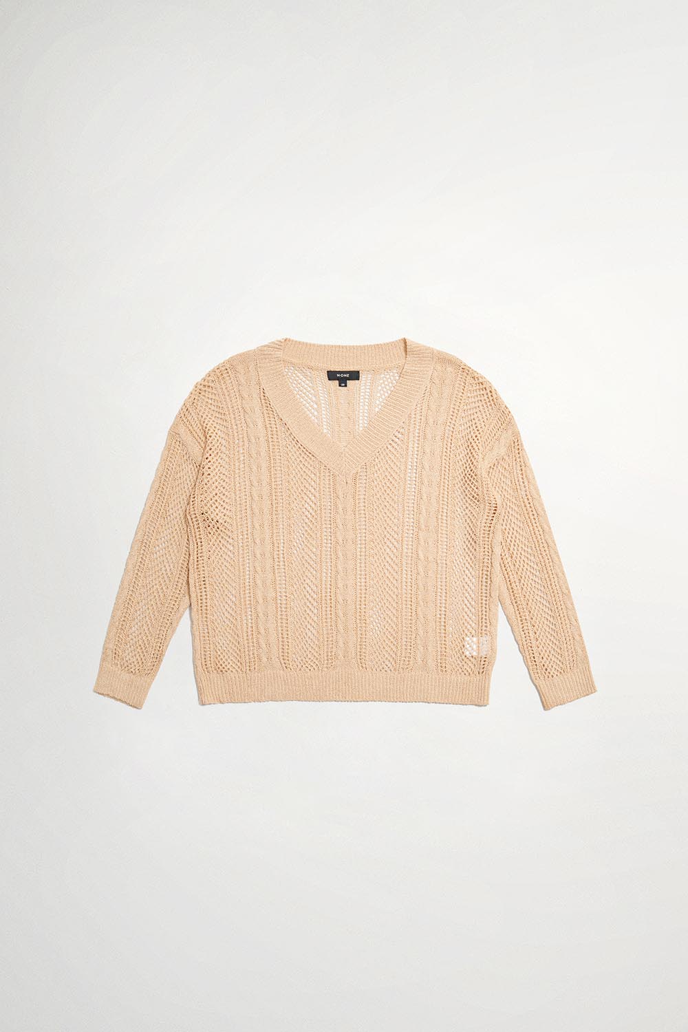享受靜謐鏤空垂墜V領上衣 - 可可卡其, 36