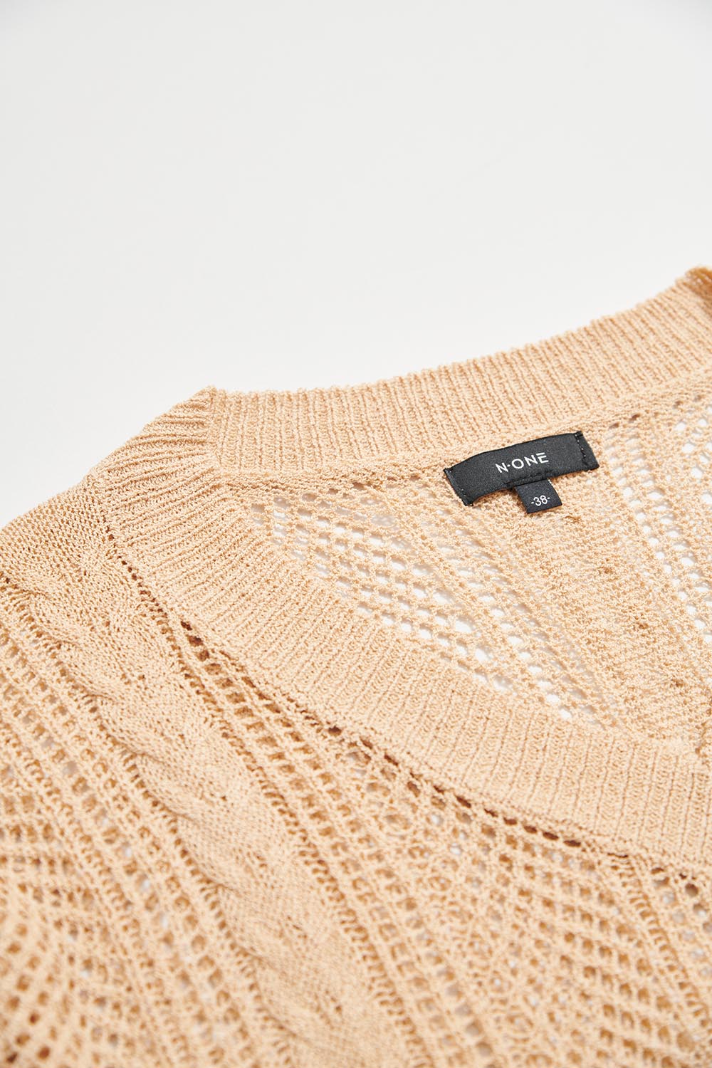 享受靜謐鏤空垂墜V領上衣 - 可可卡其, 38