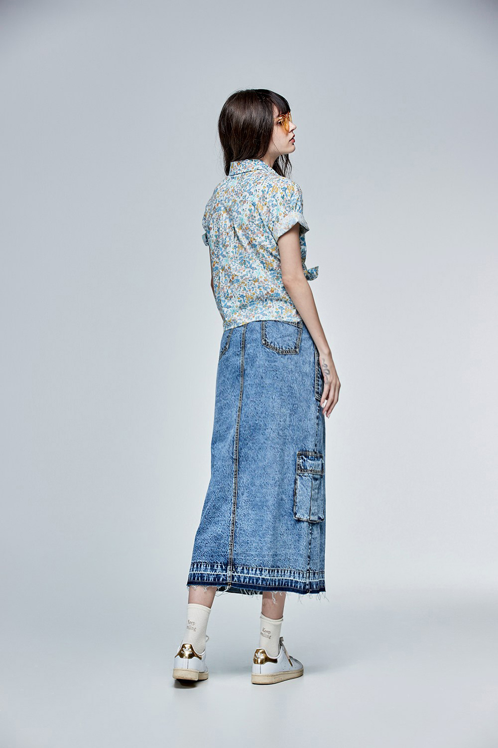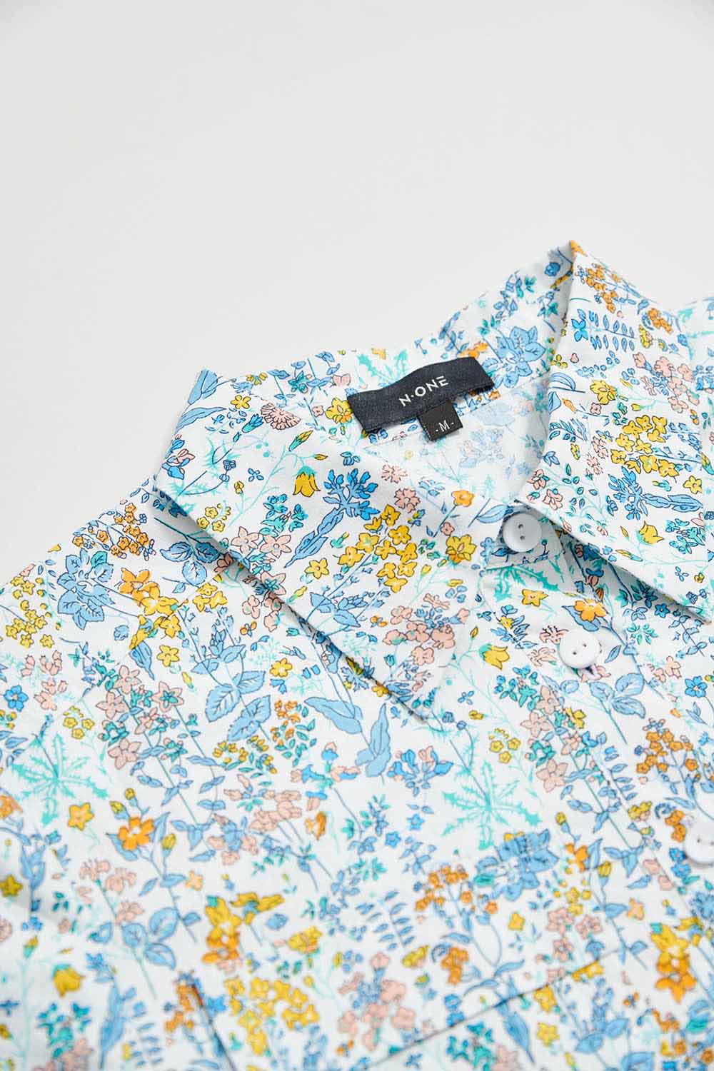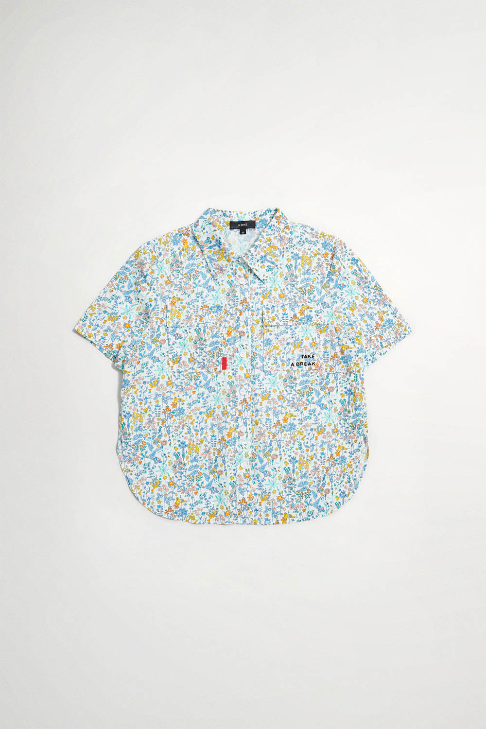 俏皮春日大口袋印花襯衫 - 清新蔚藍, 36