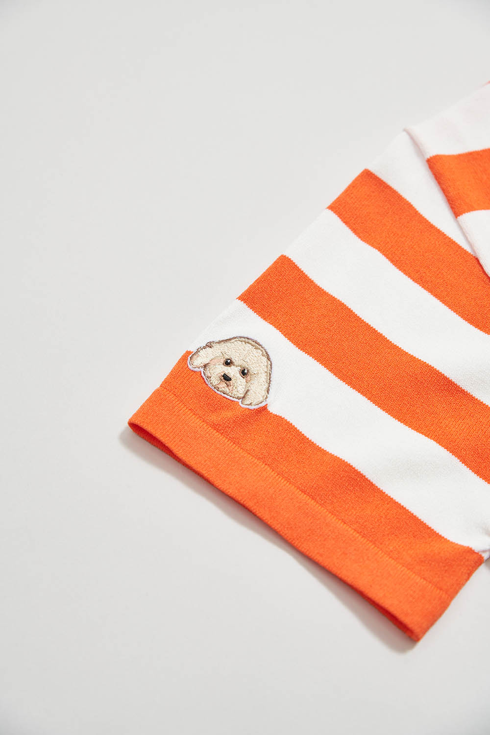 糖果多巴胺狗狗條紋上衣 - 晚霞橘, 38