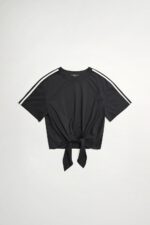 俏皮律動休閒配色綁帶上衣 - 神祕純黑, 40