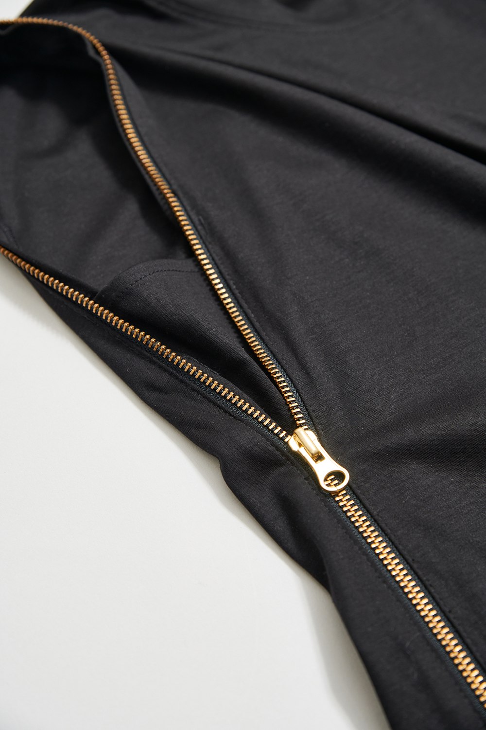 時髦側開拉鍊式圓領上衣 - 神祕純黑, 38