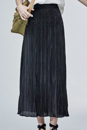 半身點綴彈力壓摺修身裙 - 神祕純黑, 40