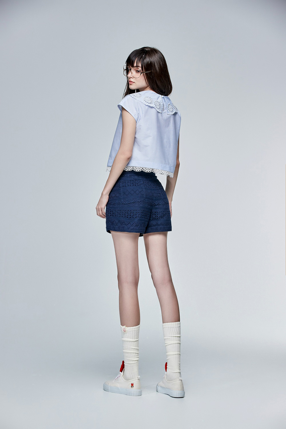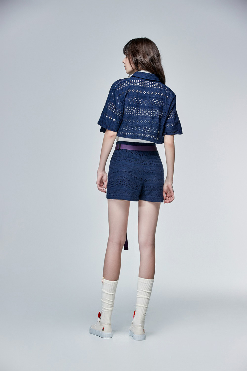 溫柔細緻質感蕾絲短褲 - 深邃藏藍, 36