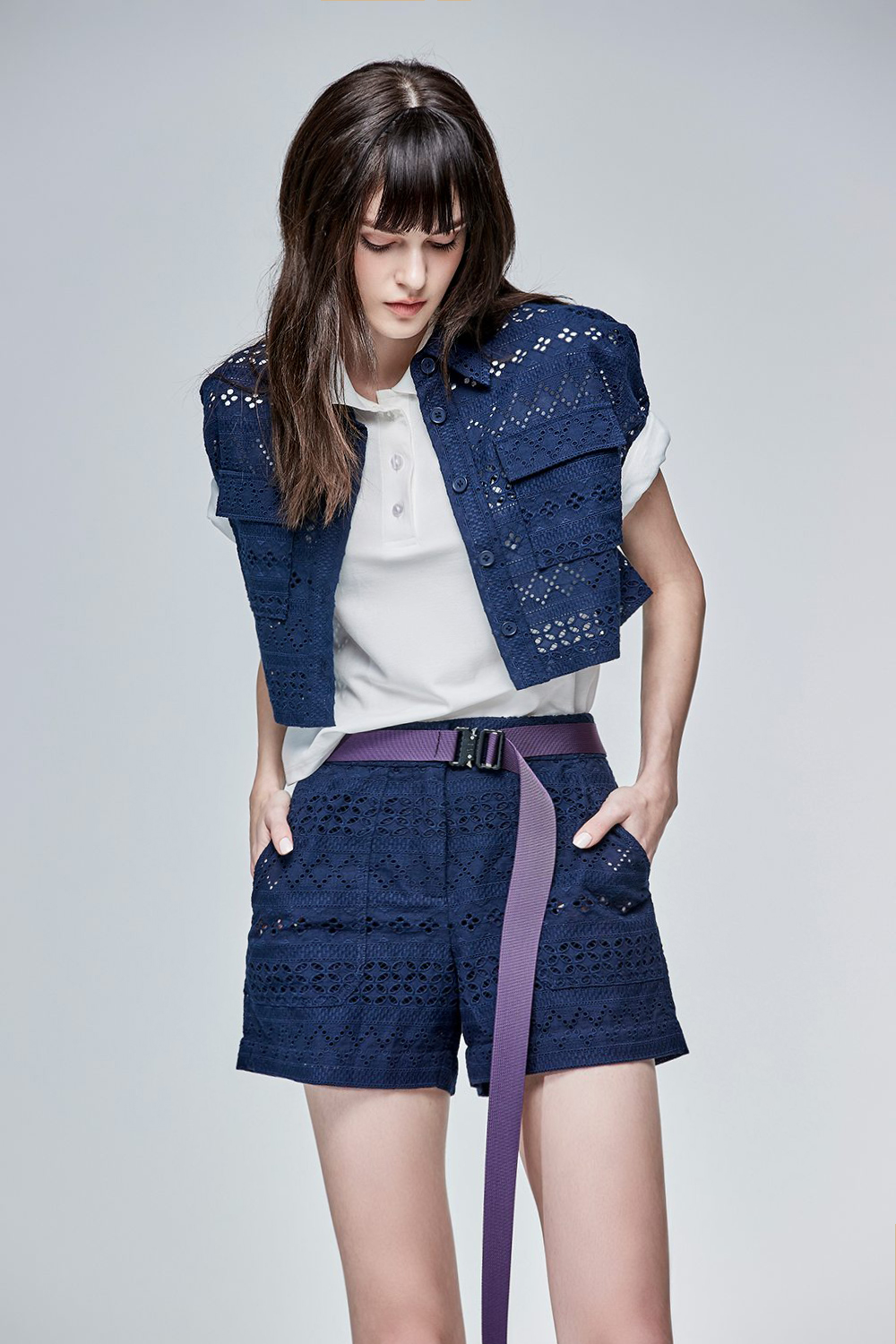 溫柔細緻質感蕾絲短褲 - 深邃藏藍, 38
