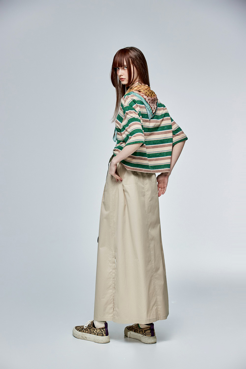工裝感洗舊復古配條上衣 - 彩色配條, 38