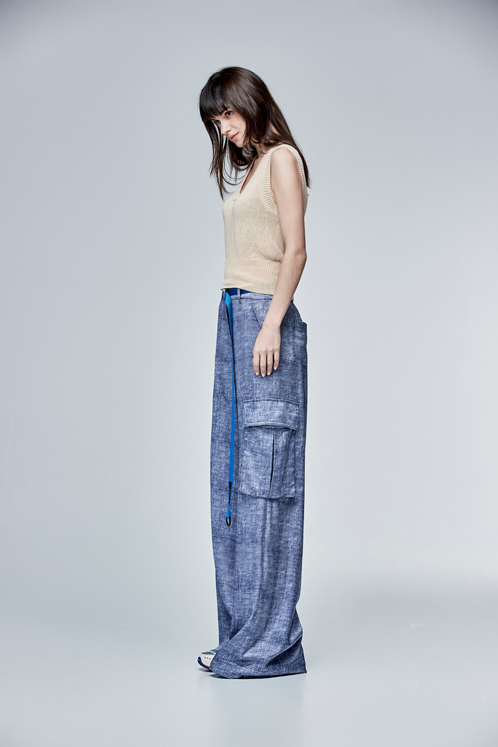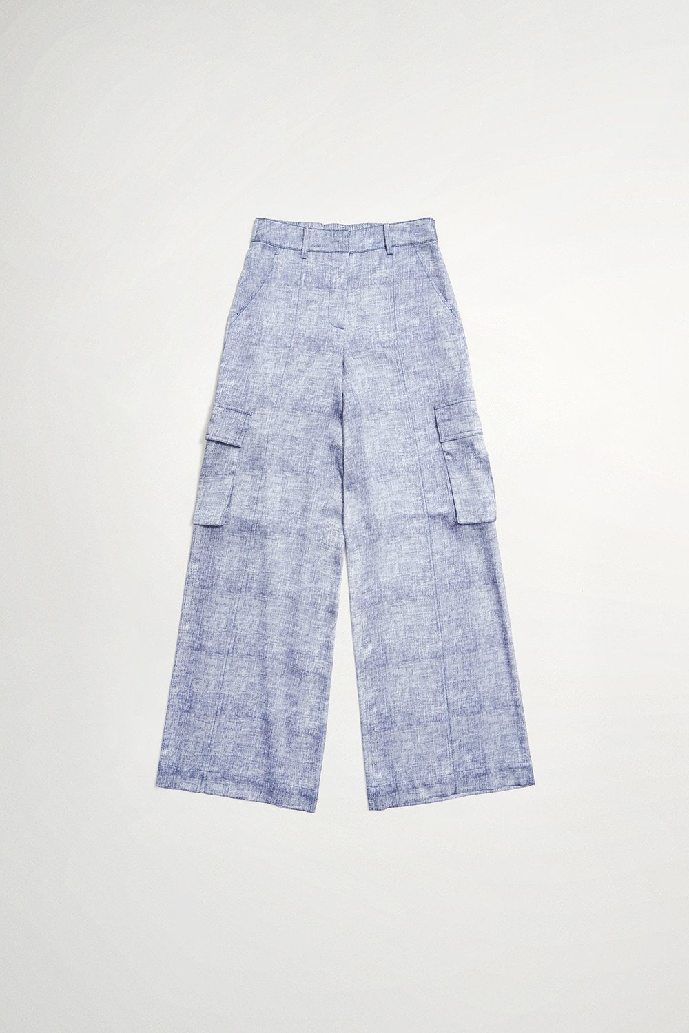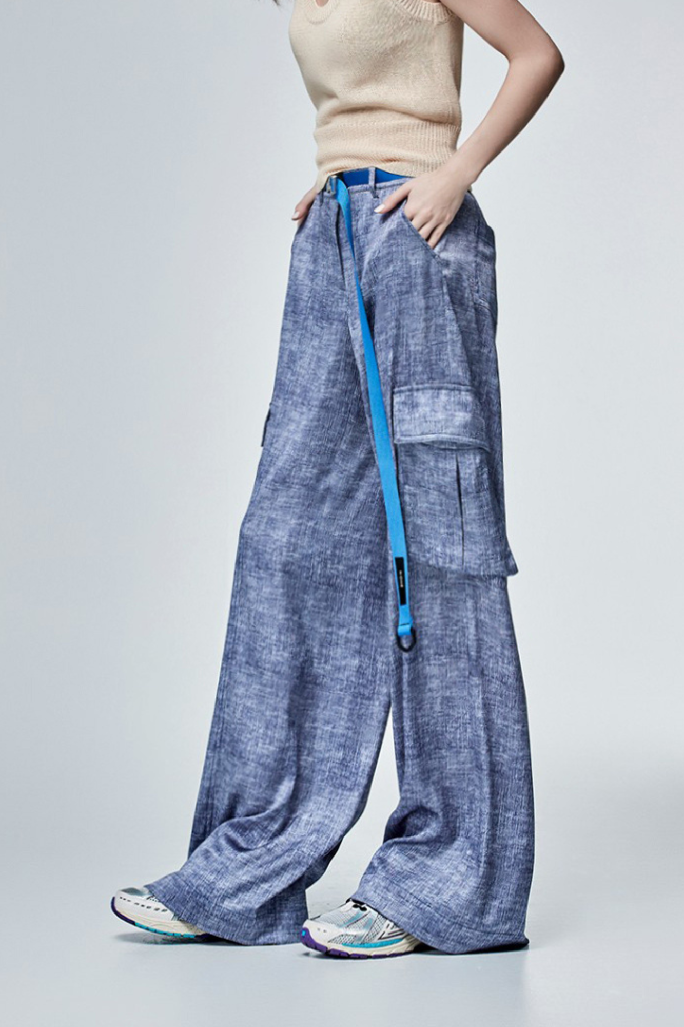 飄逸風采仿牛仔垂墜工裝長褲 - 寧靜黛藍, 36