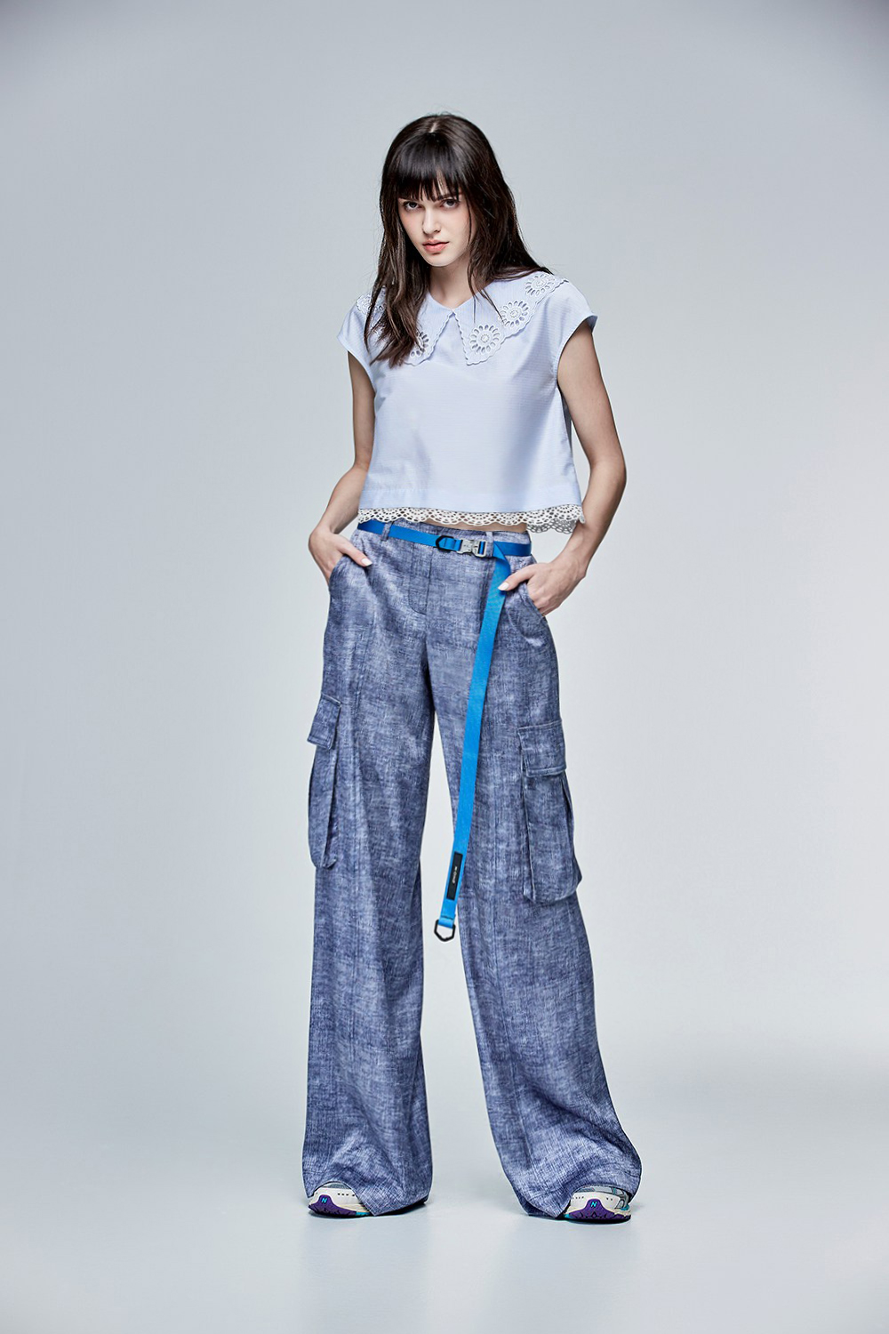 飄逸風采仿牛仔垂墜工裝長褲 - 寧靜黛藍, 38