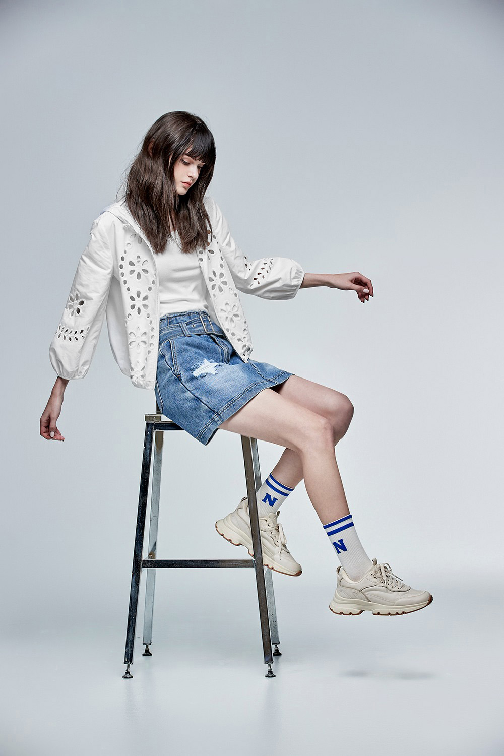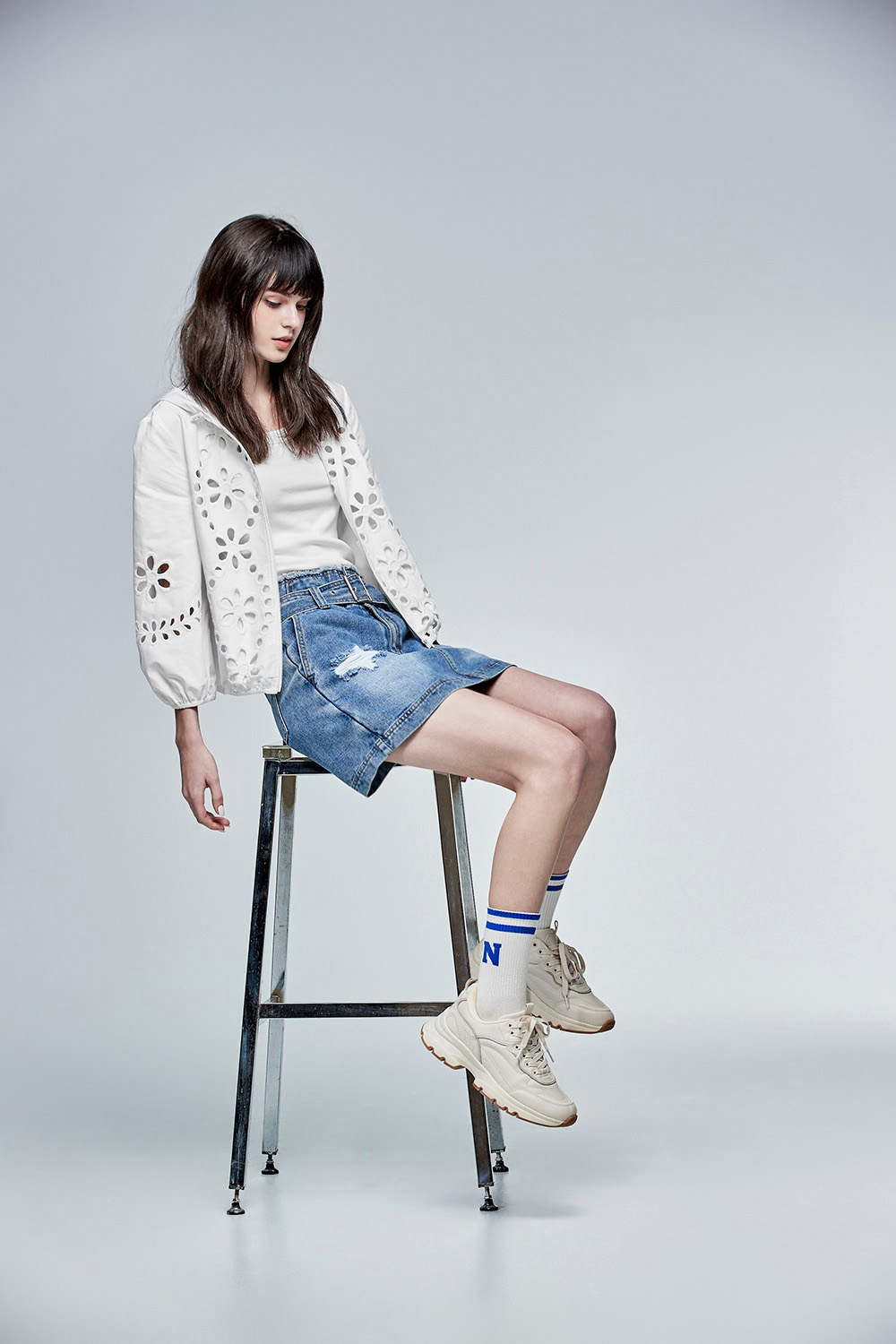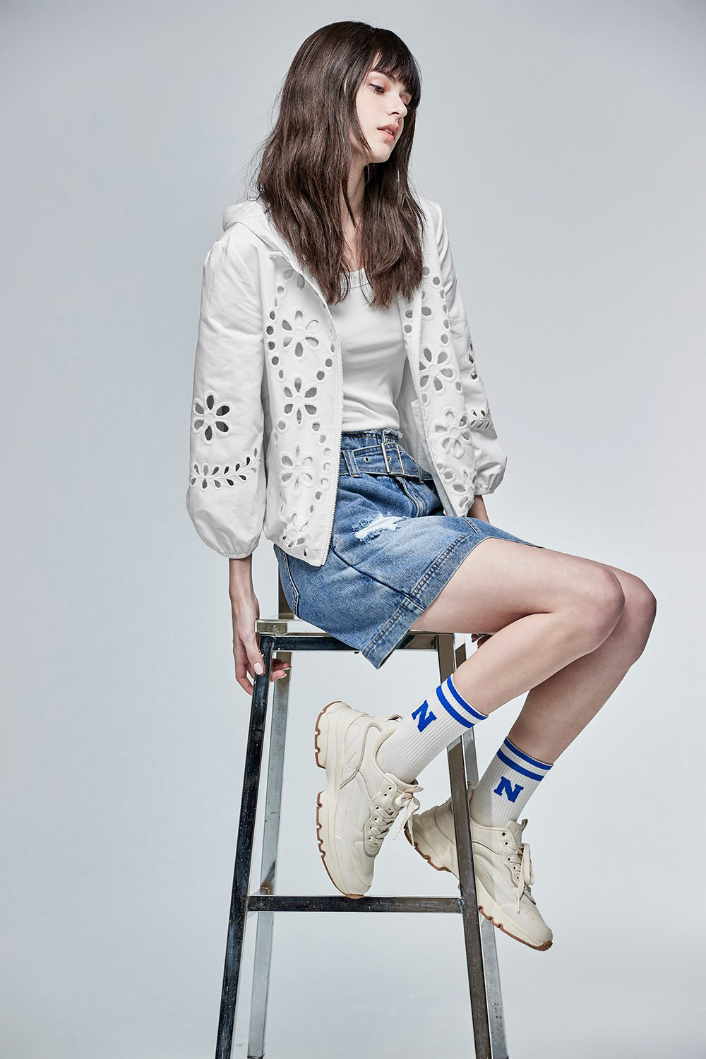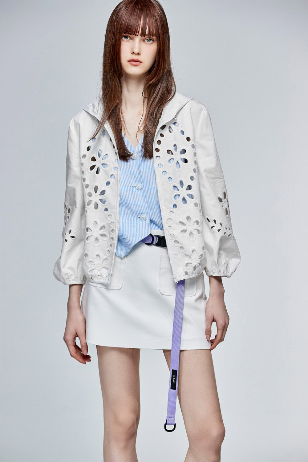 微風栩栩繡花連帽外套 - 無瑕純白, 38