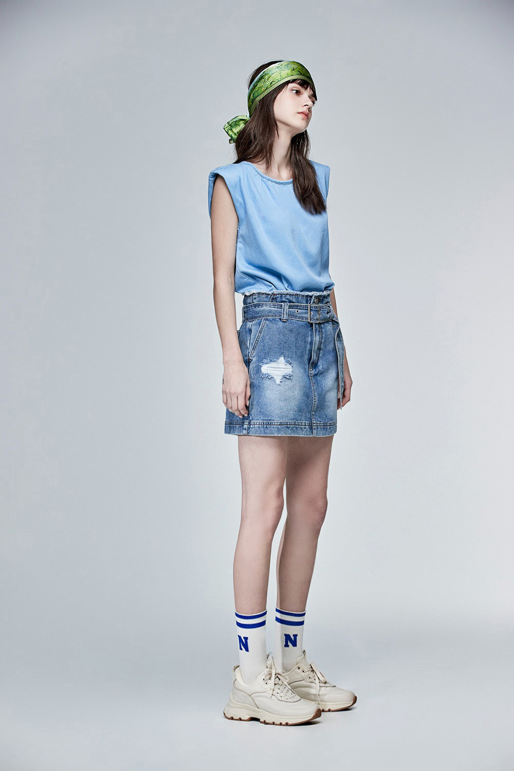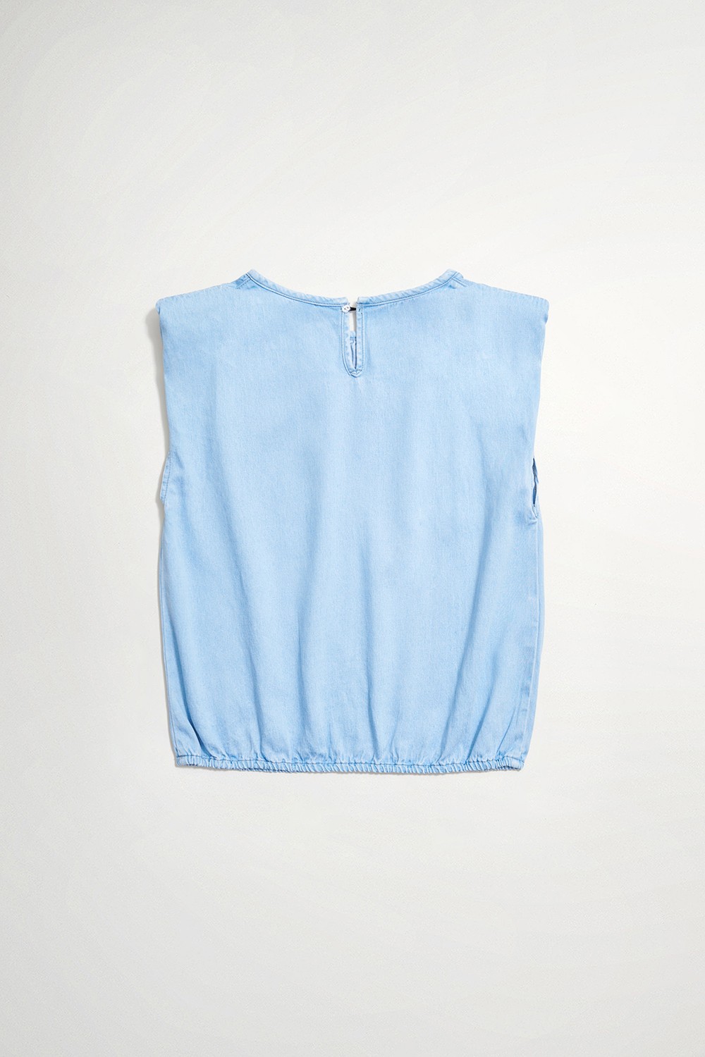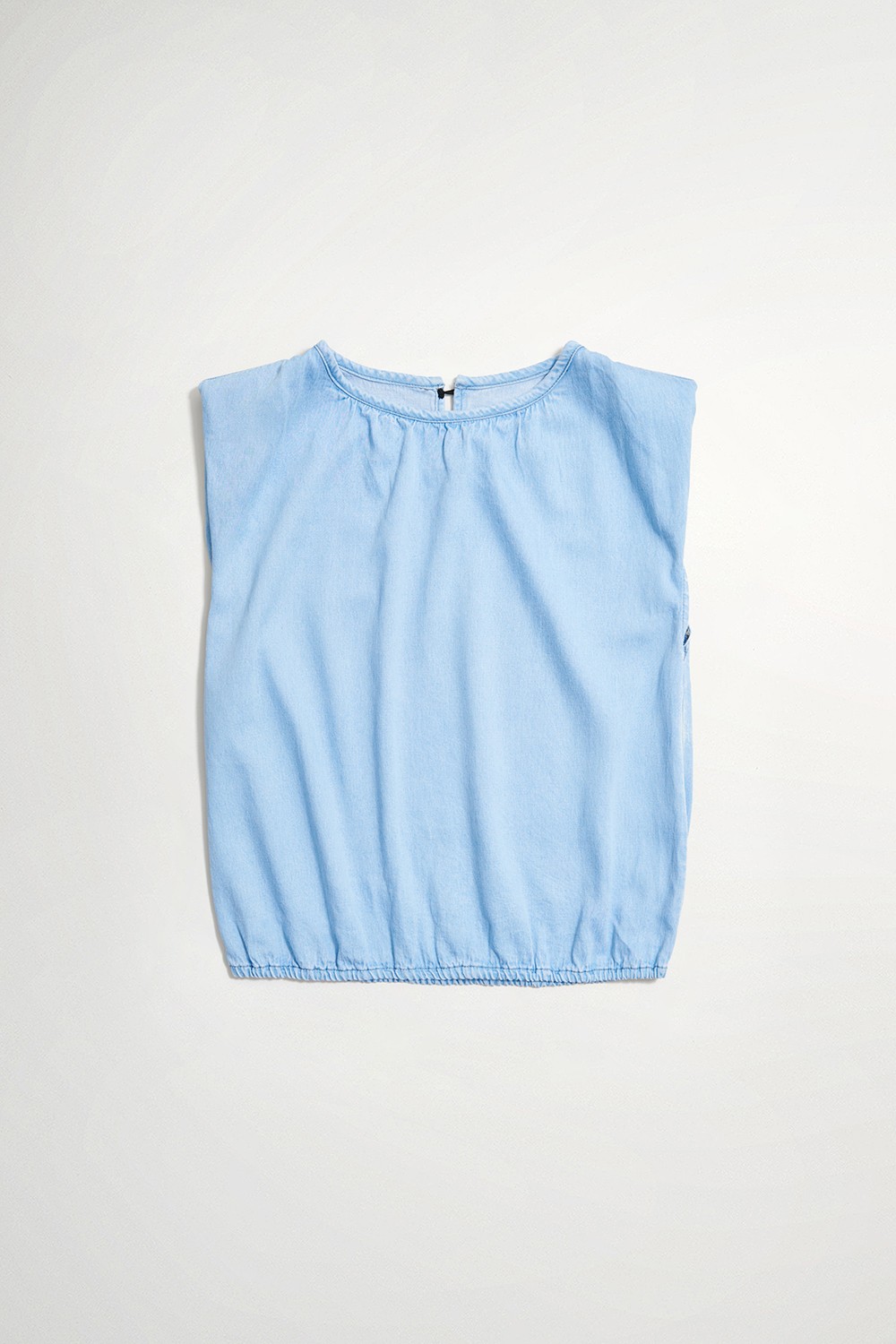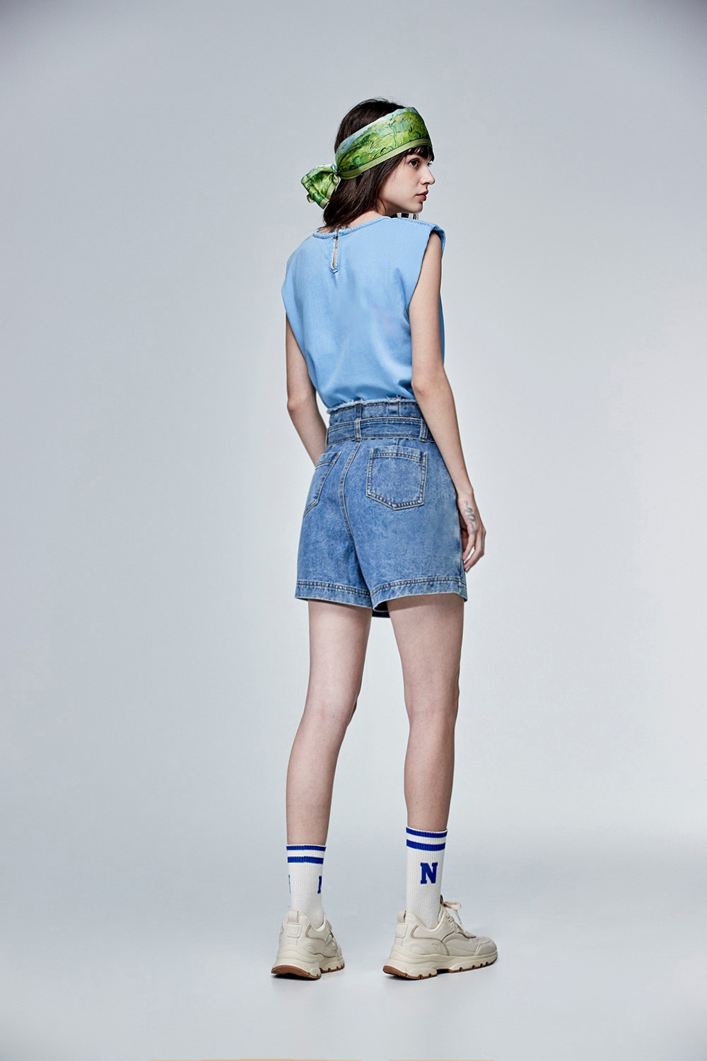 清新旋律休閒牛仔墊肩上衣 - 寧靜黛藍, 38
