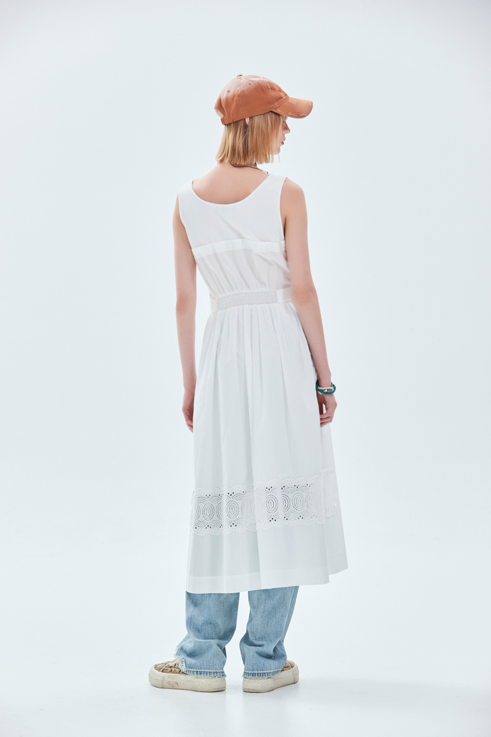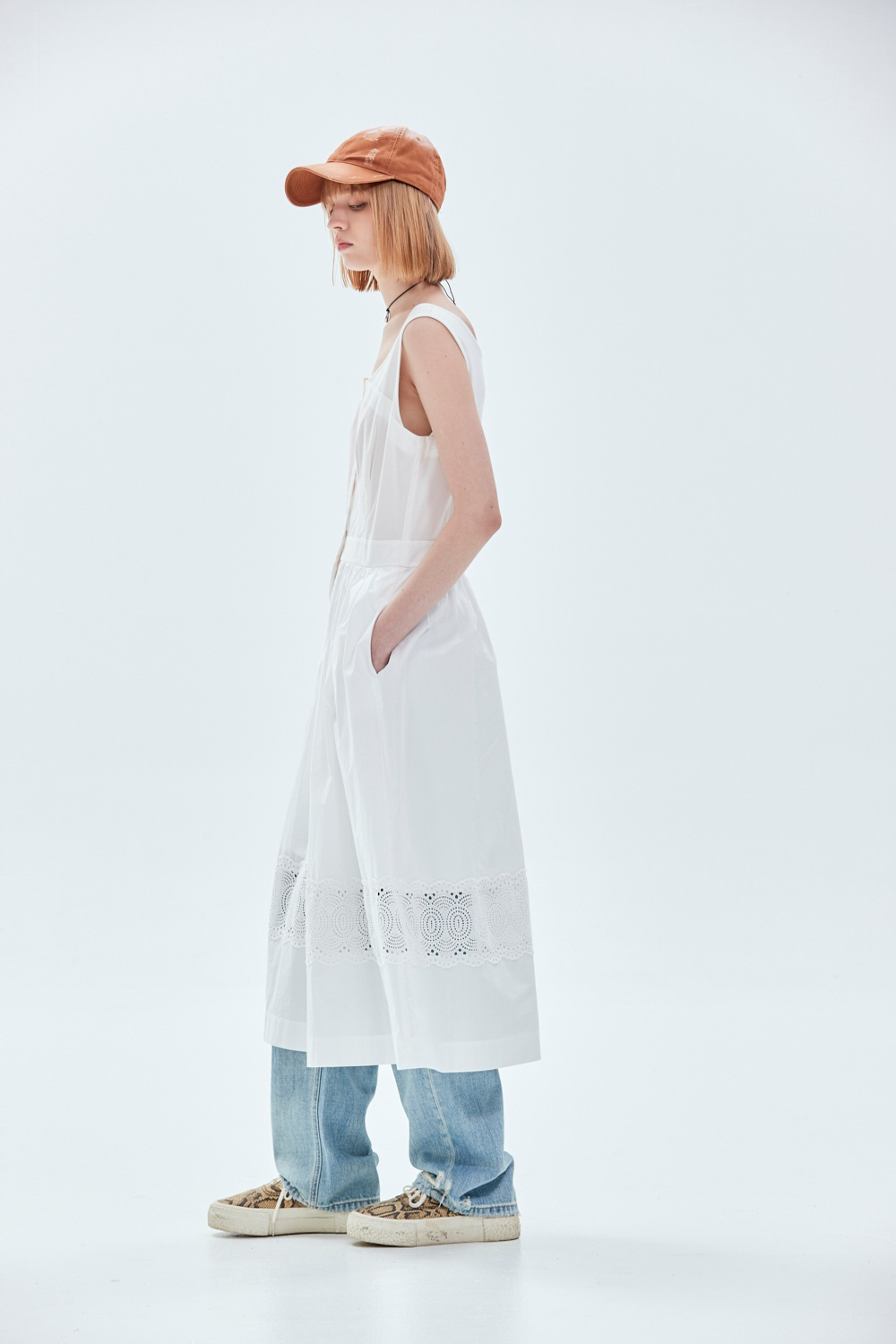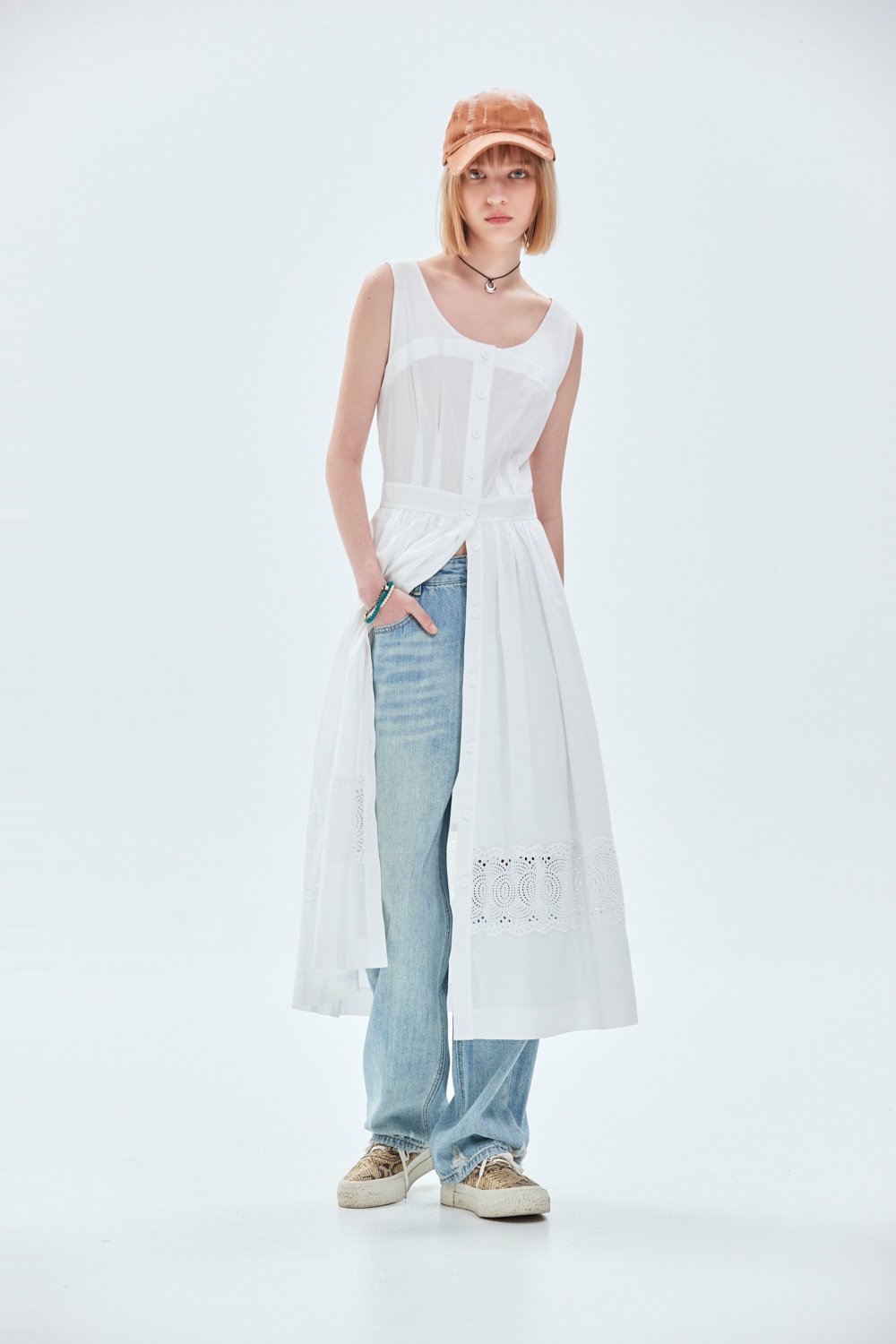 蕾絲公主假兩件背心式洋裝 - 無瑕純白, 40