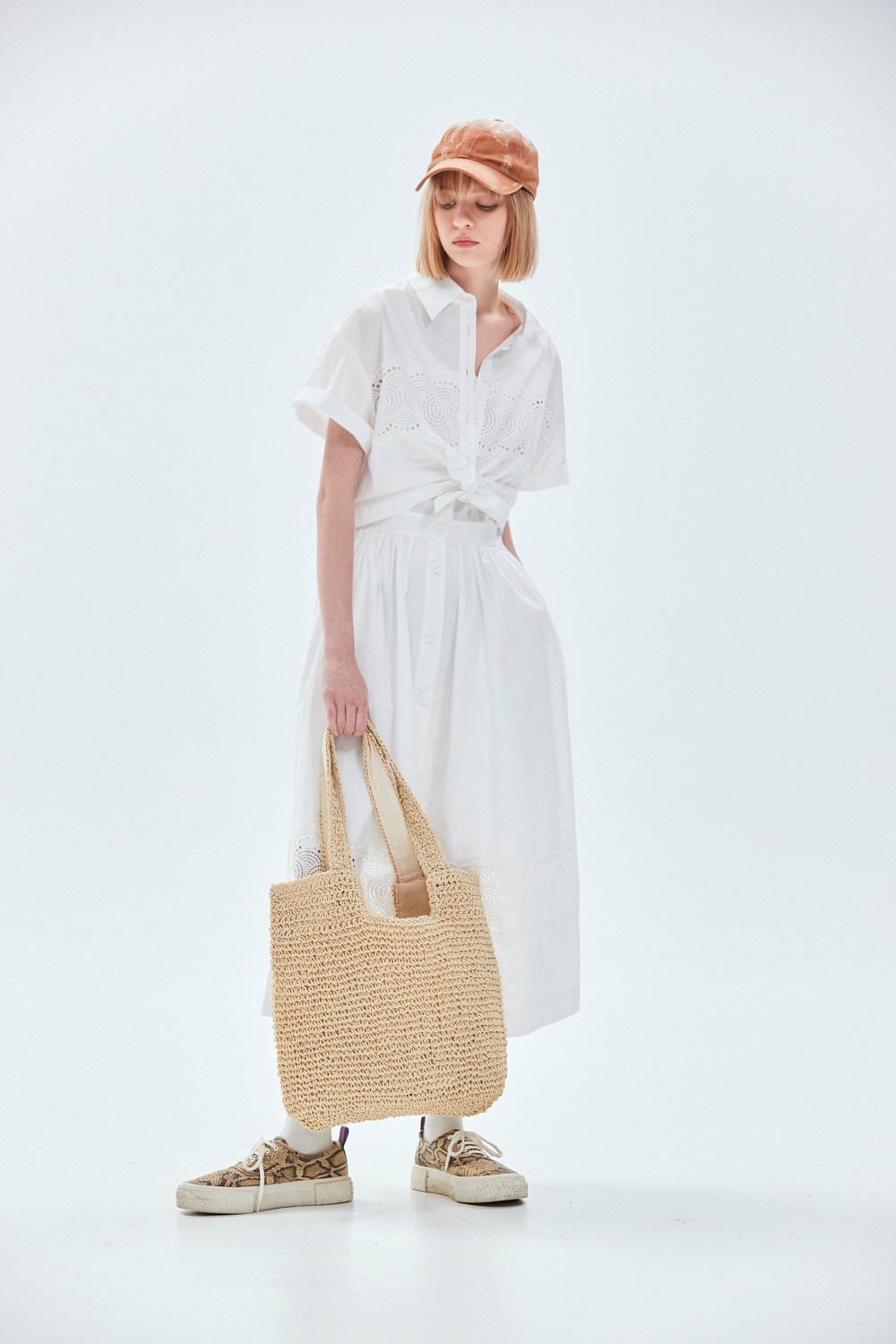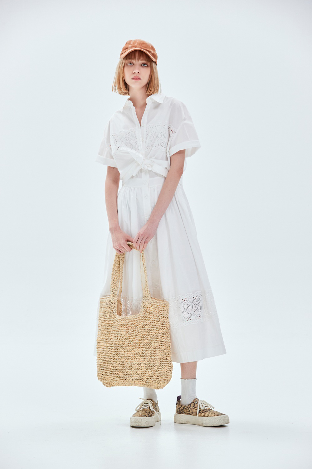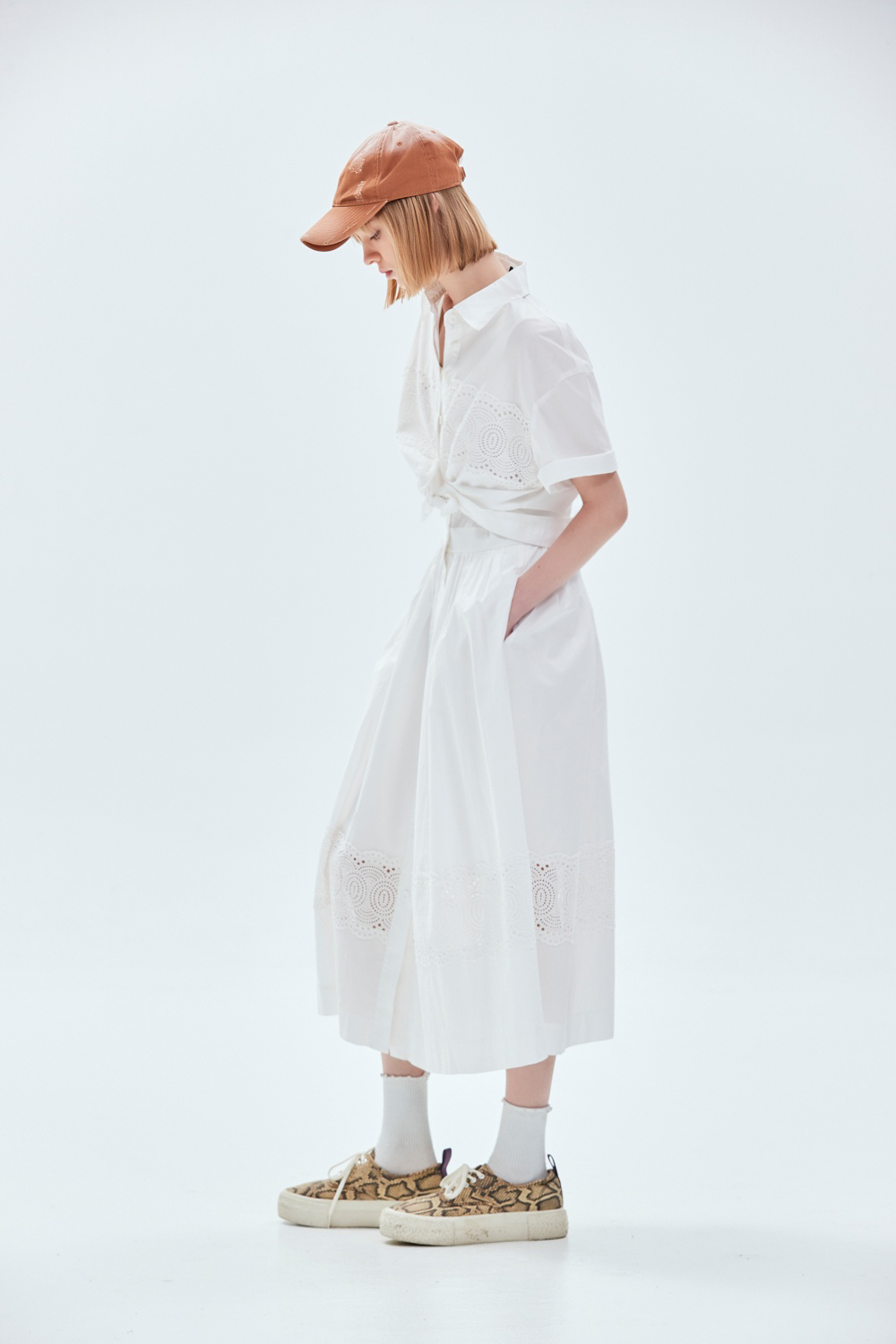 蕾絲公主假兩件背心式洋裝 - 無瑕純白, 40