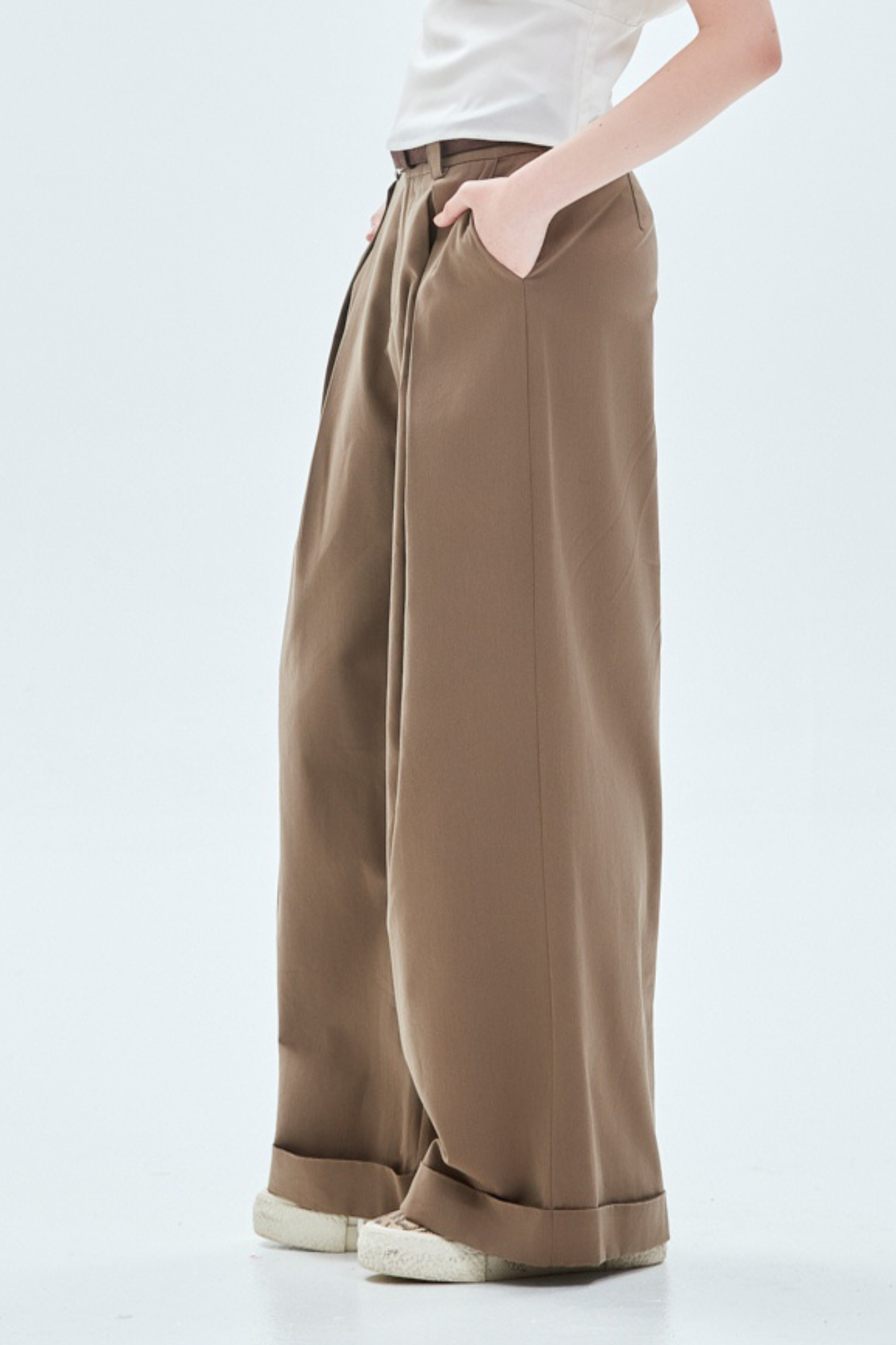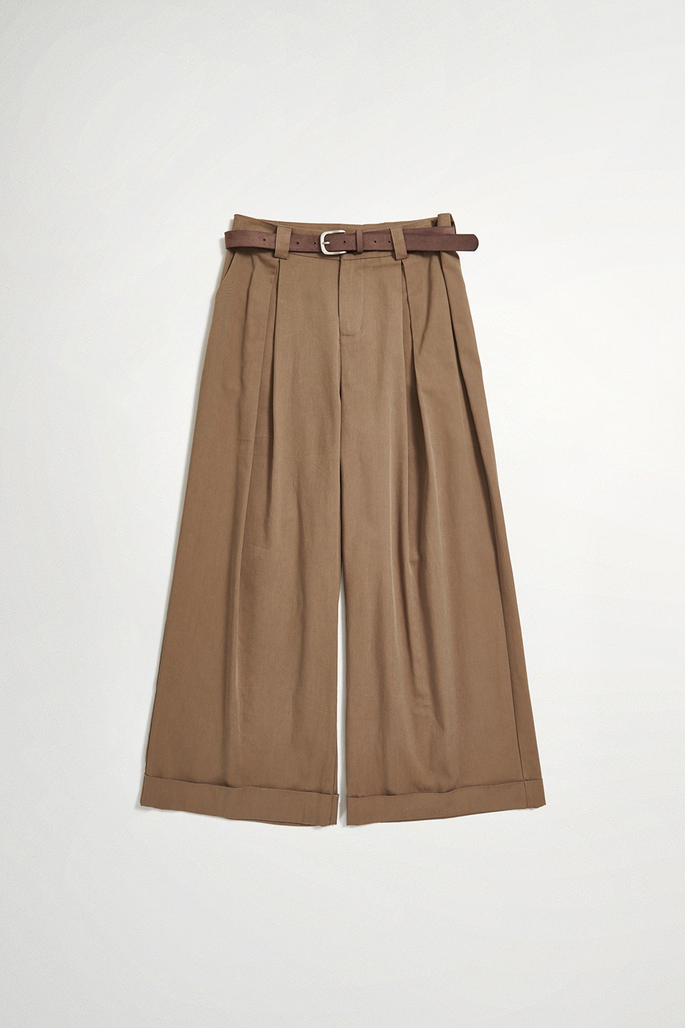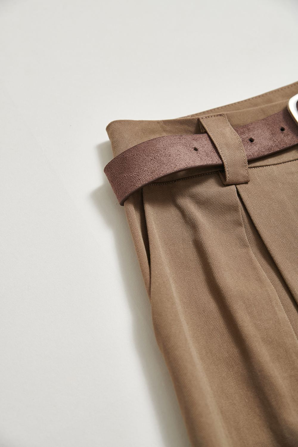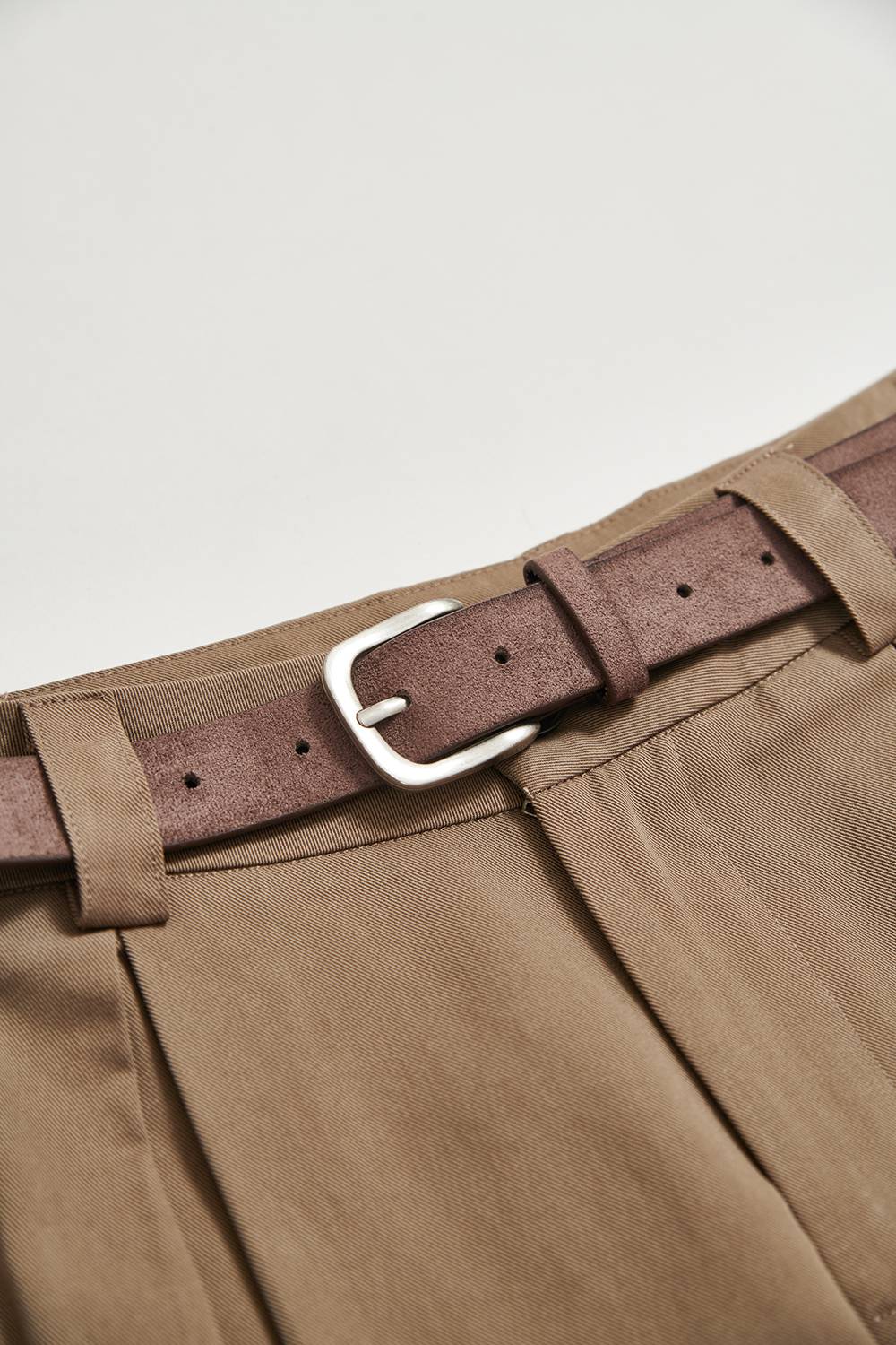 率性大方質感修身開褶長褲(附腰帶) - 古樸咖啡, 38