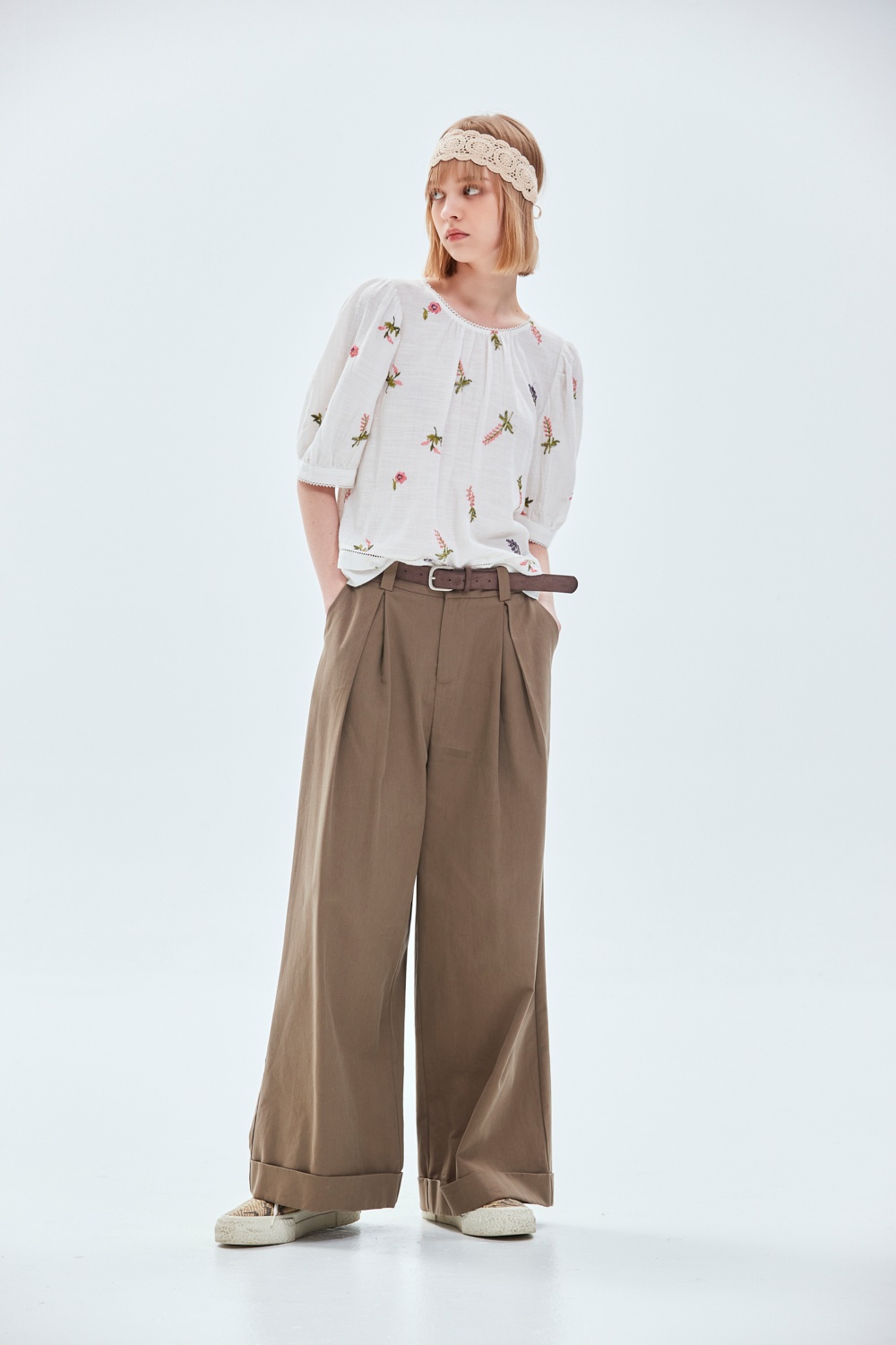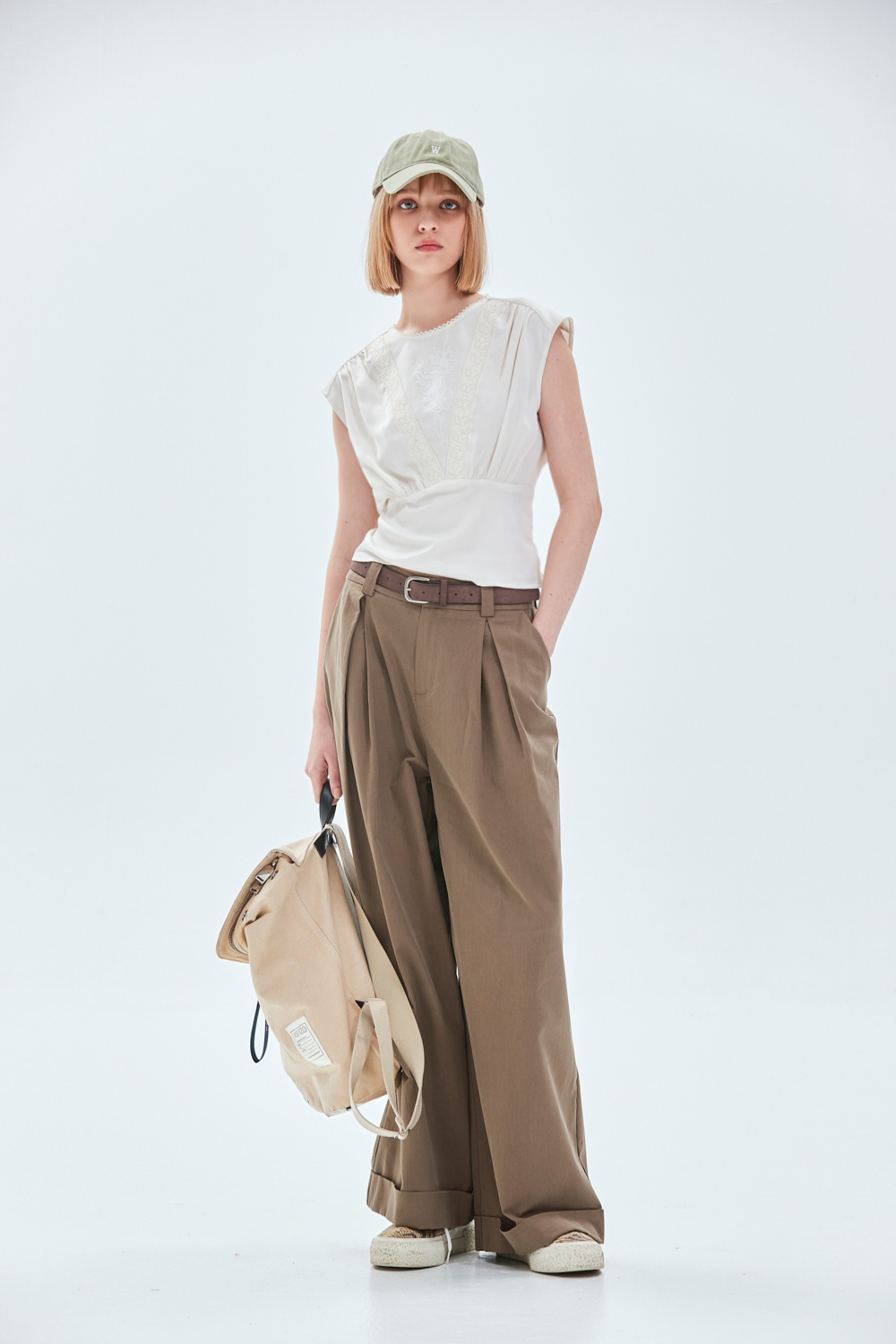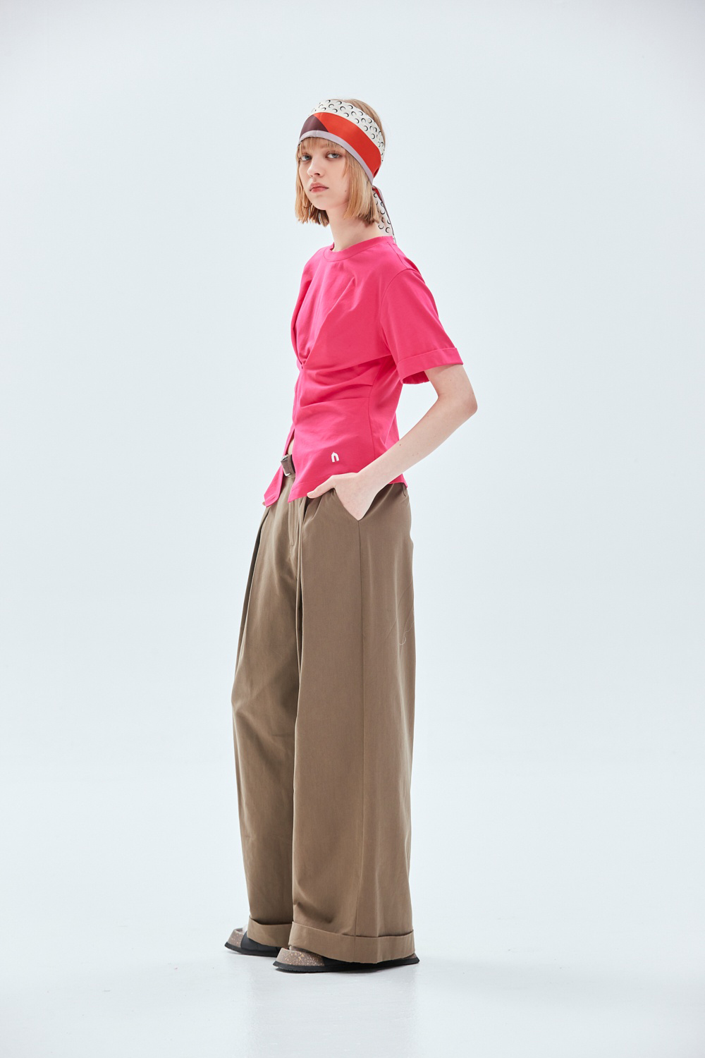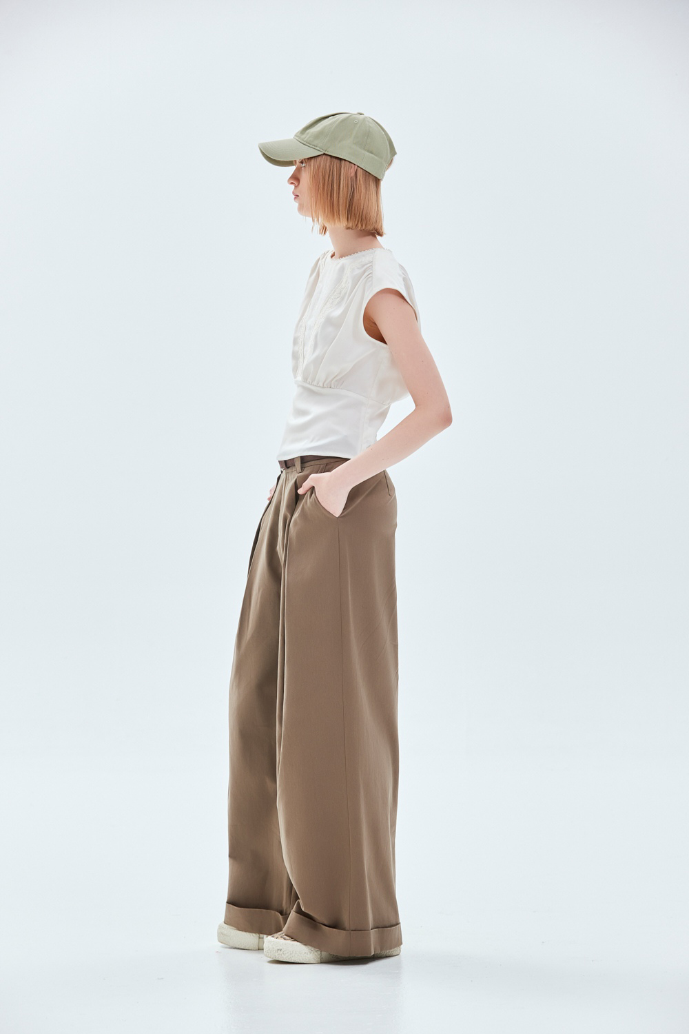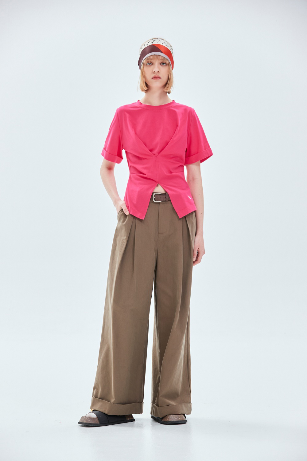 率性大方質感修身開褶長褲(附腰帶) - 古樸咖啡, 38
