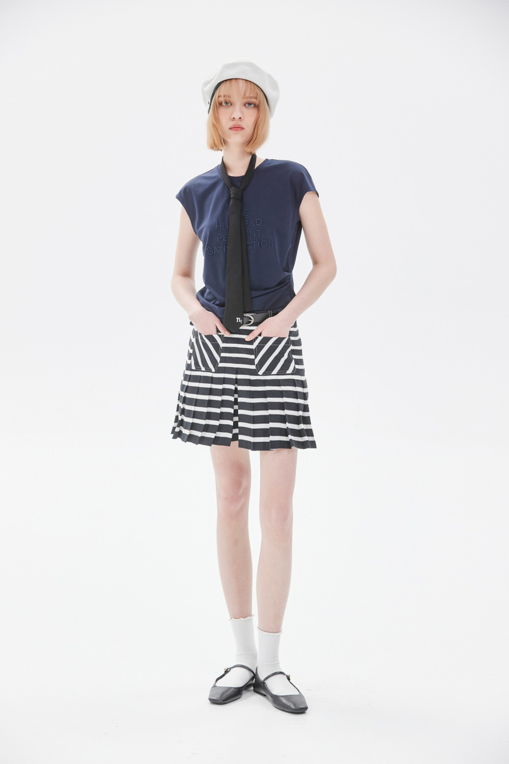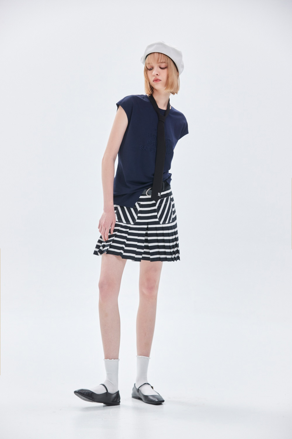 都會立體字母繡花抓皺上衣 - 深邃藏藍, 38