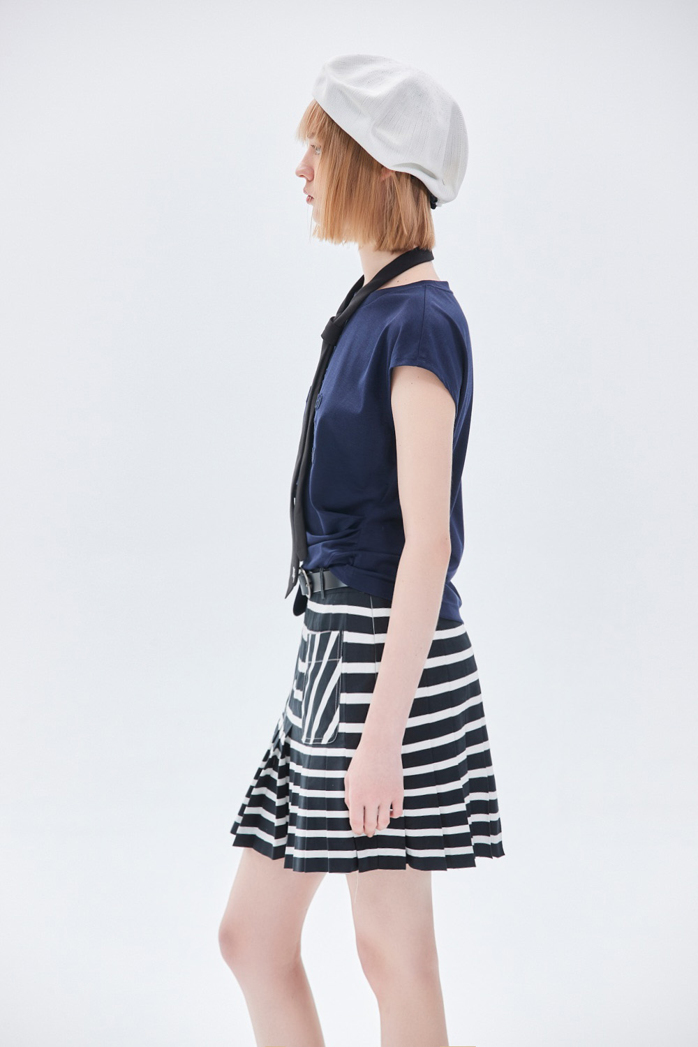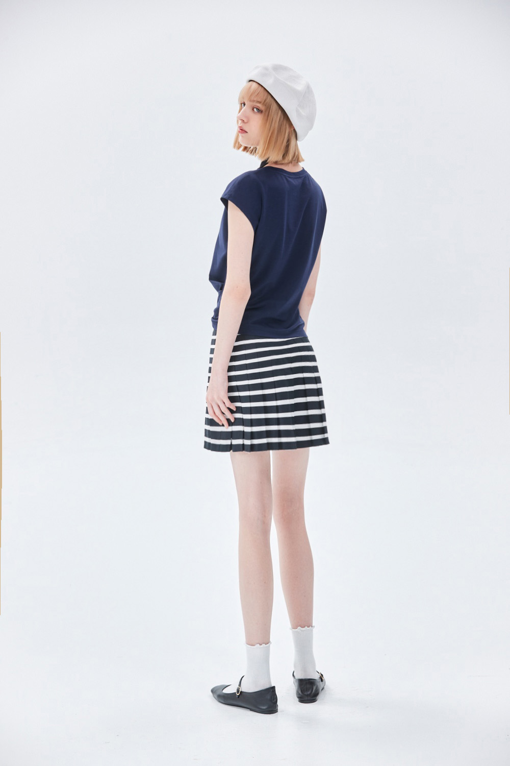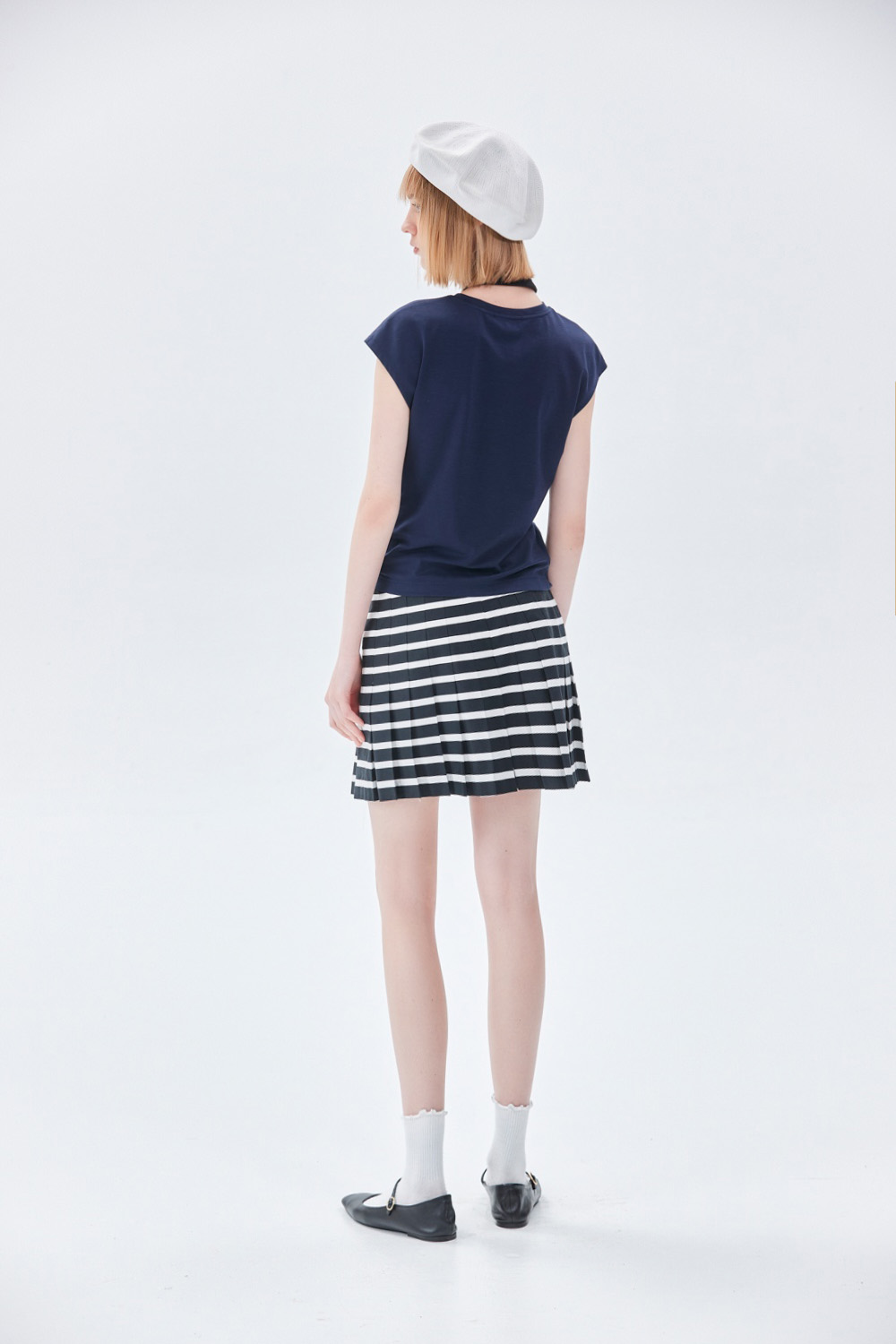 都會立體字母繡花抓皺上衣 - 深邃藏藍, 36