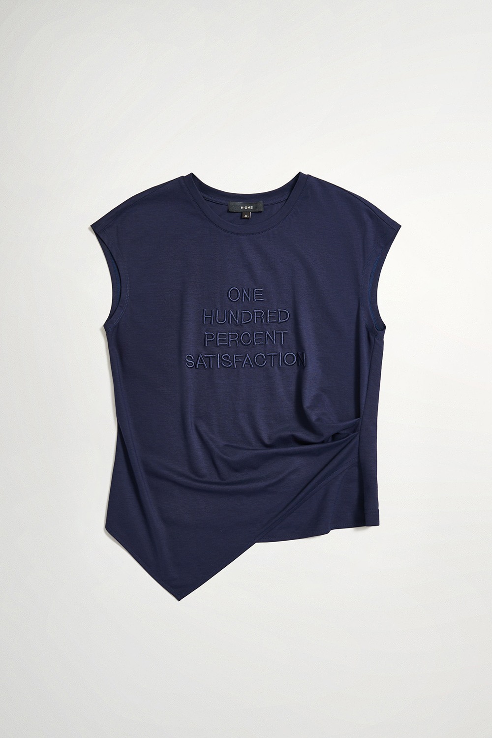 都會立體字母繡花抓皺上衣 - 深邃藏藍, 40