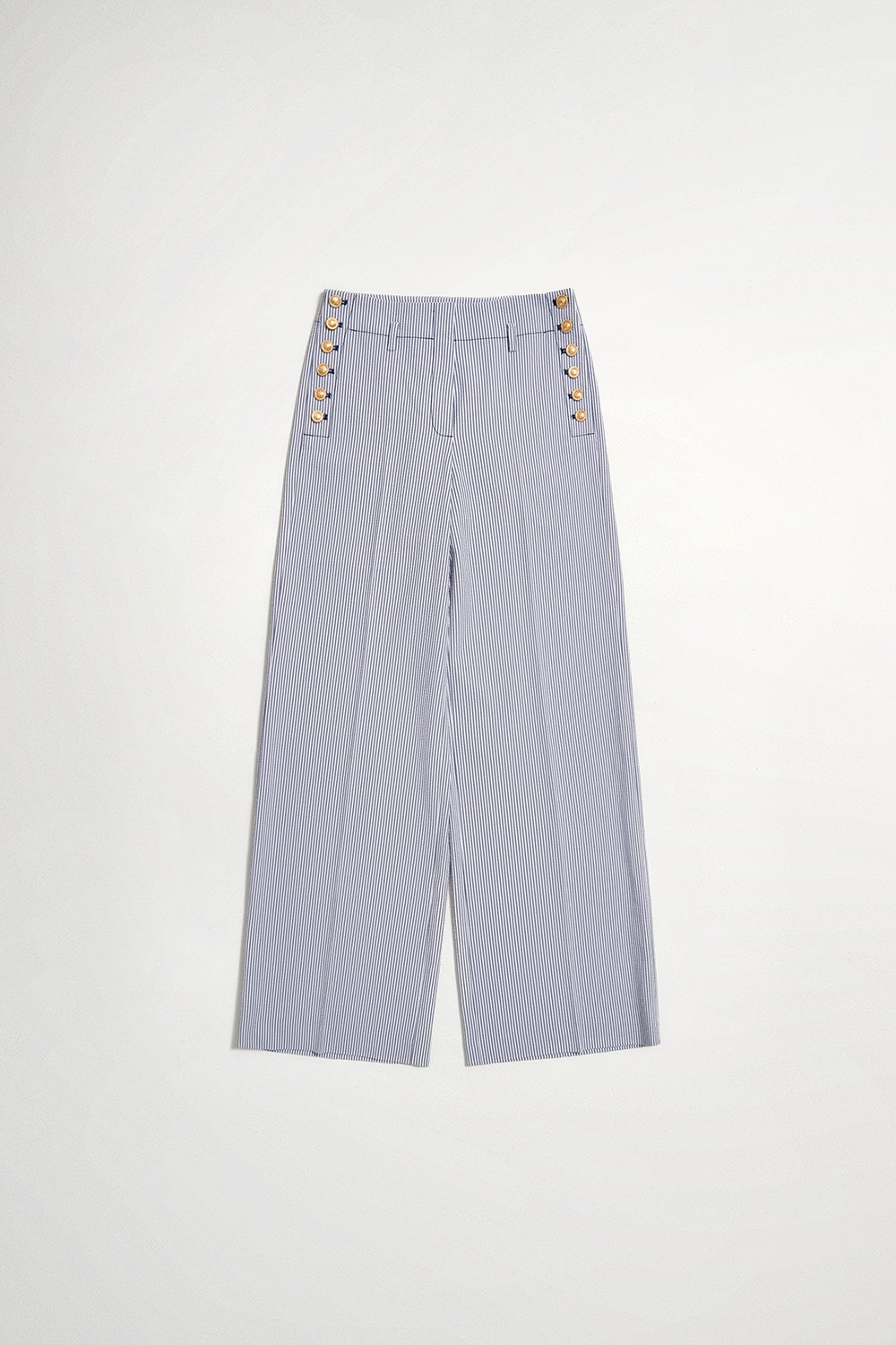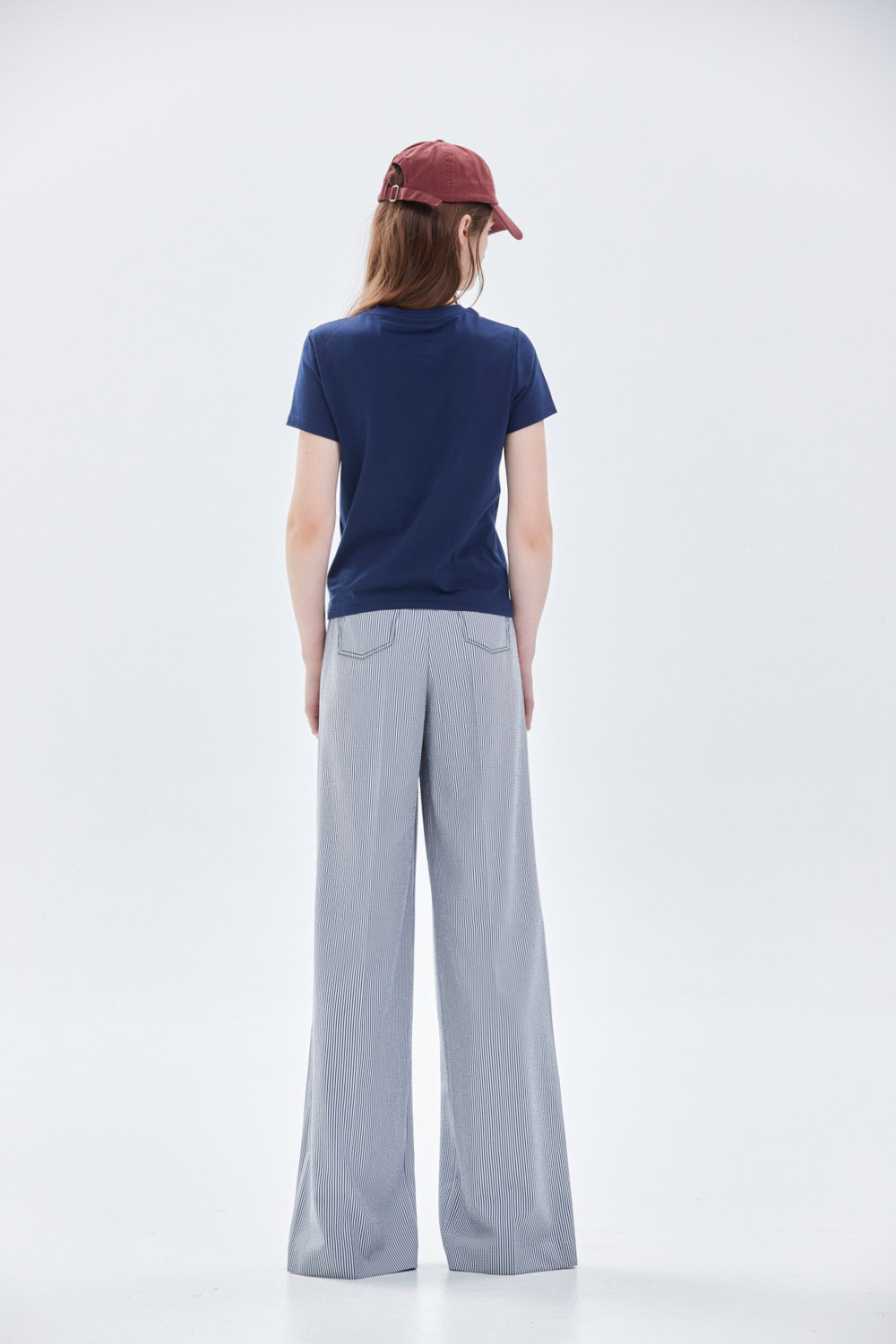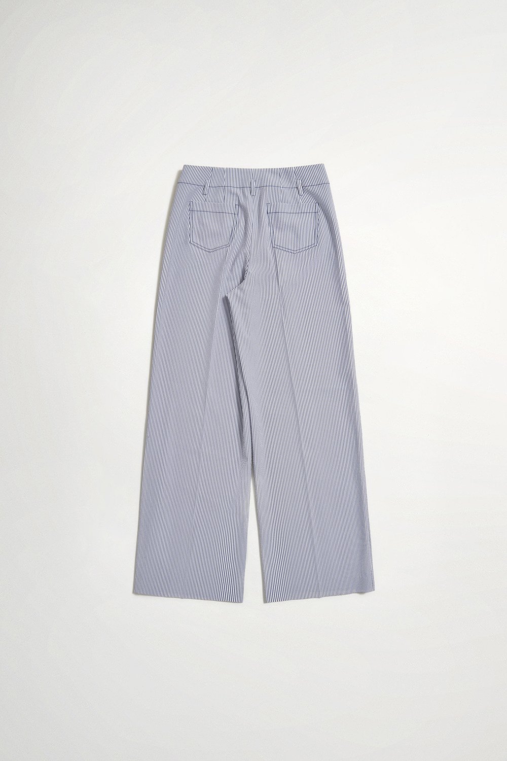 悠閒自在細條紋長褲 - 沉穩霧灰, 36