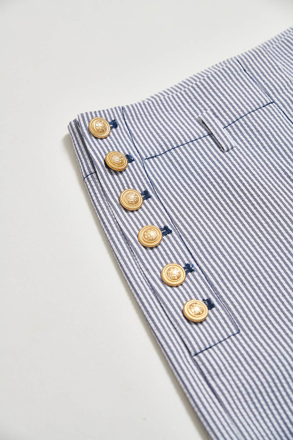 悠閒自在細條紋長褲 - 沉穩霧灰, 38