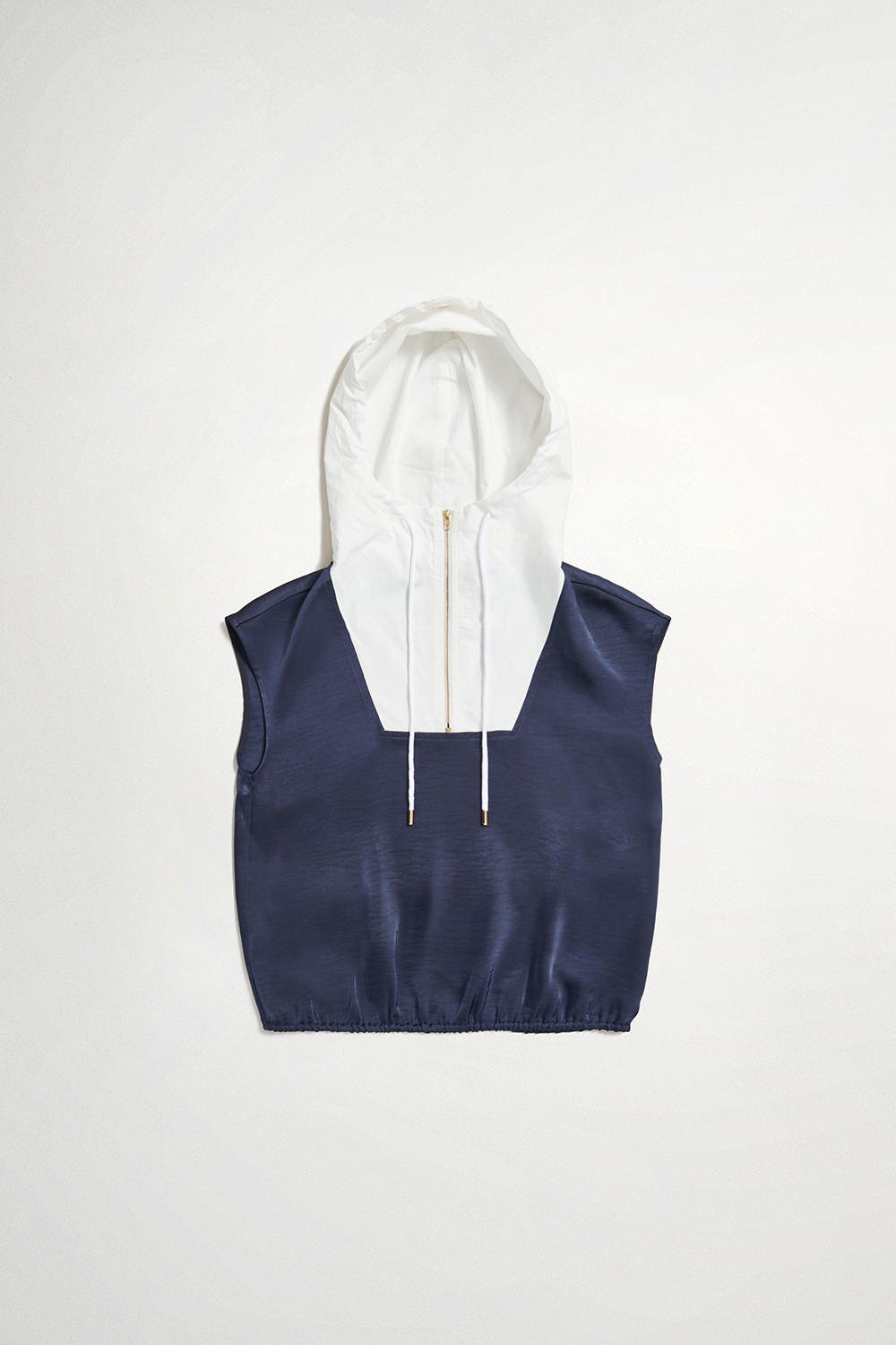 俐落質感緞面連帽上衣 - 深邃藏藍, 36