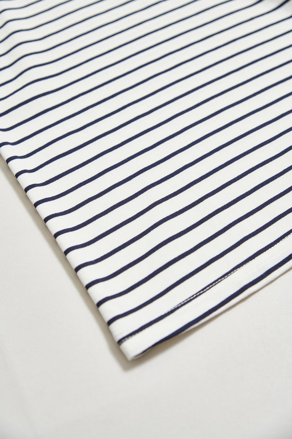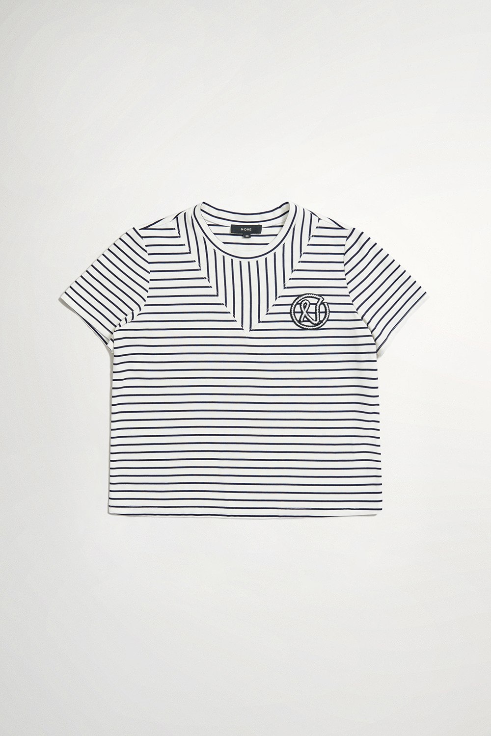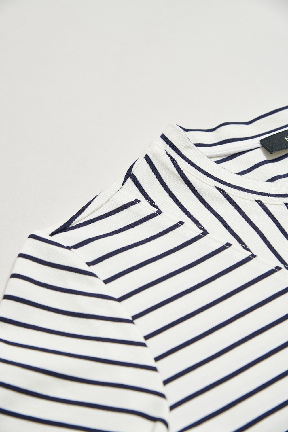 慵懶周末條紋繡花圓領上衣 - 無瑕純白, 38