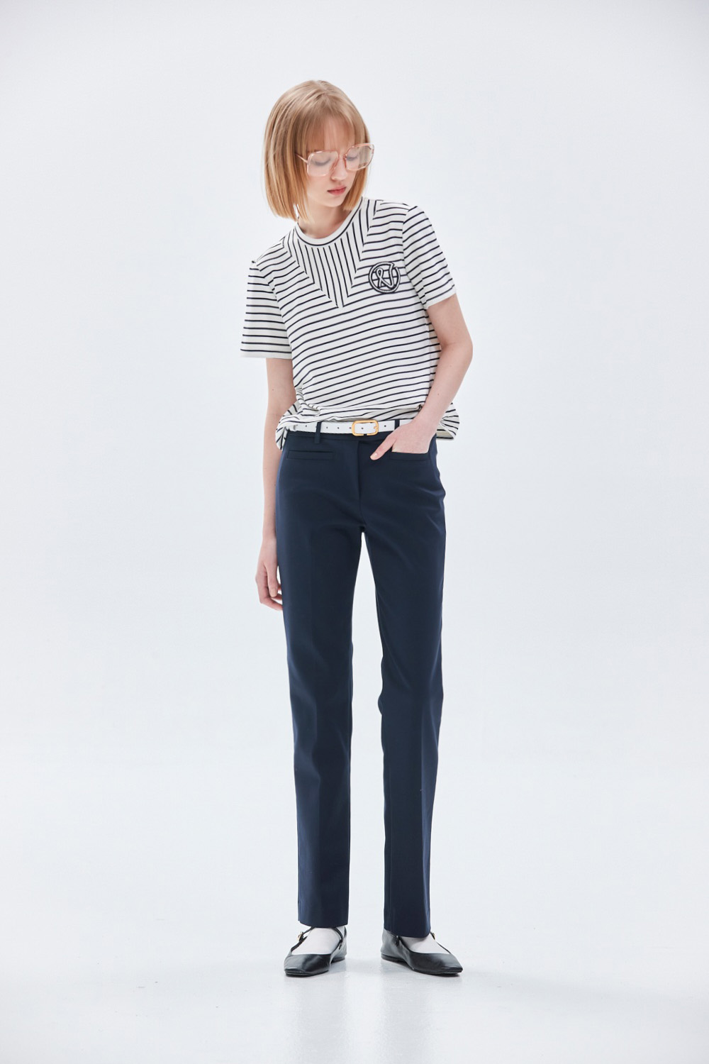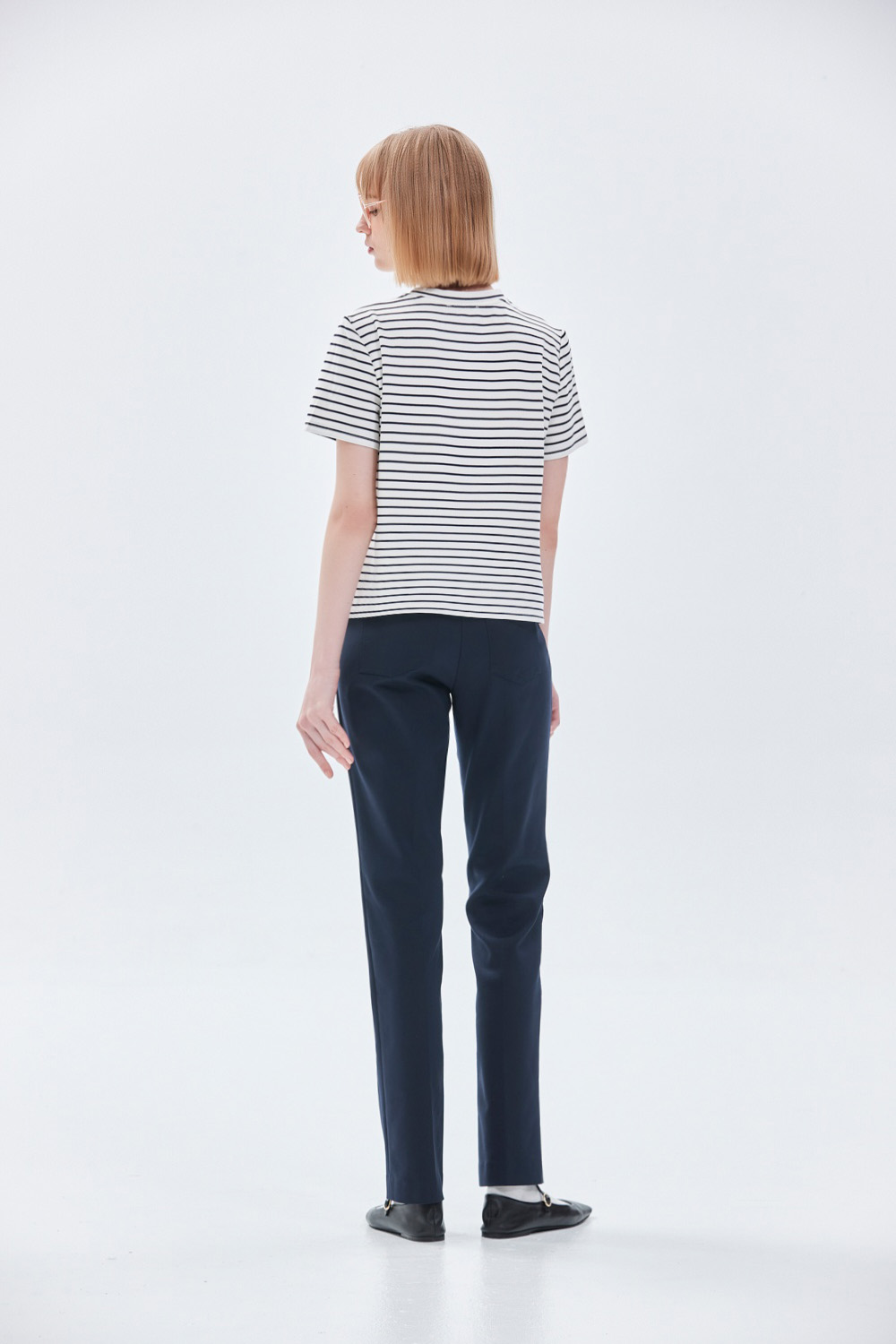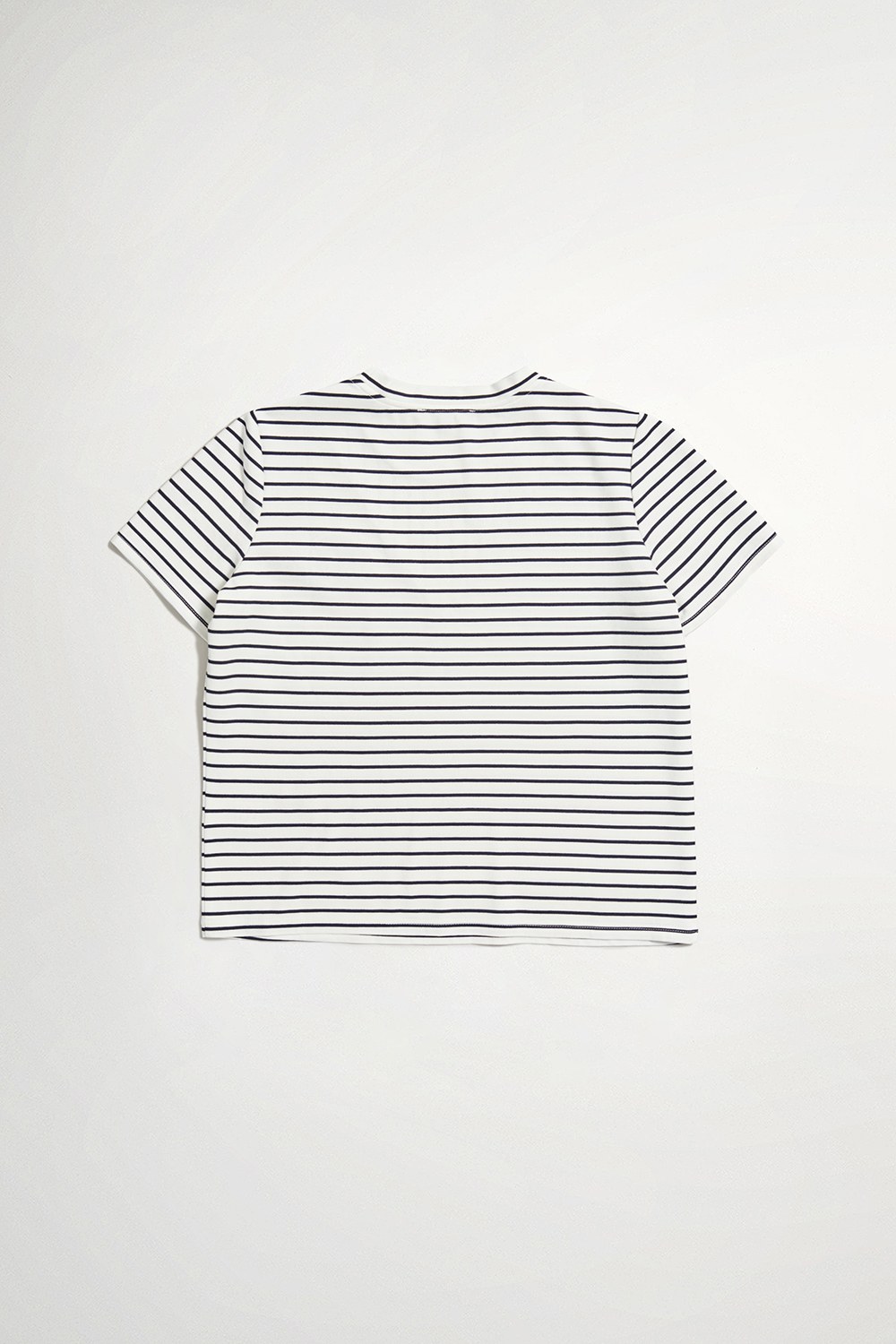 慵懶周末條紋繡花圓領上衣 - 無瑕純白, 38