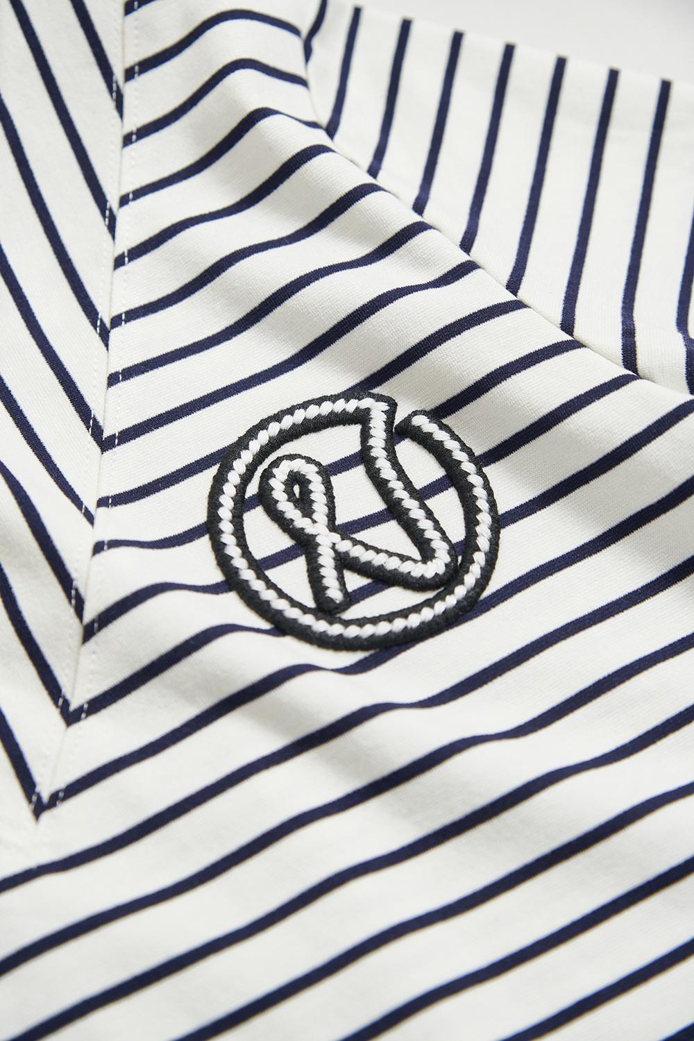 慵懶周末條紋繡花圓領上衣 - 無瑕純白, 36