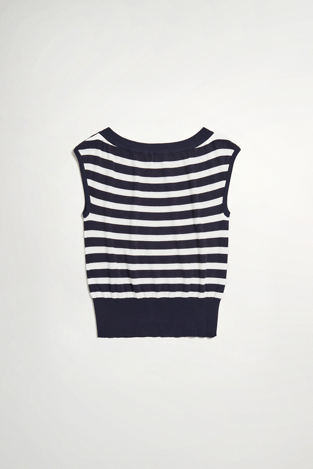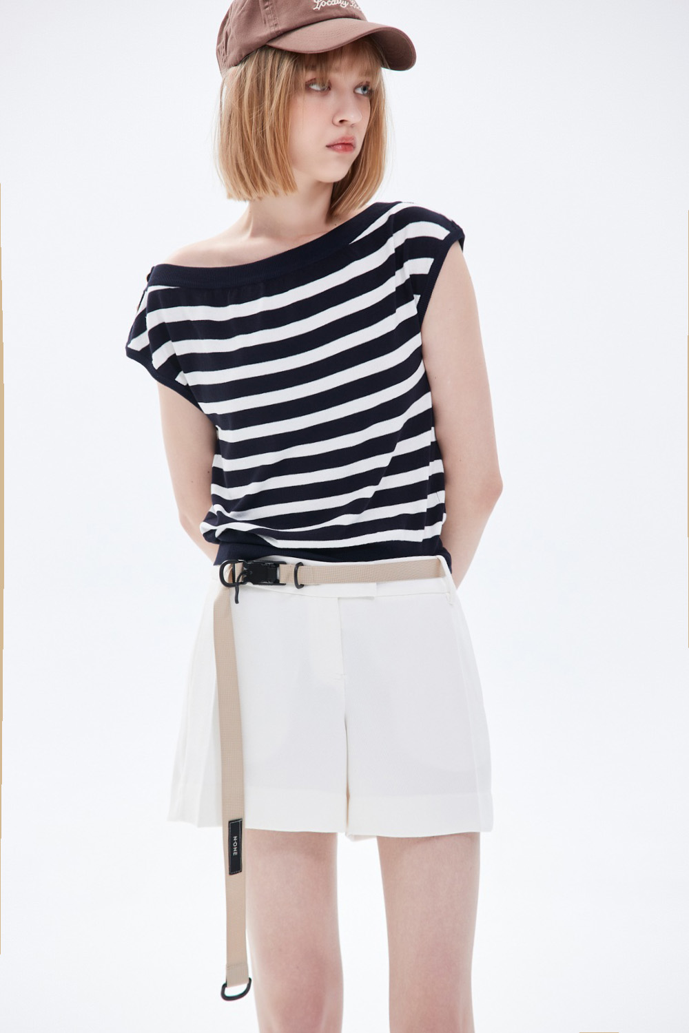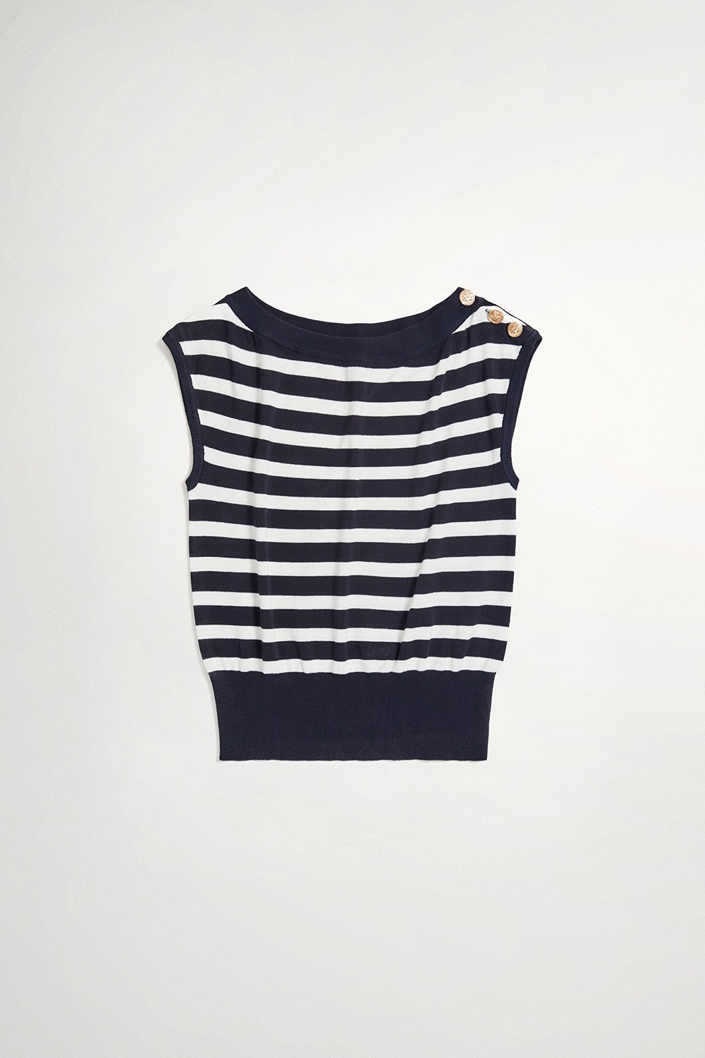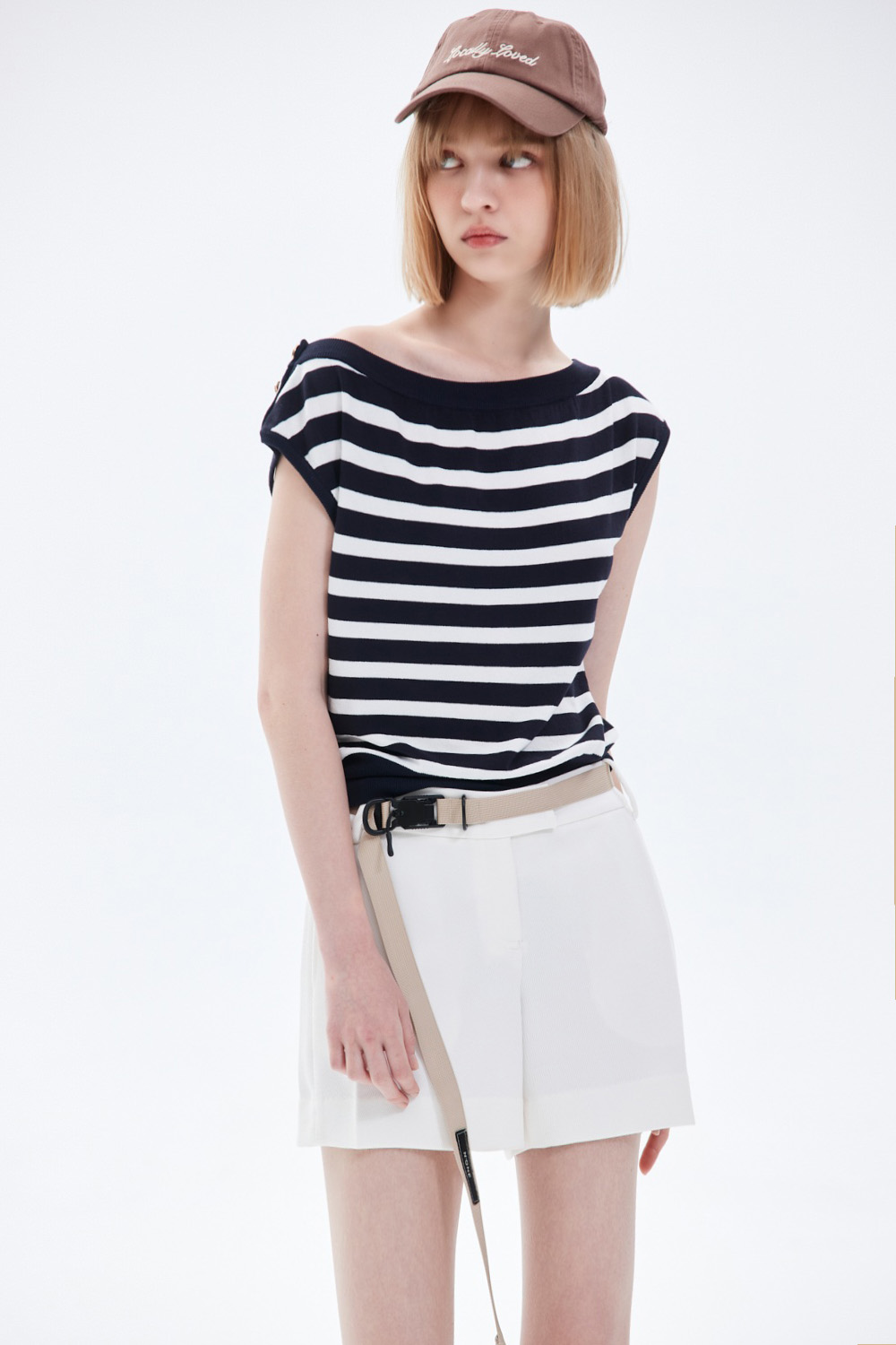 經典海軍風一字領針織上衣 - 深邃藏藍, 38