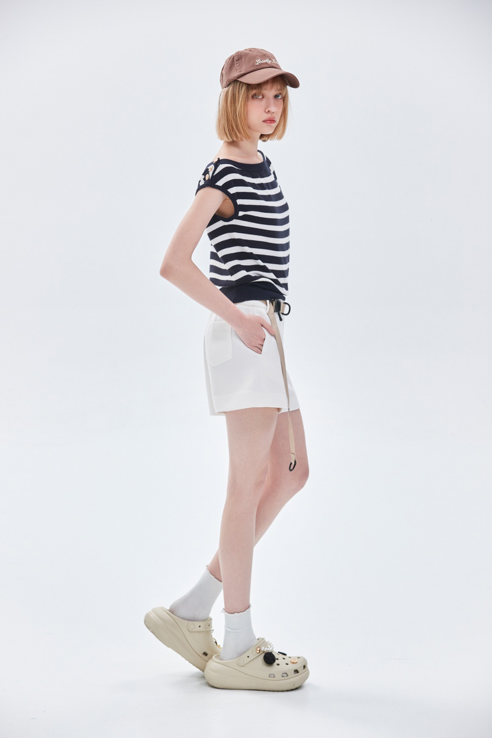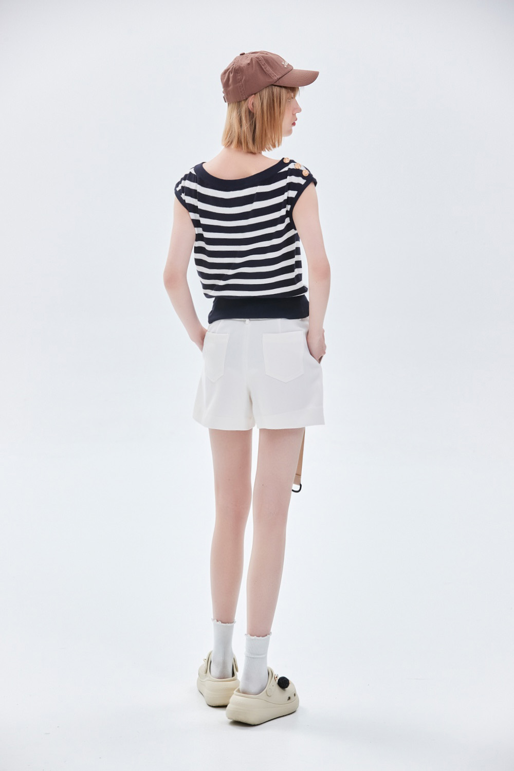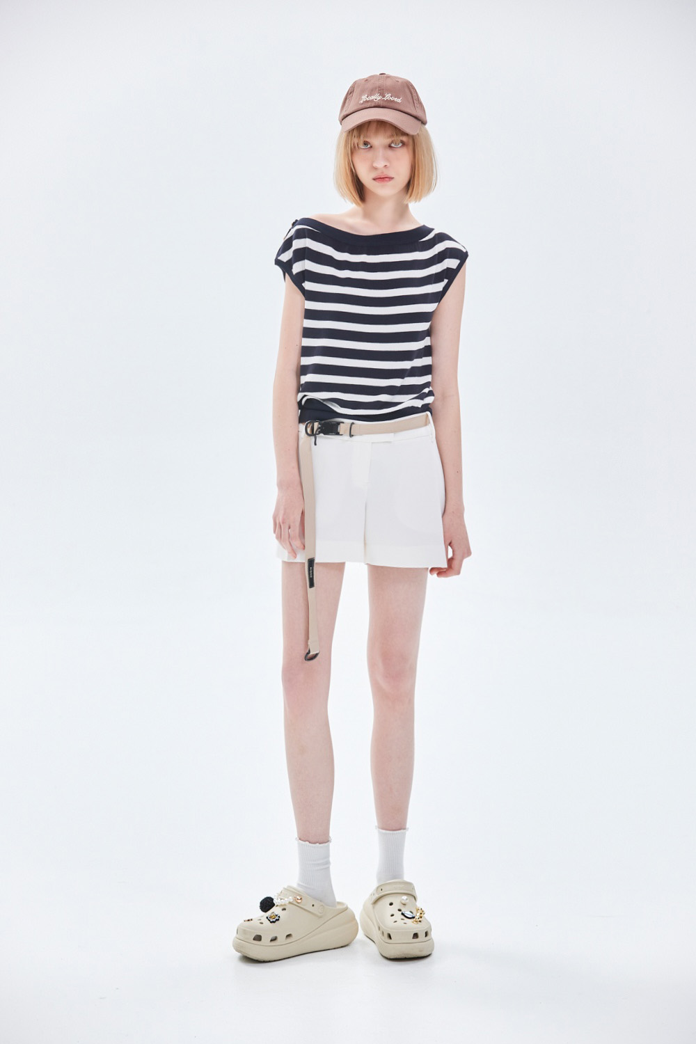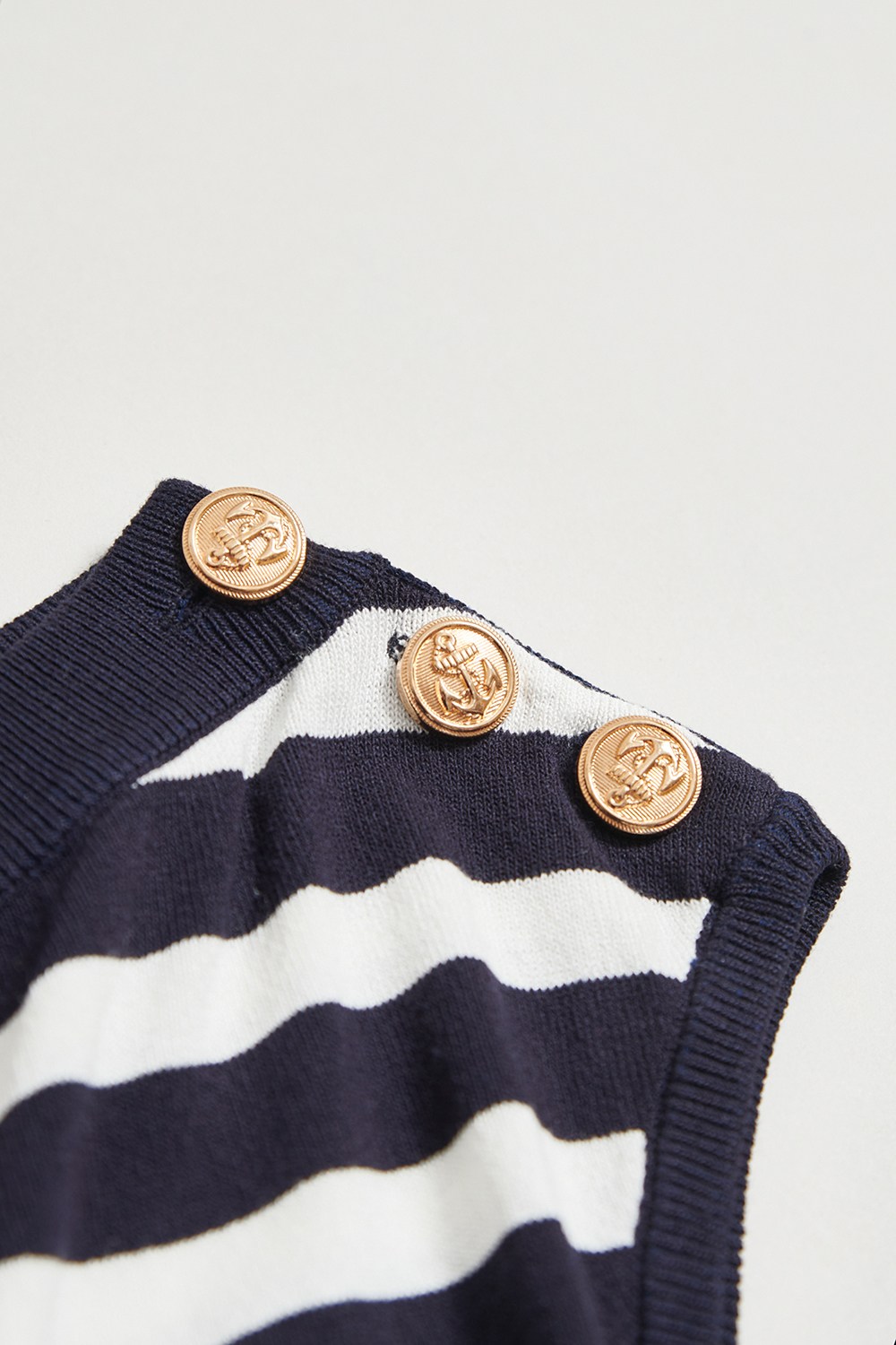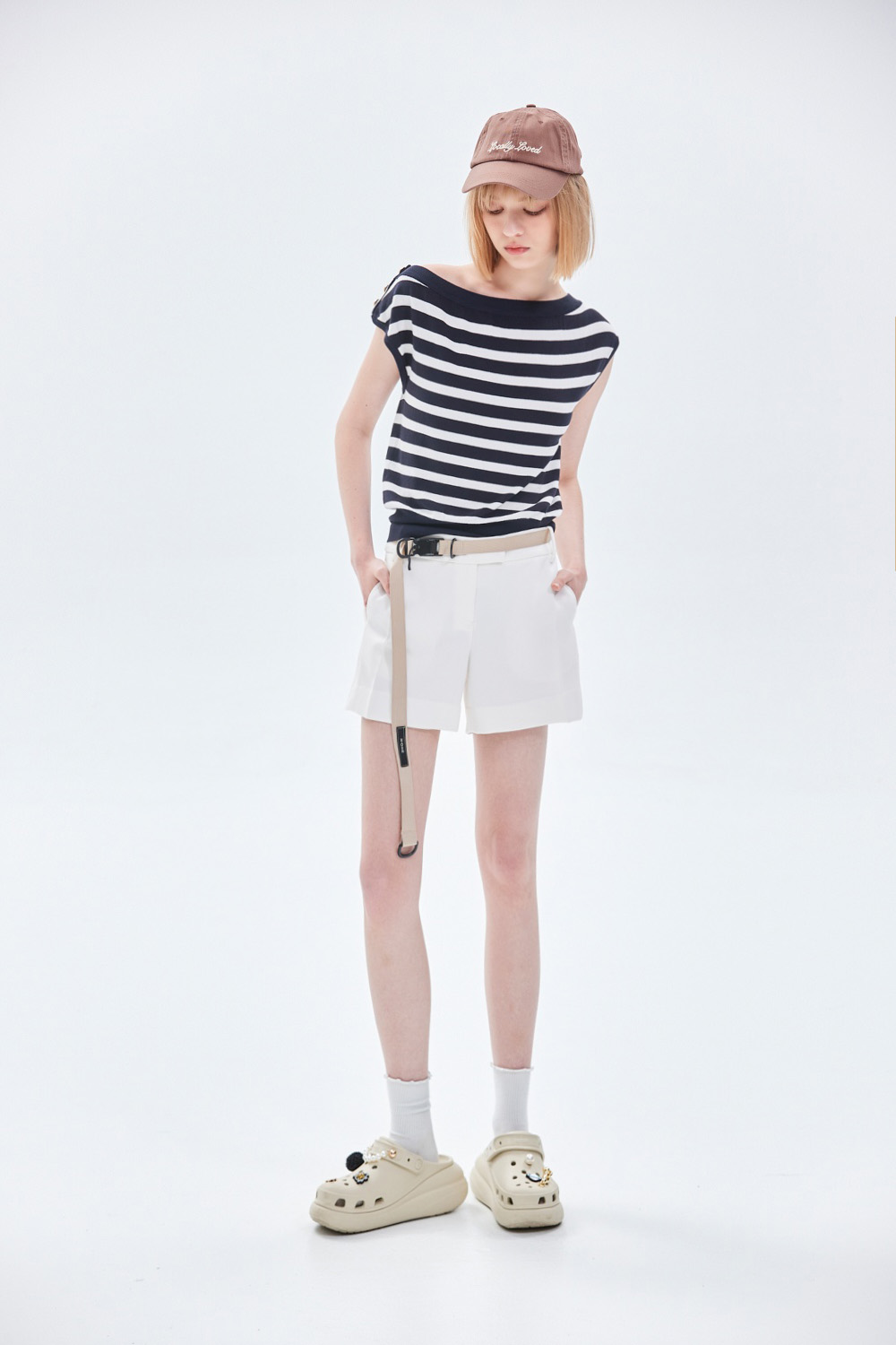 經典海軍風一字領針織上衣 - 深邃藏藍, 38