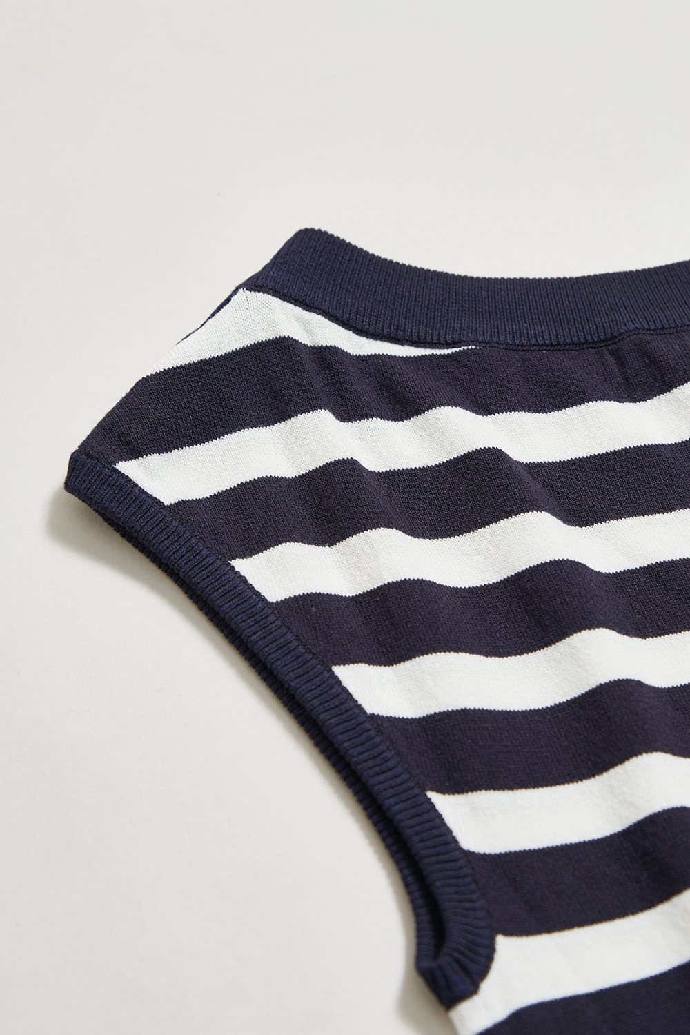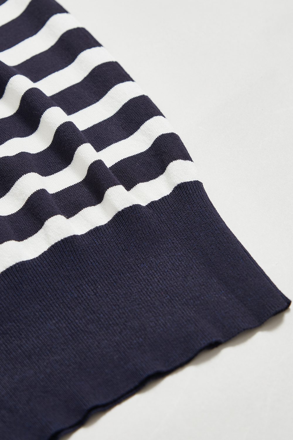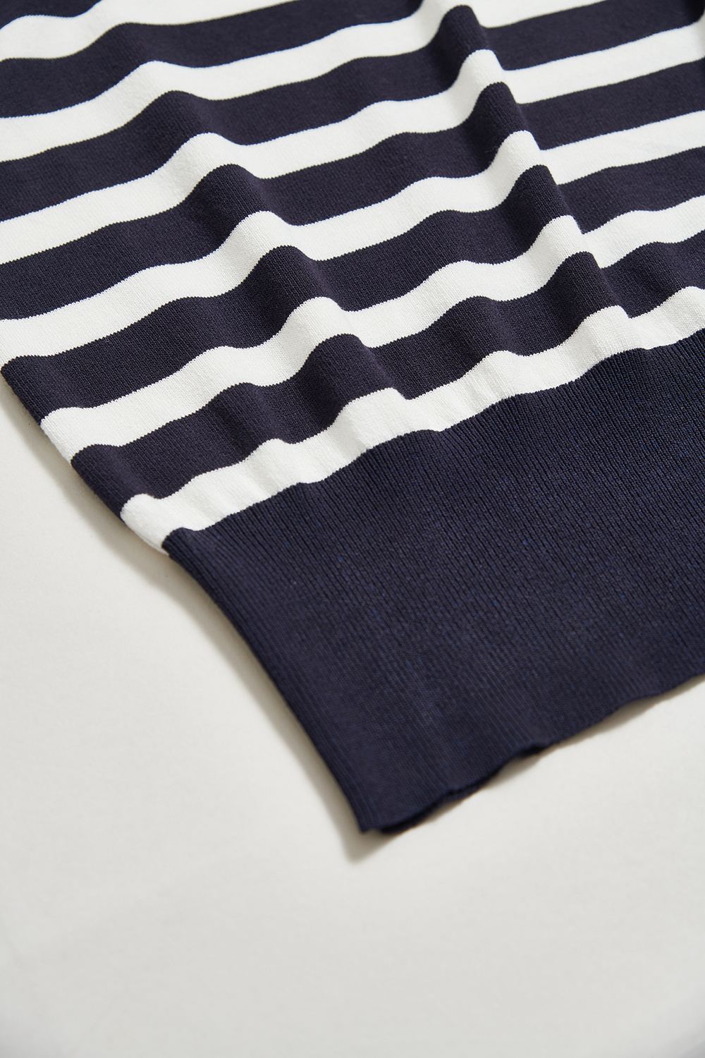 經典海軍風一字領針織上衣 - 深邃藏藍, 40