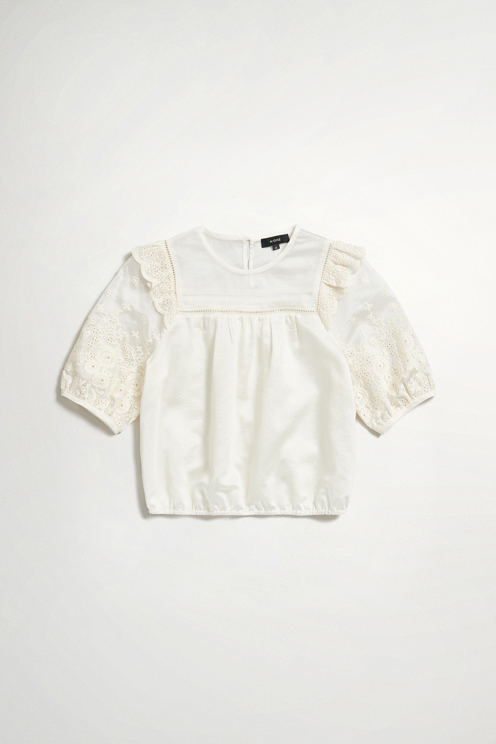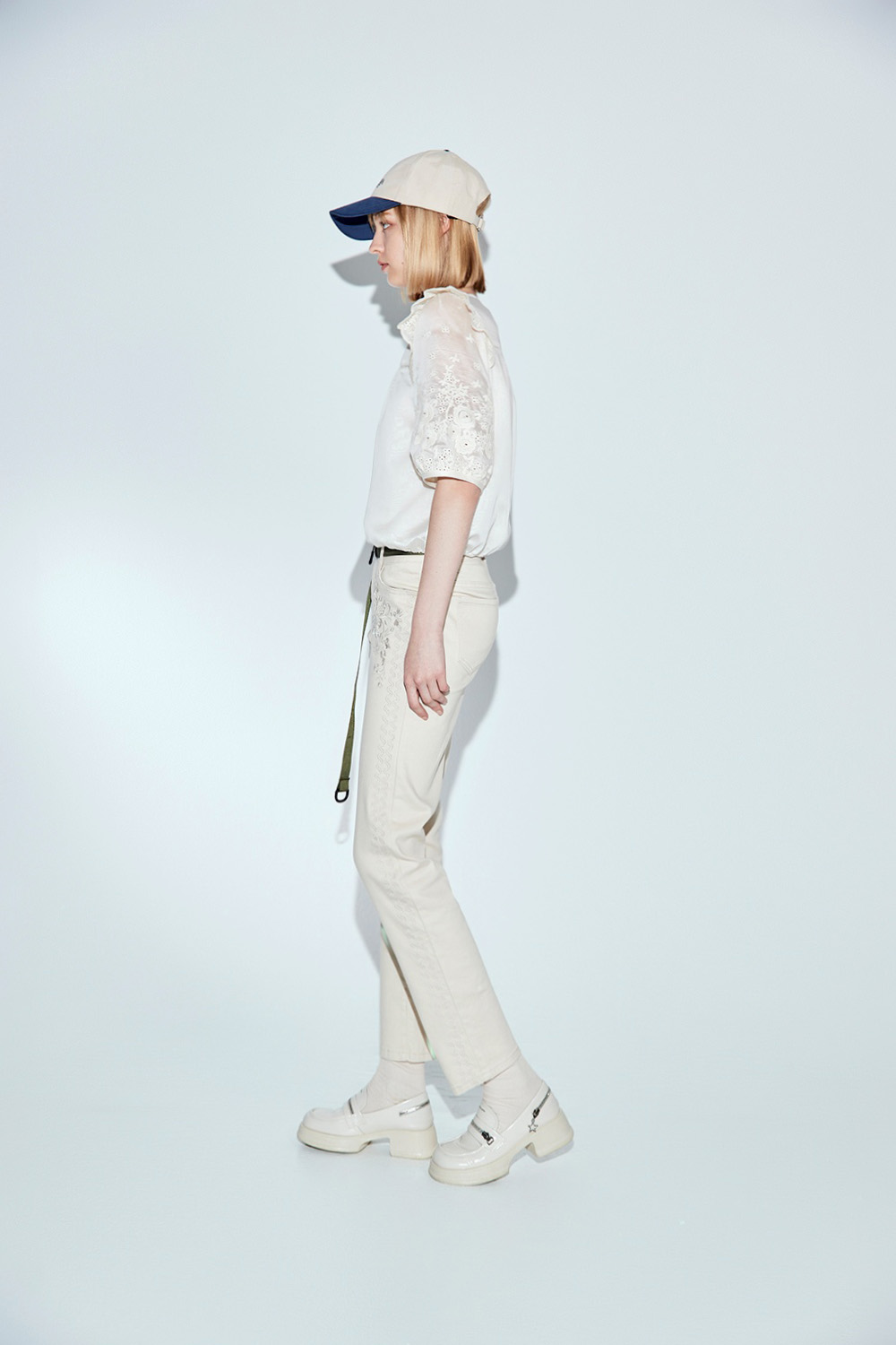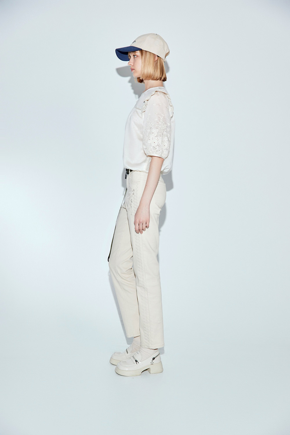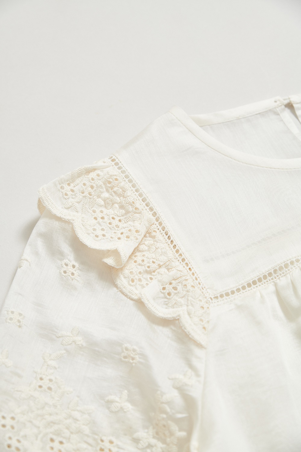 公主浪漫荷葉繡花上衣 - 奶油杏色, 36