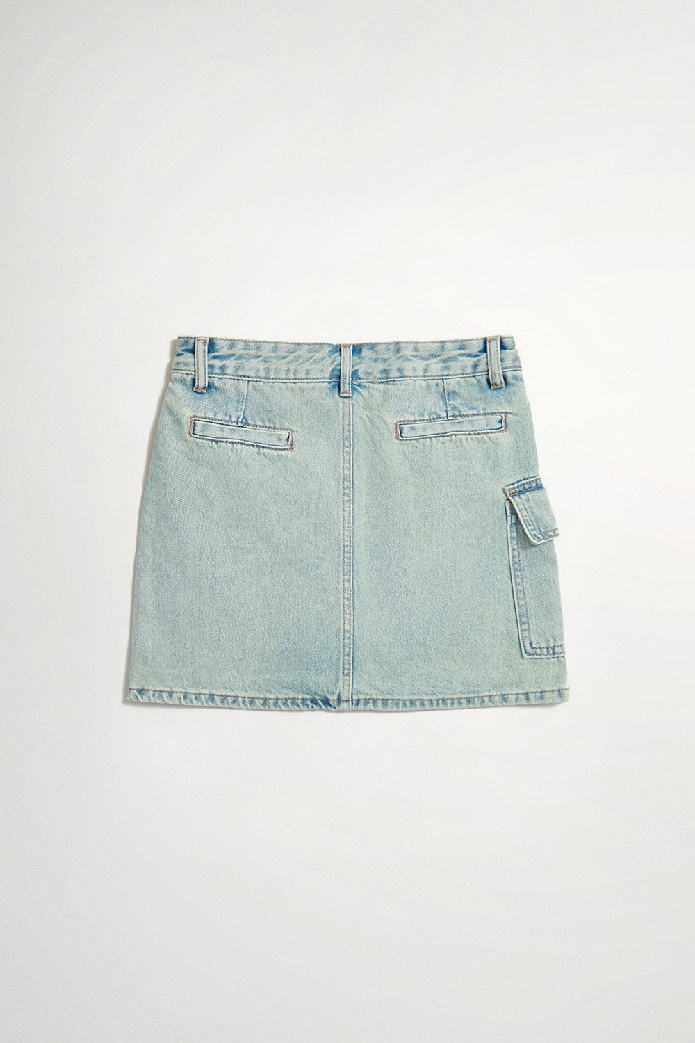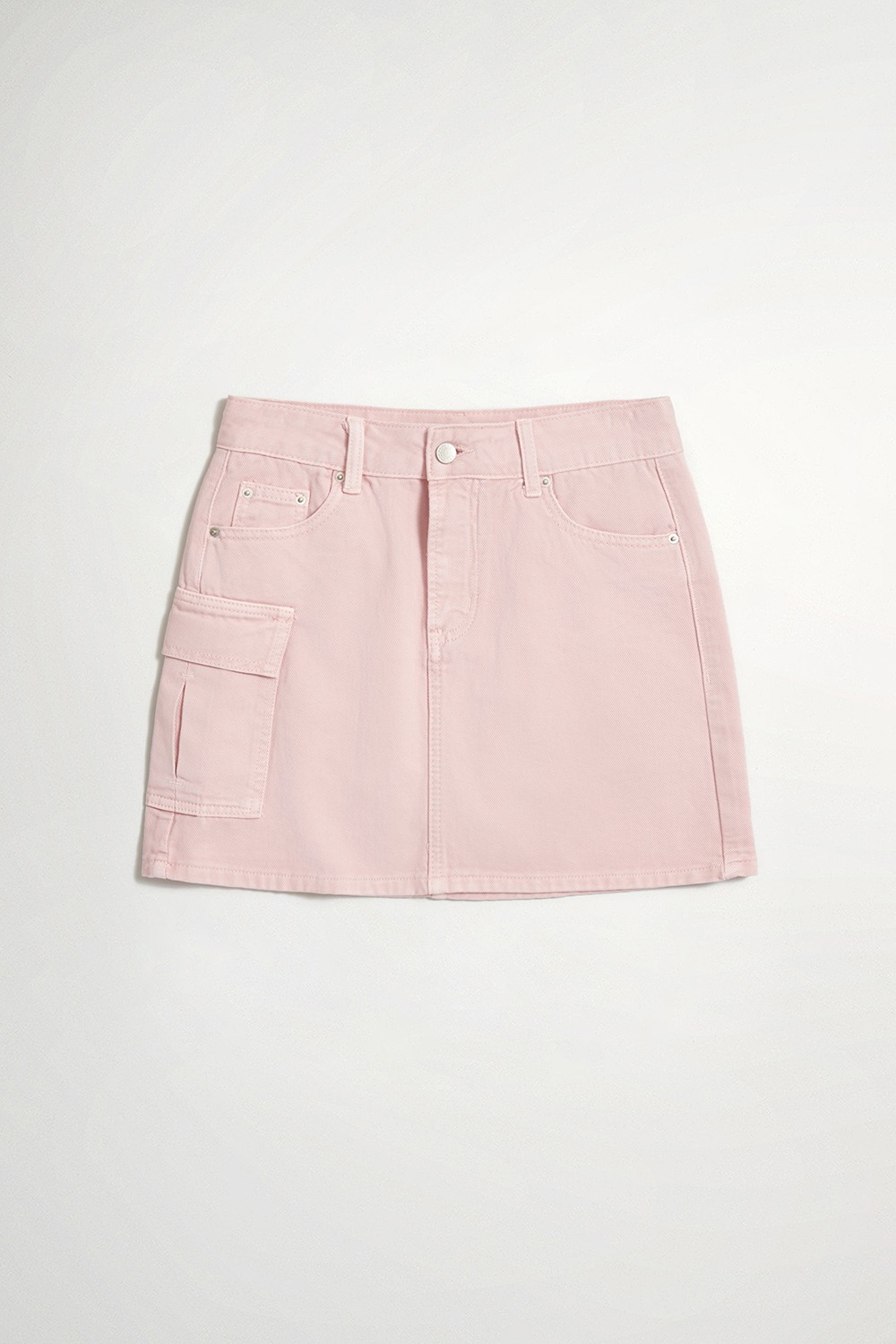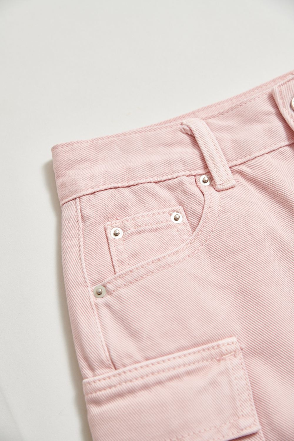 輕遊歷漫工裝洗色牛仔裙(藍/粉) - 微施粉澤, 36