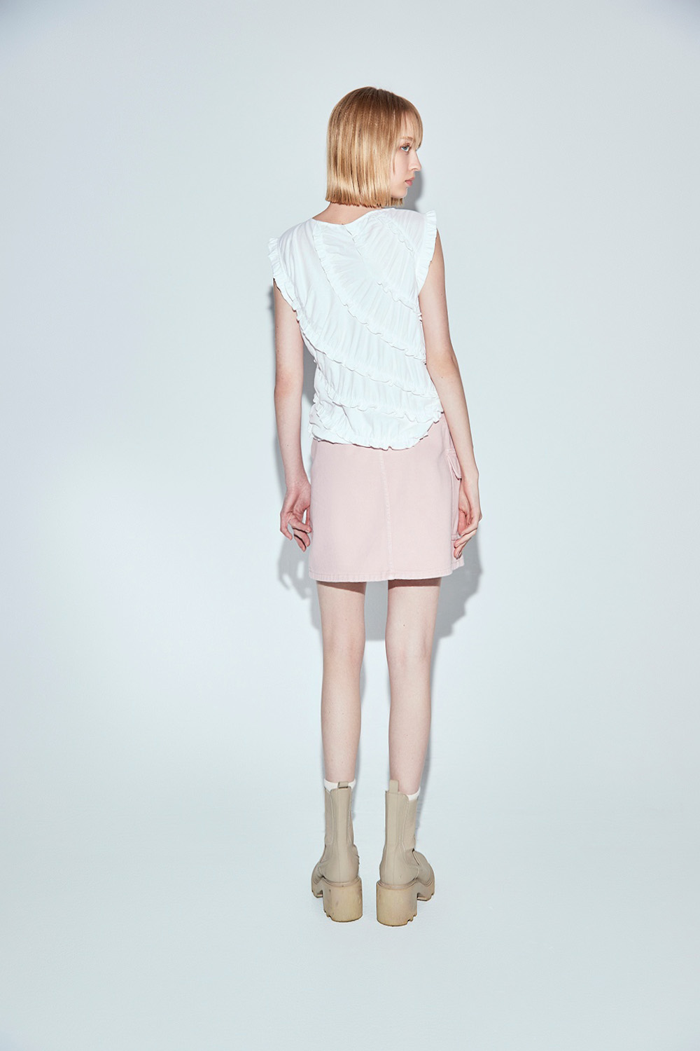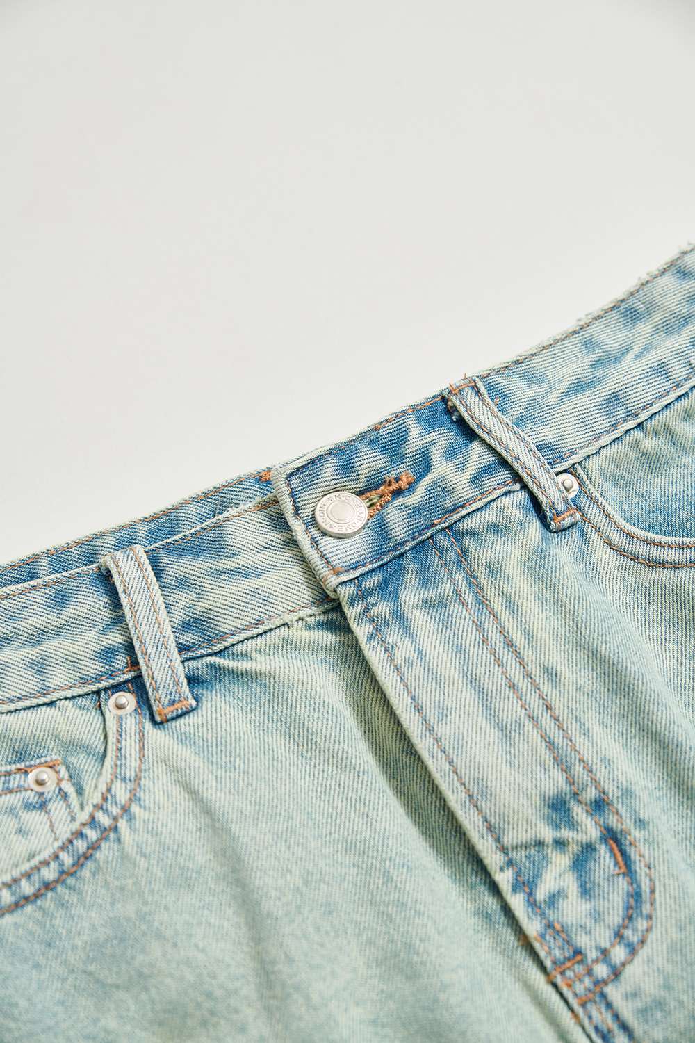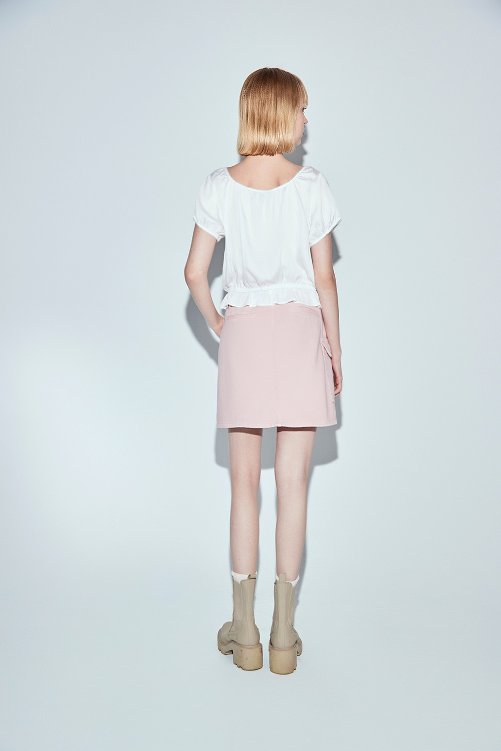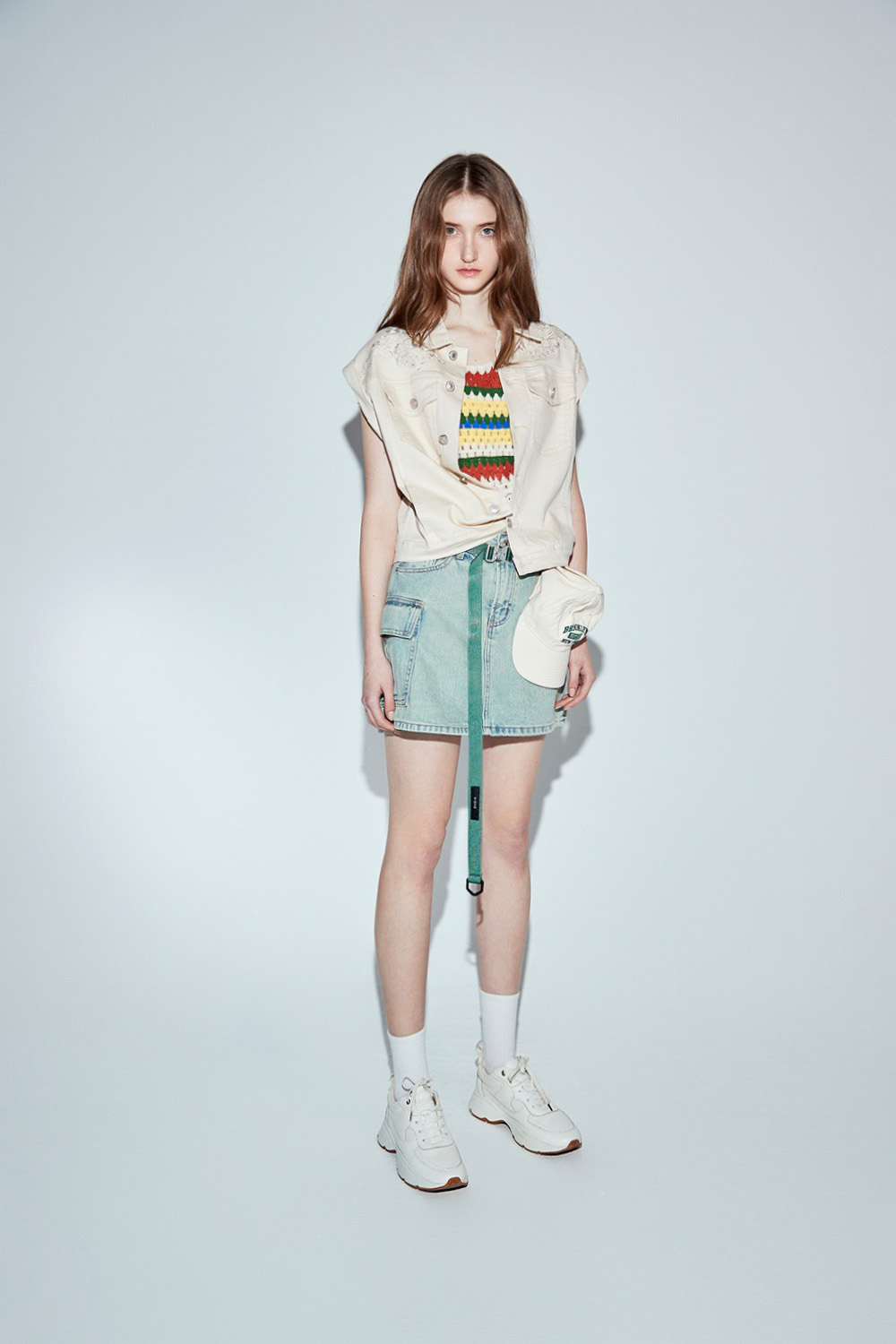 輕遊歷漫工裝洗色牛仔裙(藍/粉) - 微施粉澤, 36