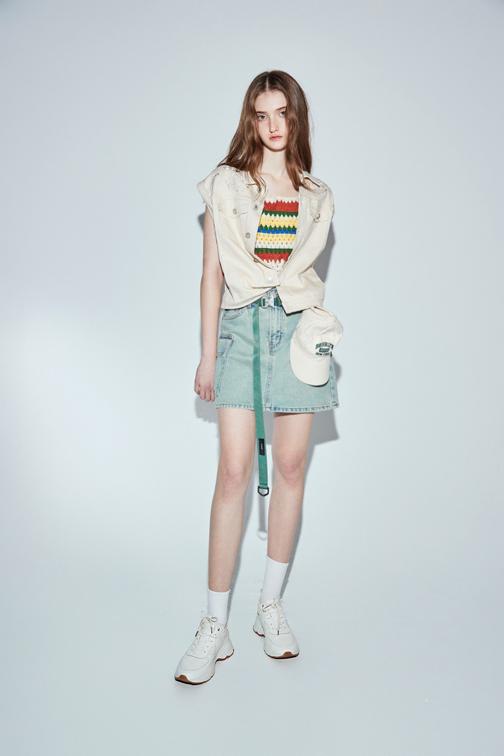 輕遊歷漫工裝洗色牛仔裙(藍/粉) - 微施粉澤, 36