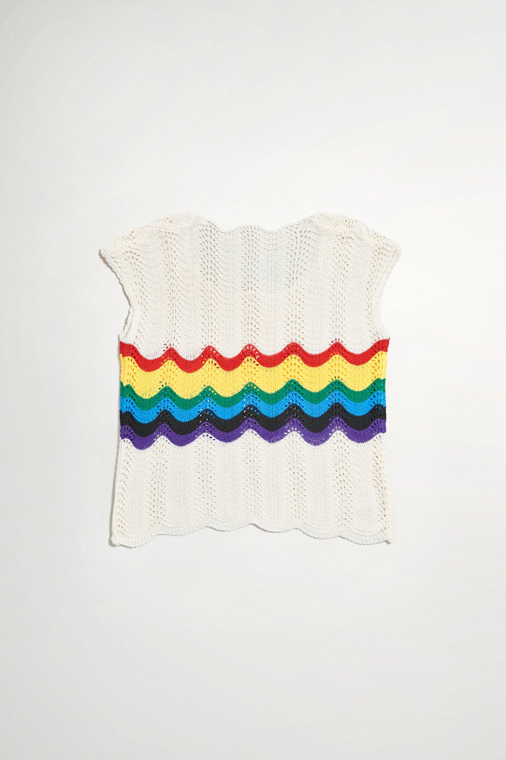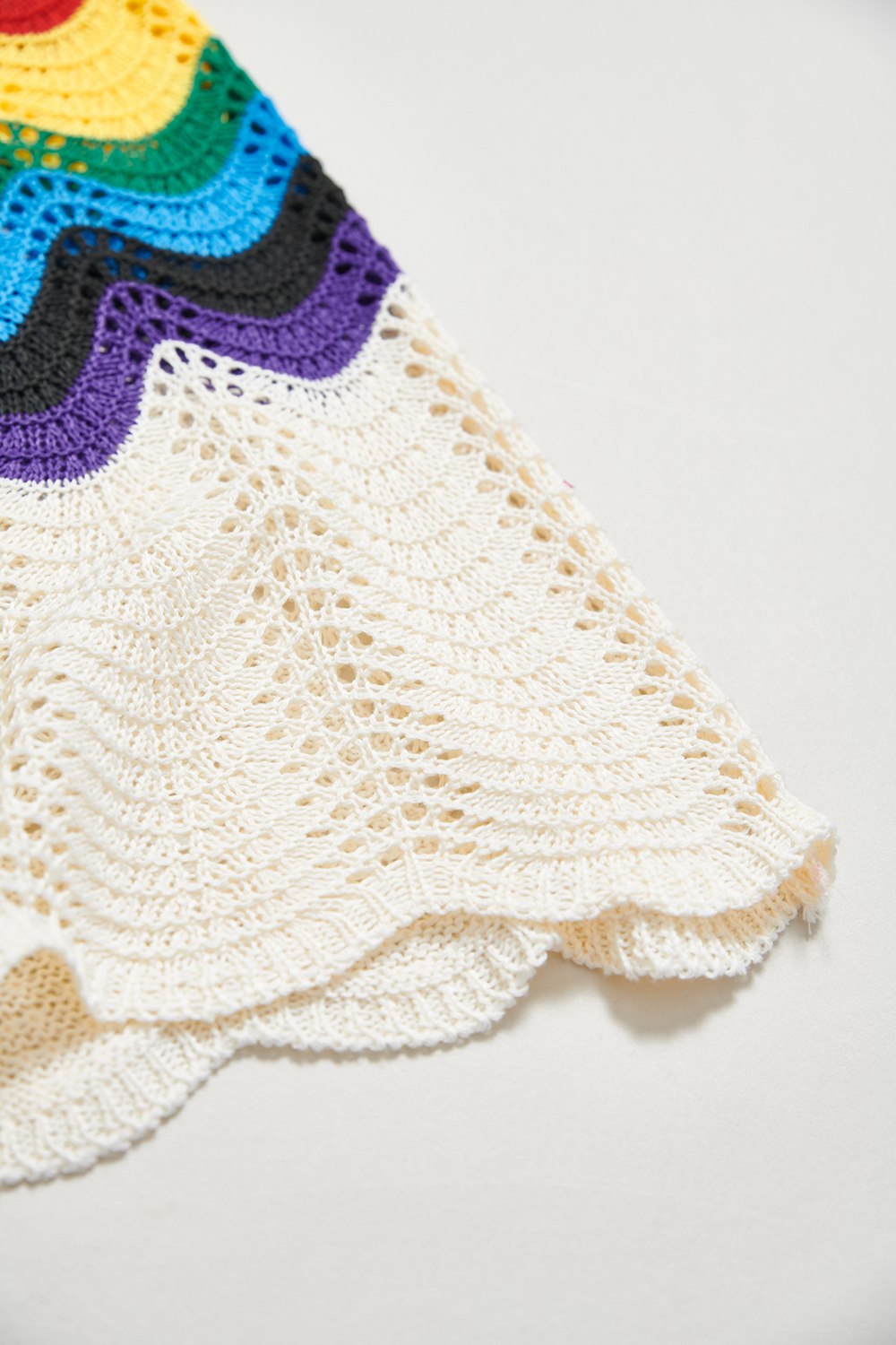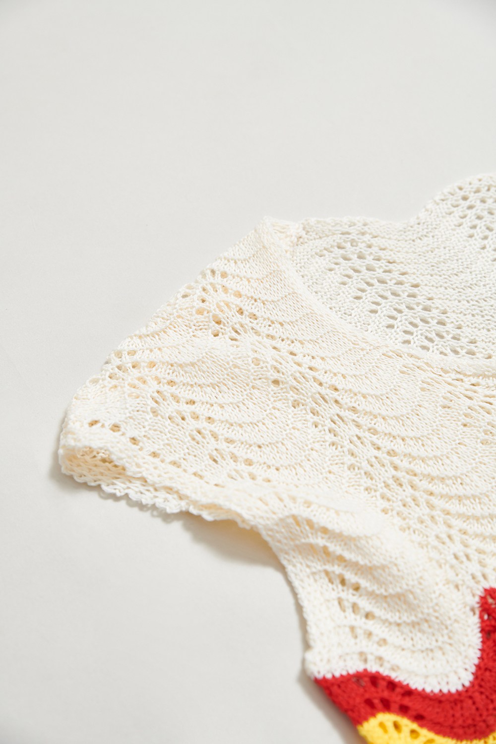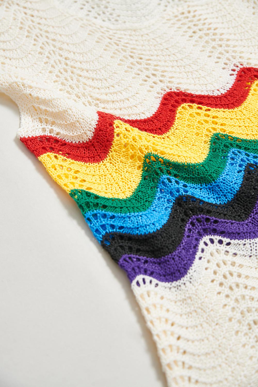 彩虹假日鏤空波浪針織上衣 - 奶油杏色, F