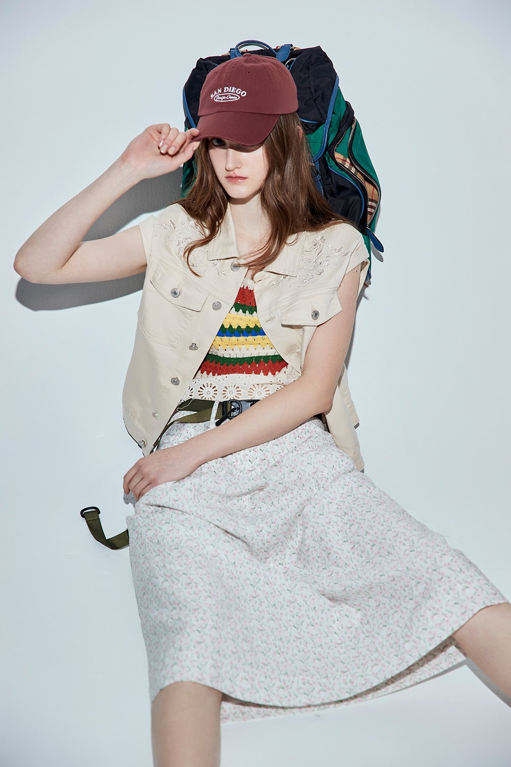 彩虹圓舞曲針織背心 - 彩色配條, F