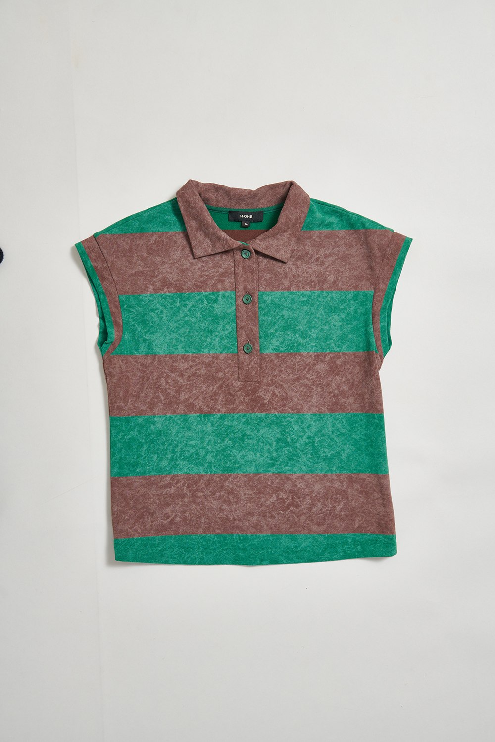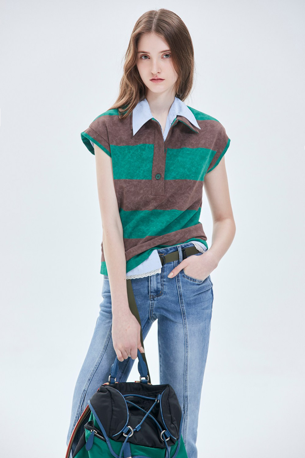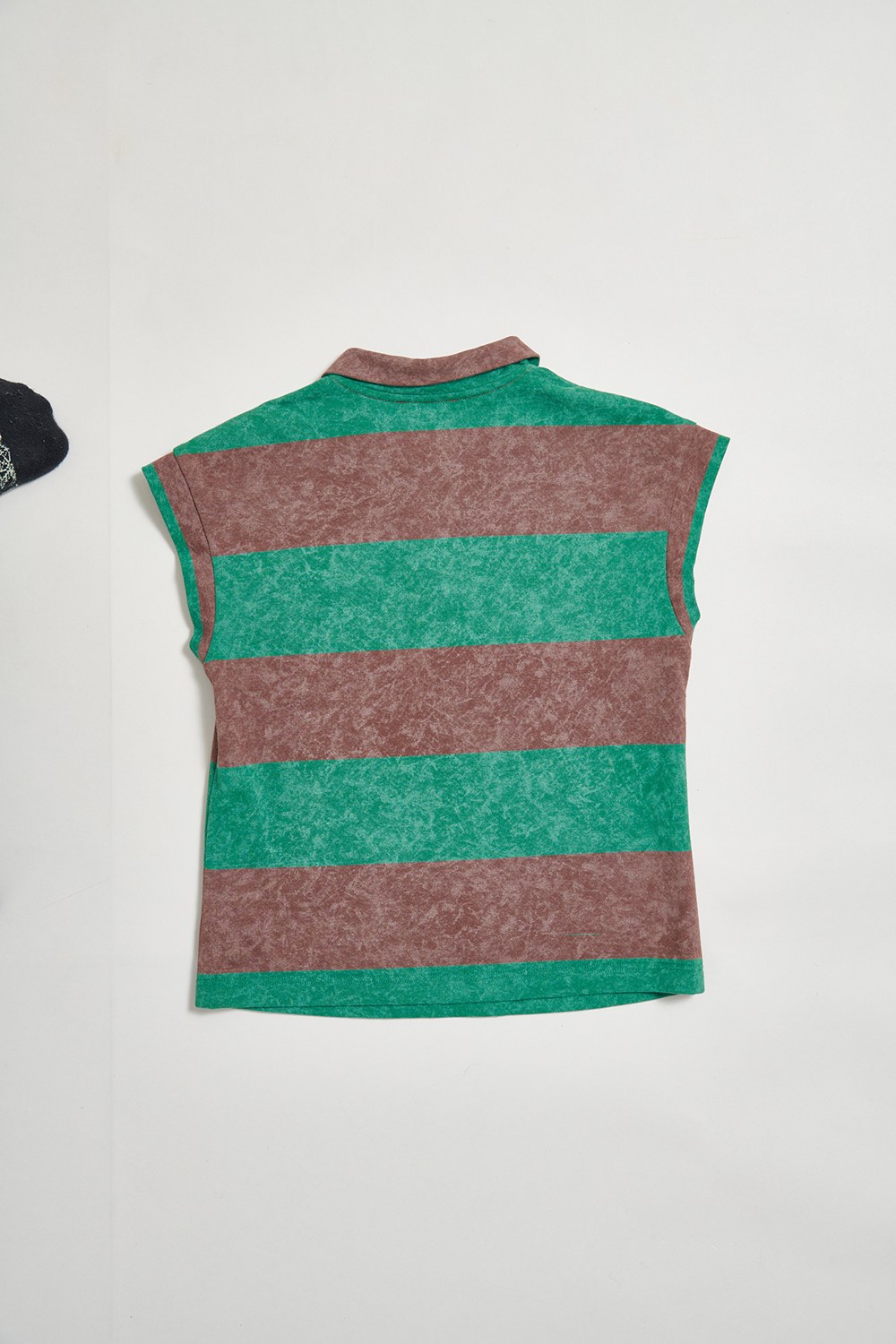 西野暮色洗舊感配色條紋上衣 - 平靜翠綠, 38