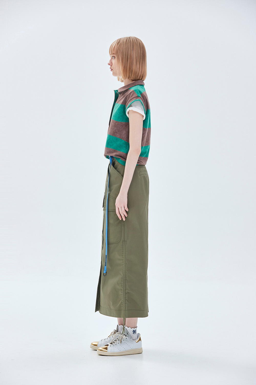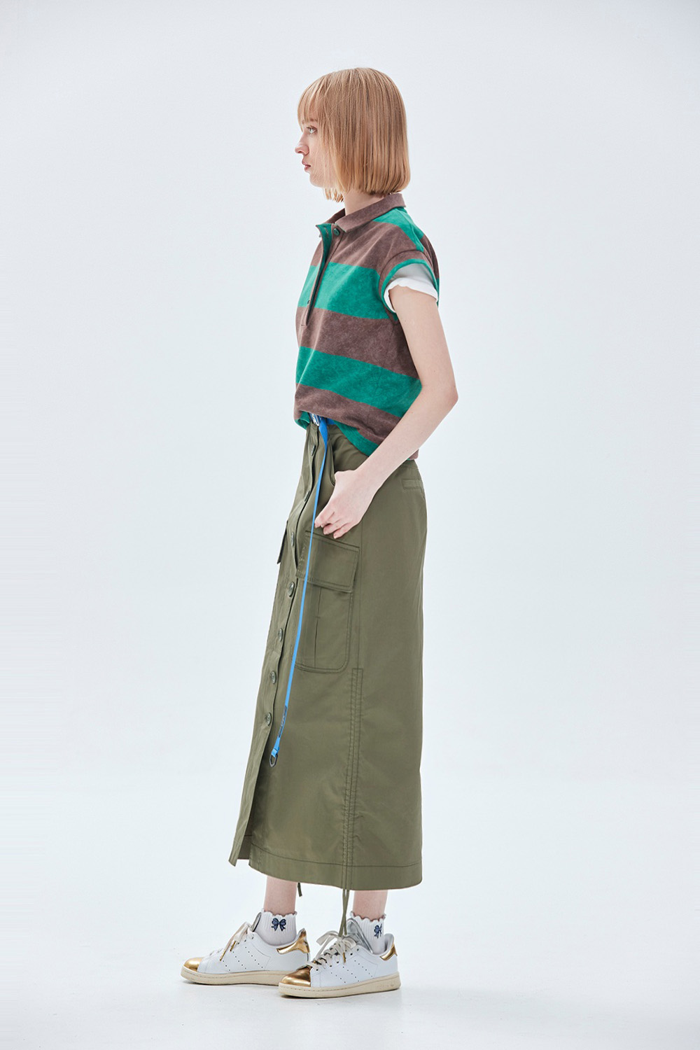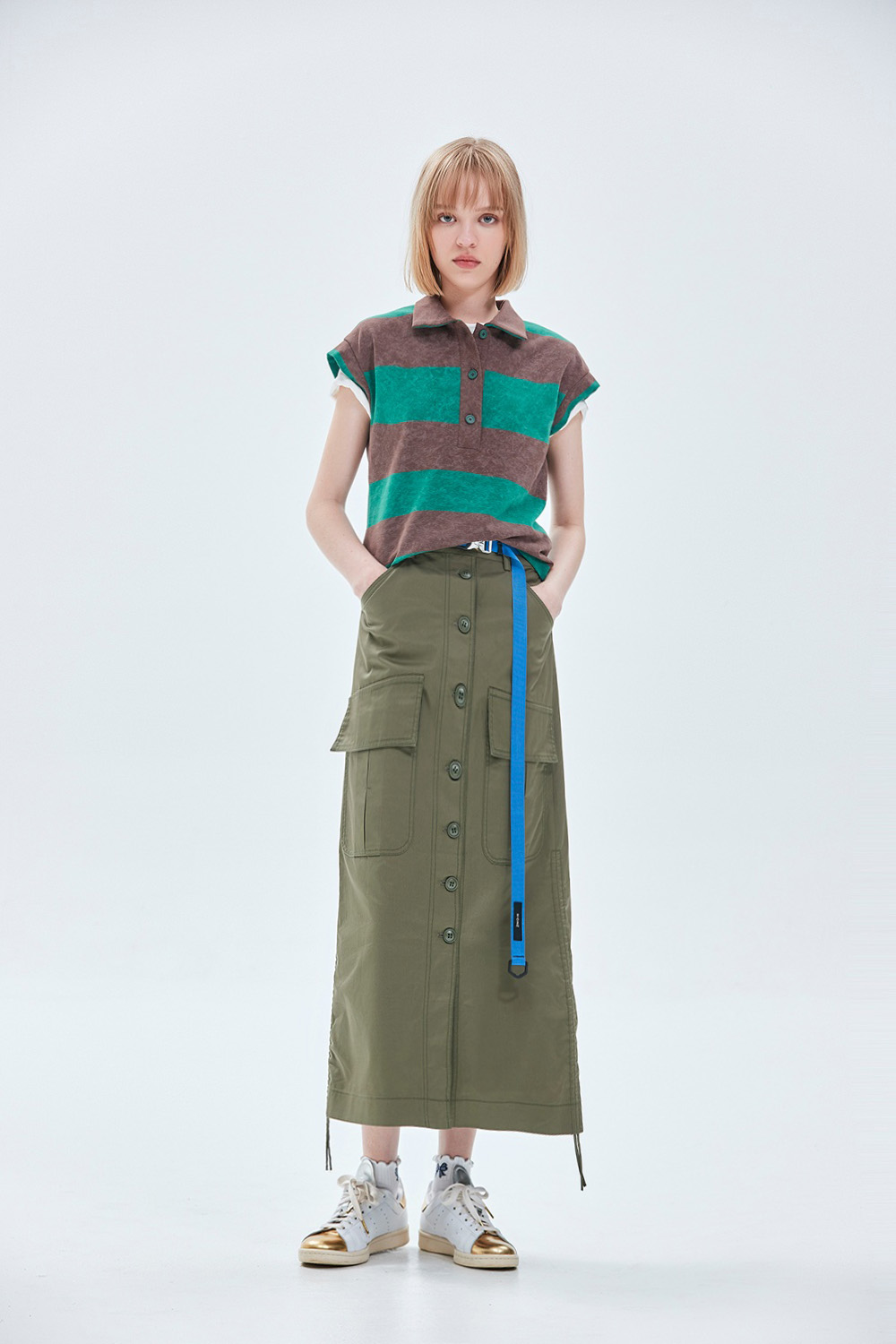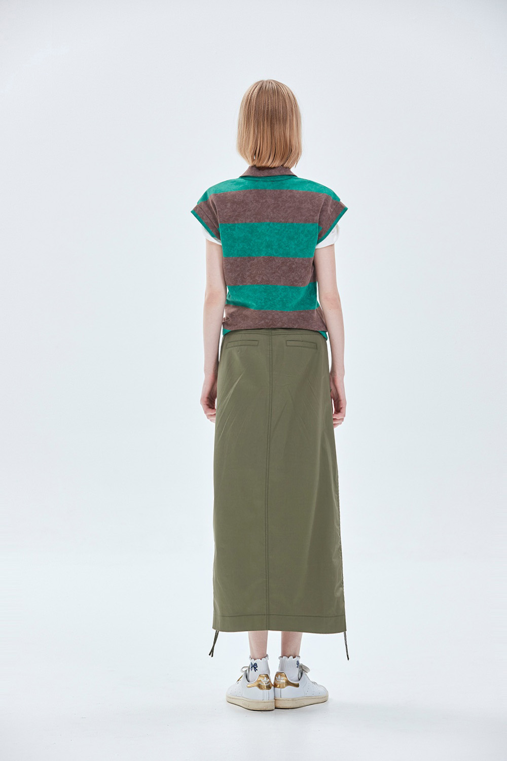 西野暮色洗舊感配色條紋上衣 - 平靜翠綠, 38