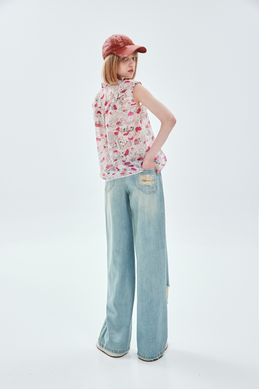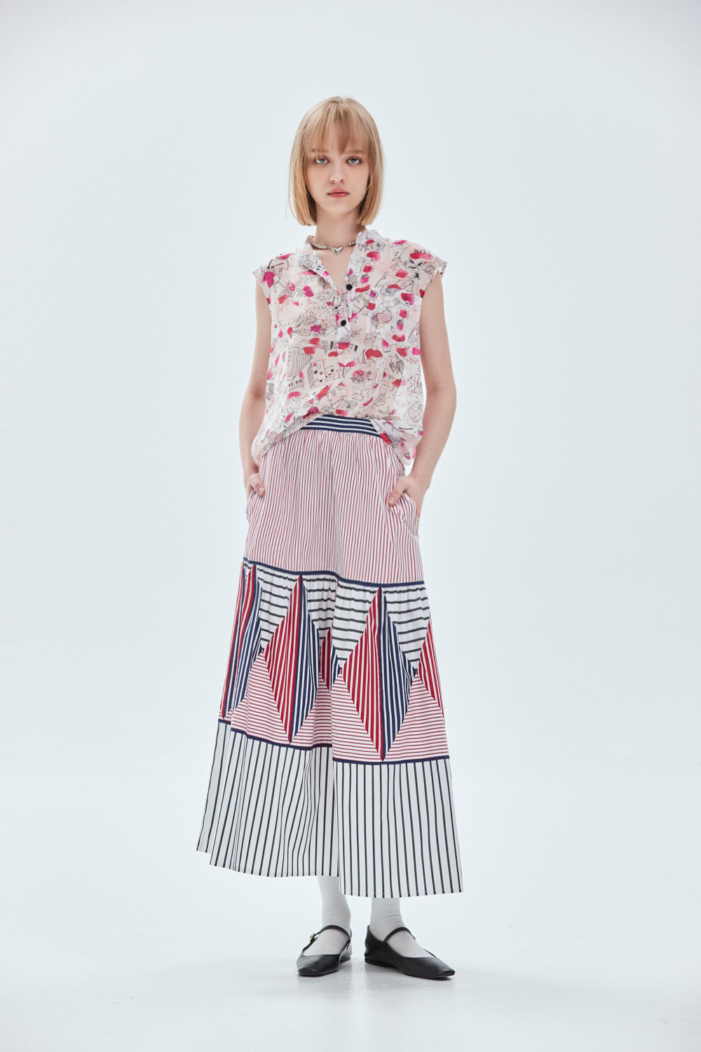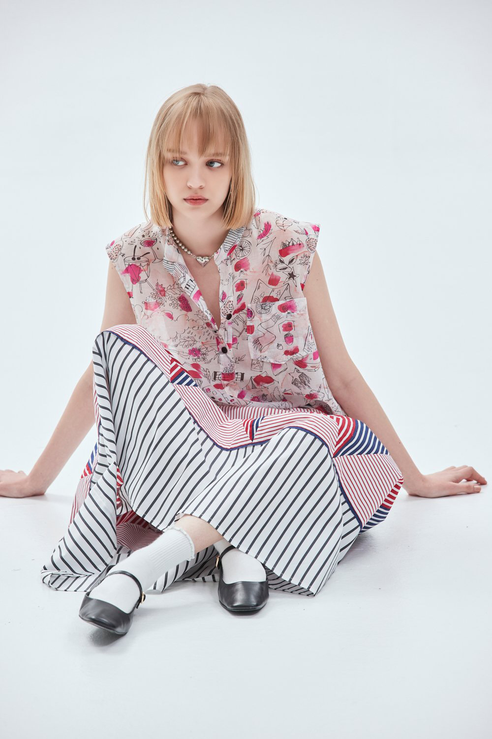 花色上衣很適合夏天,在無空調的空間稍嫌不透氣!
