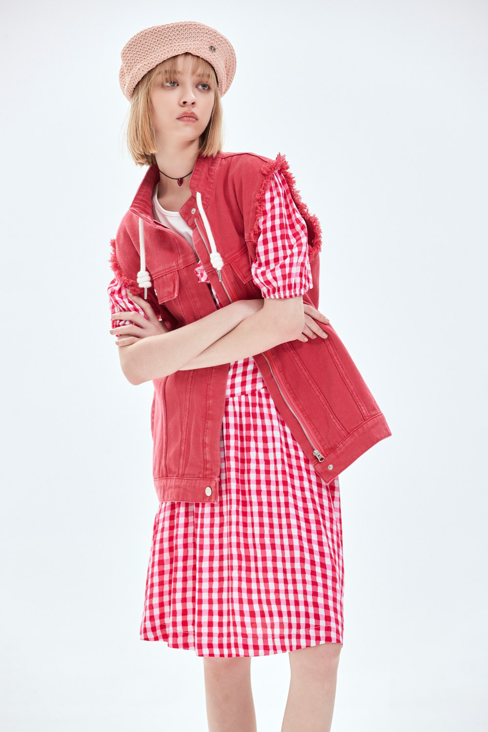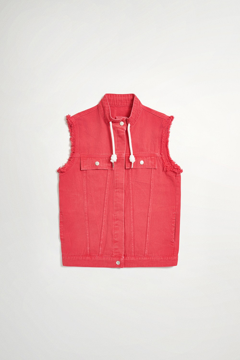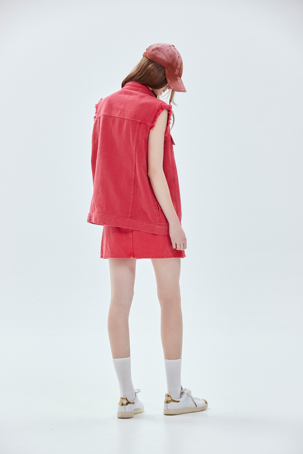 少女氛圍洗色流蘇牛仔外套 - 撫媚枚紅, 38