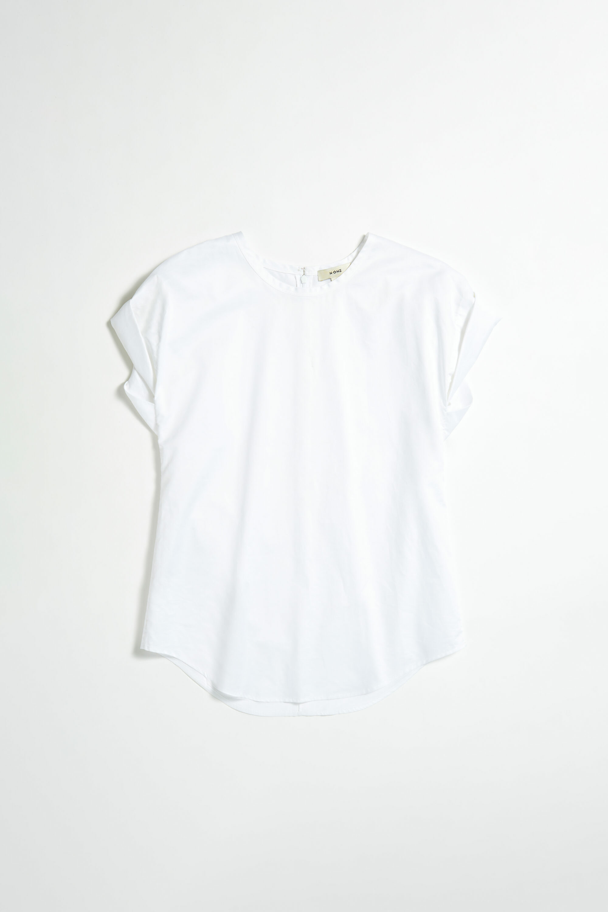 暖日簡約設計感立裁落袖上衣 - 無瑕純白, M
