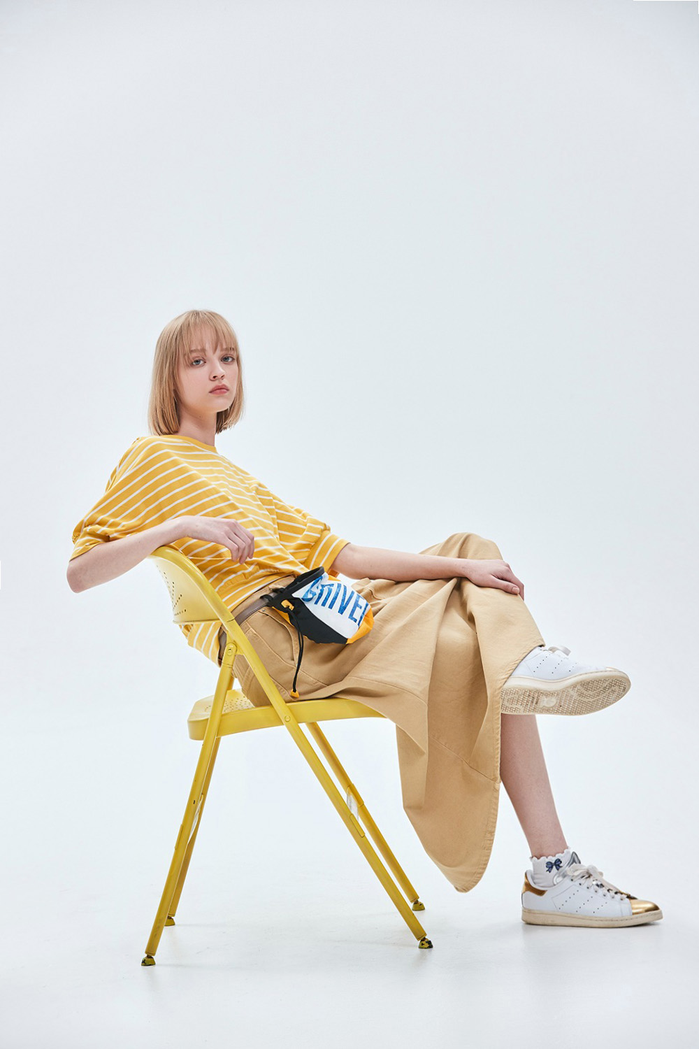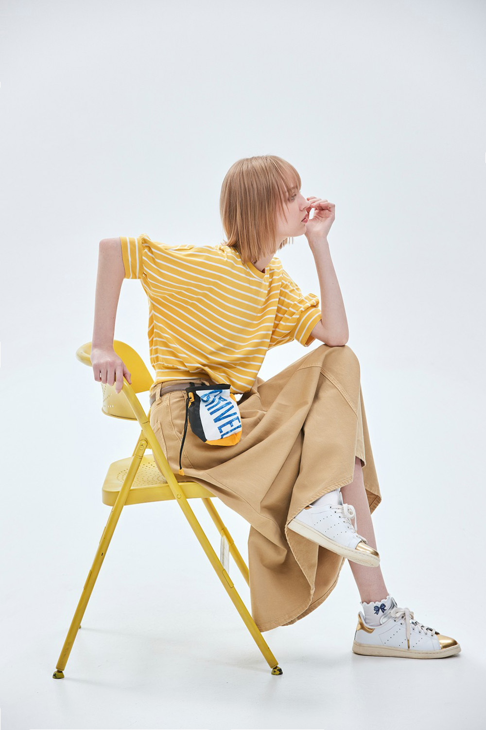 愜意慵懒條紋休閒上衣 - 金闕黄沉沉, 36