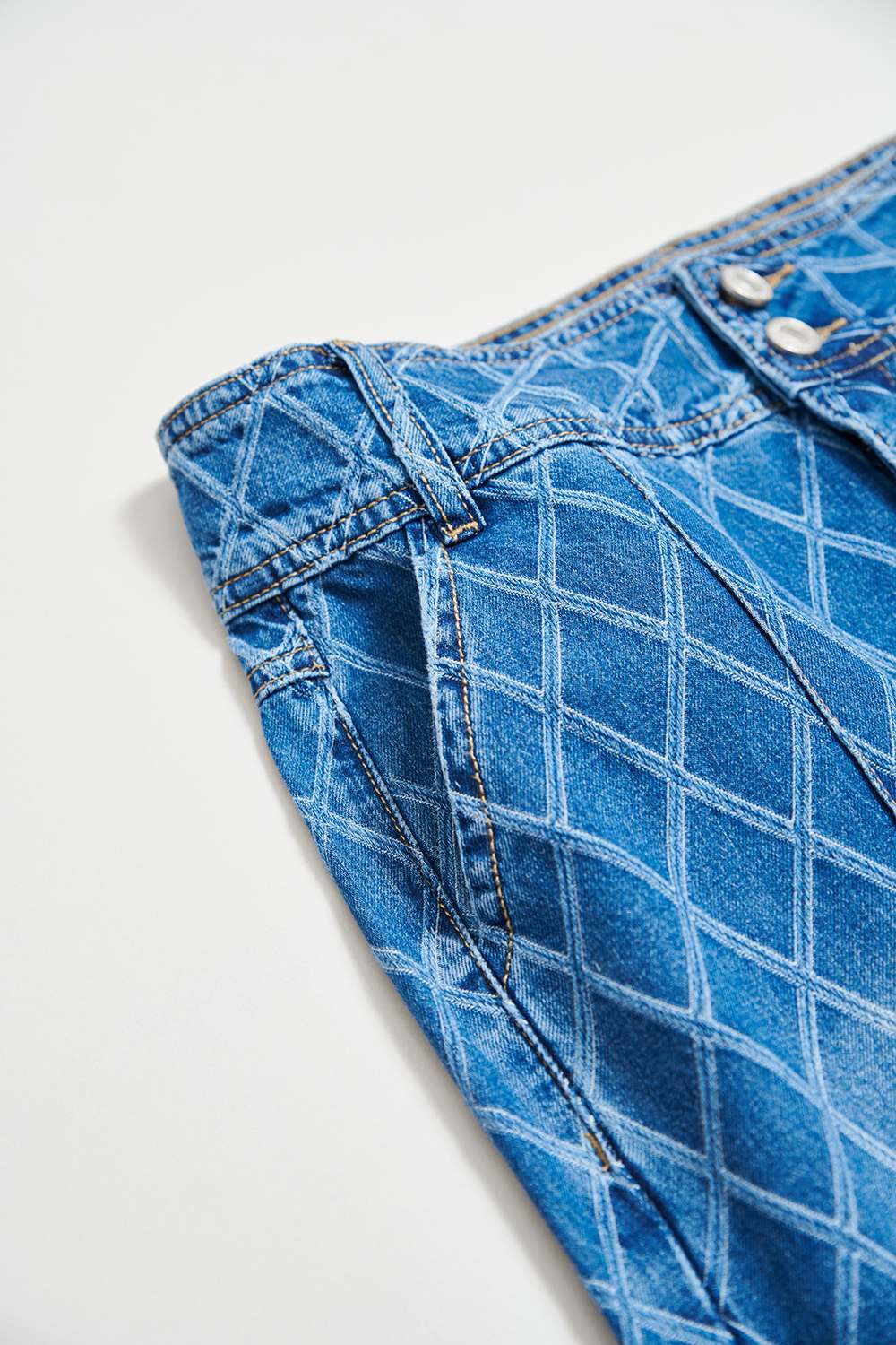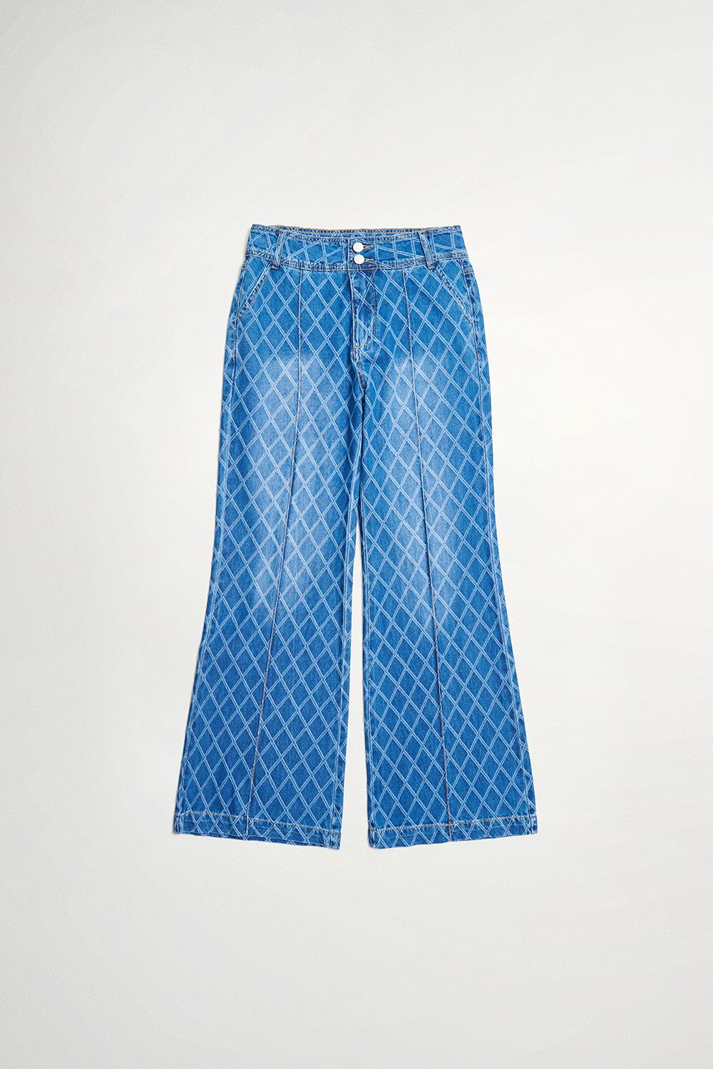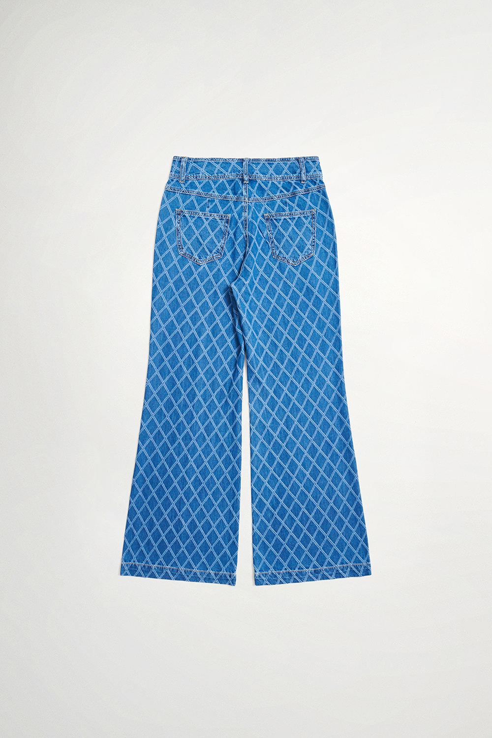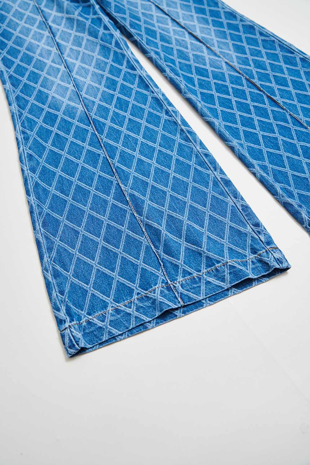 風華絕代菱紋牛仔小喇叭褲 - 深邃藏藍, 38